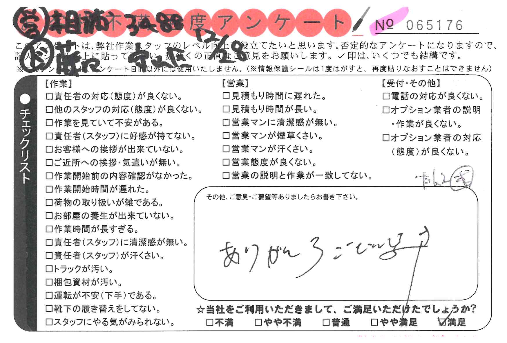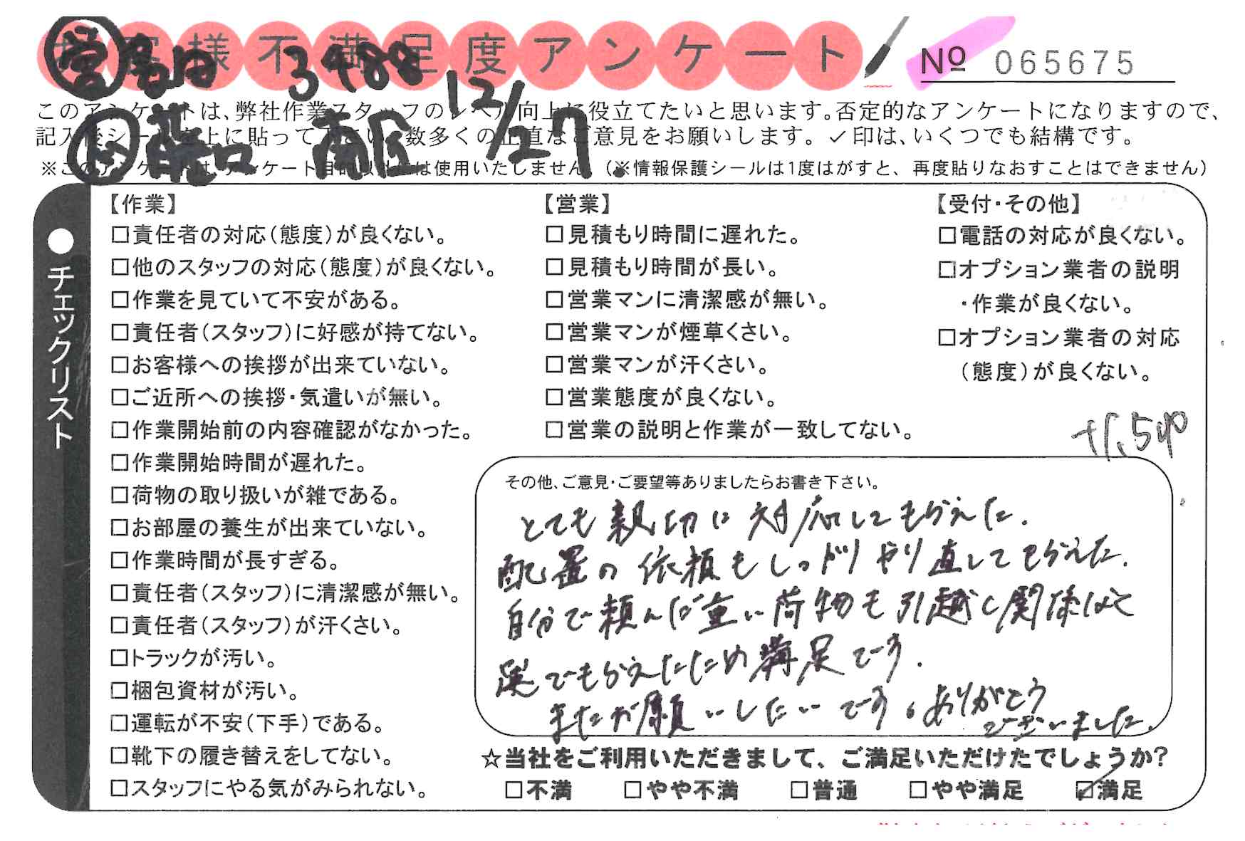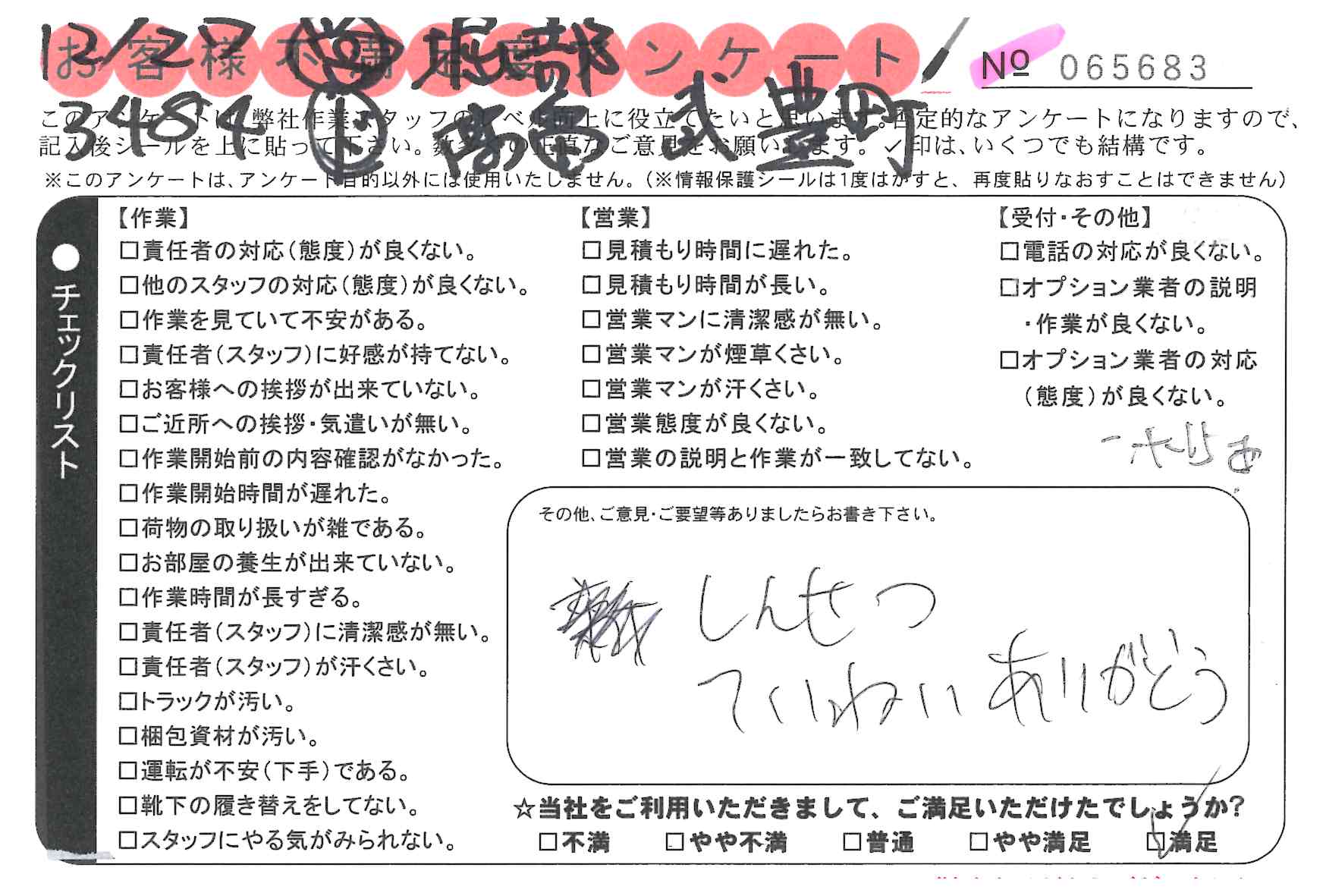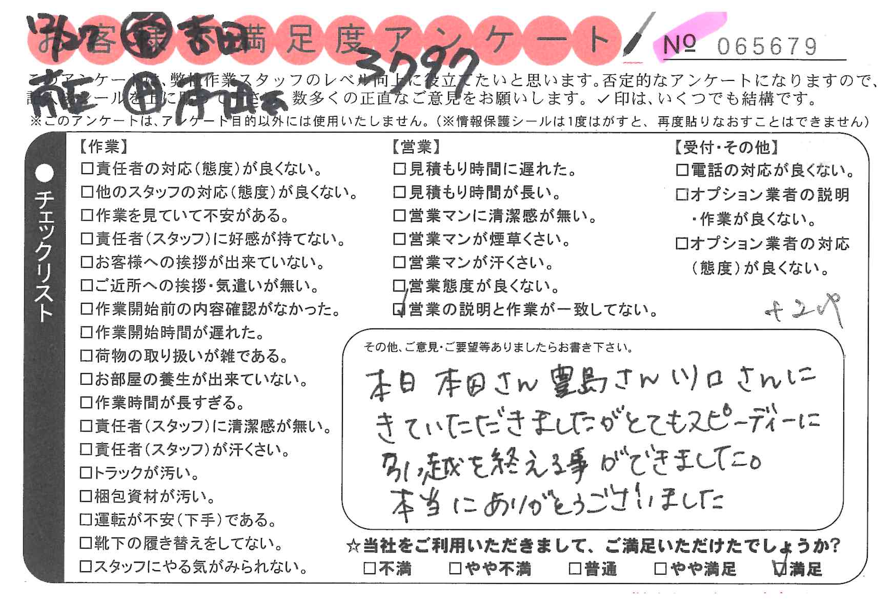 引越一番でお引越しをしていただいたお客様のうち、コメントいただいたアンケートを全て掲載しています。