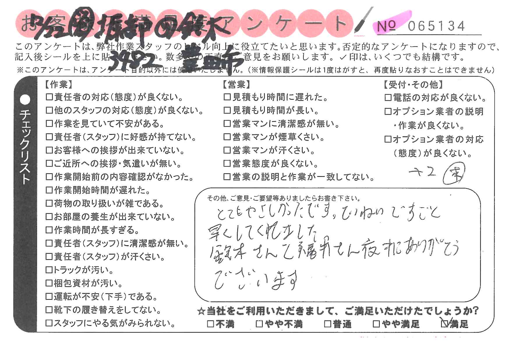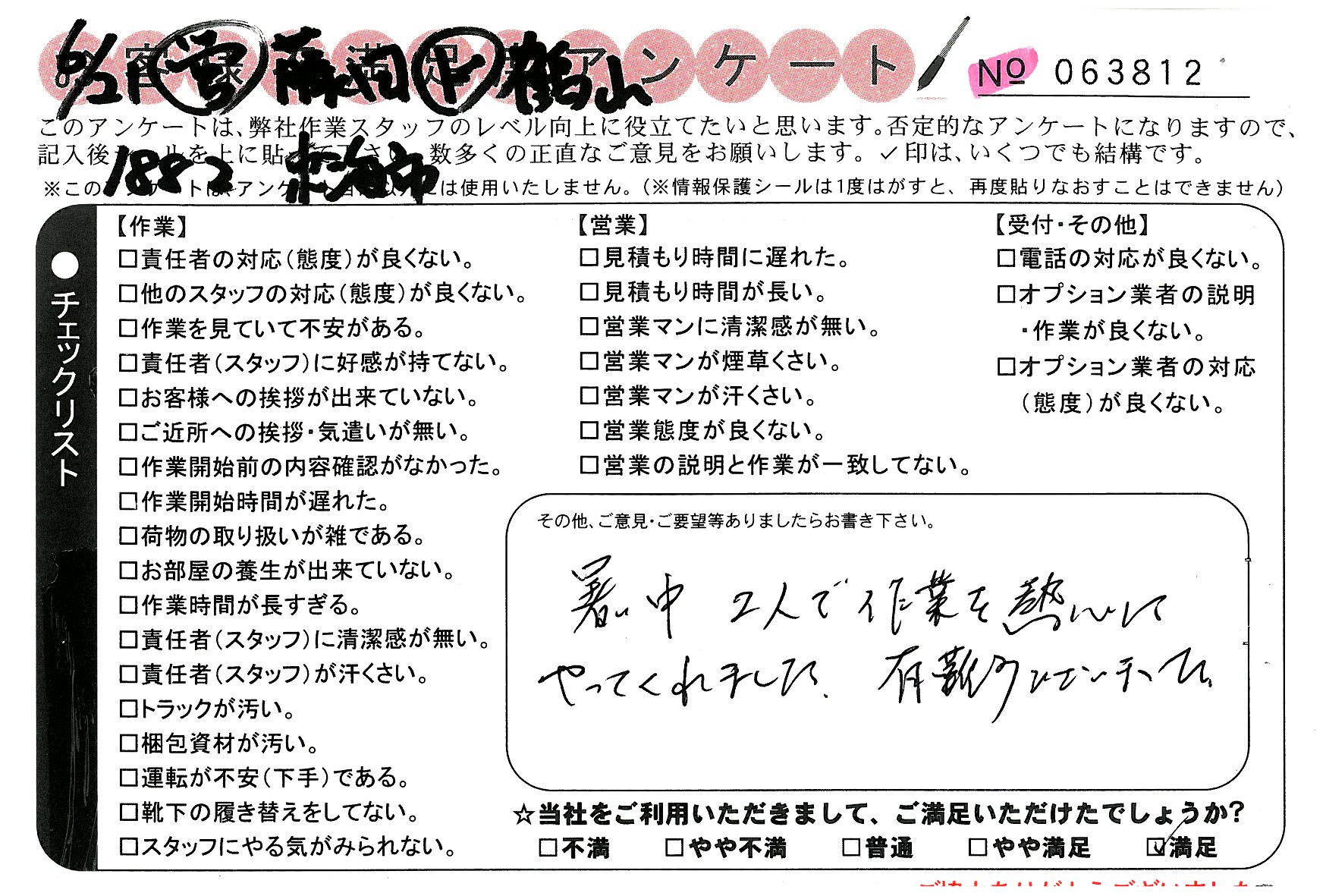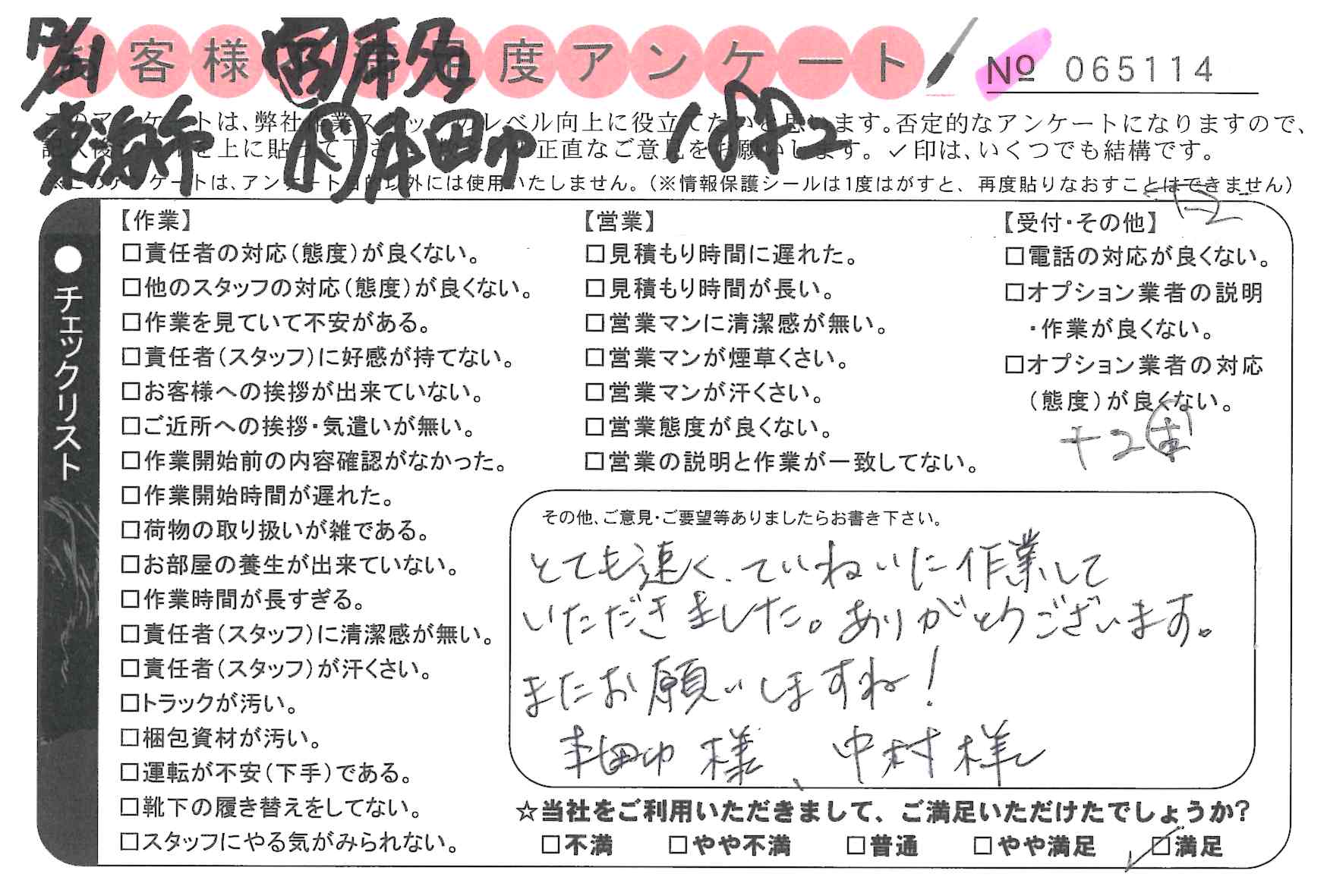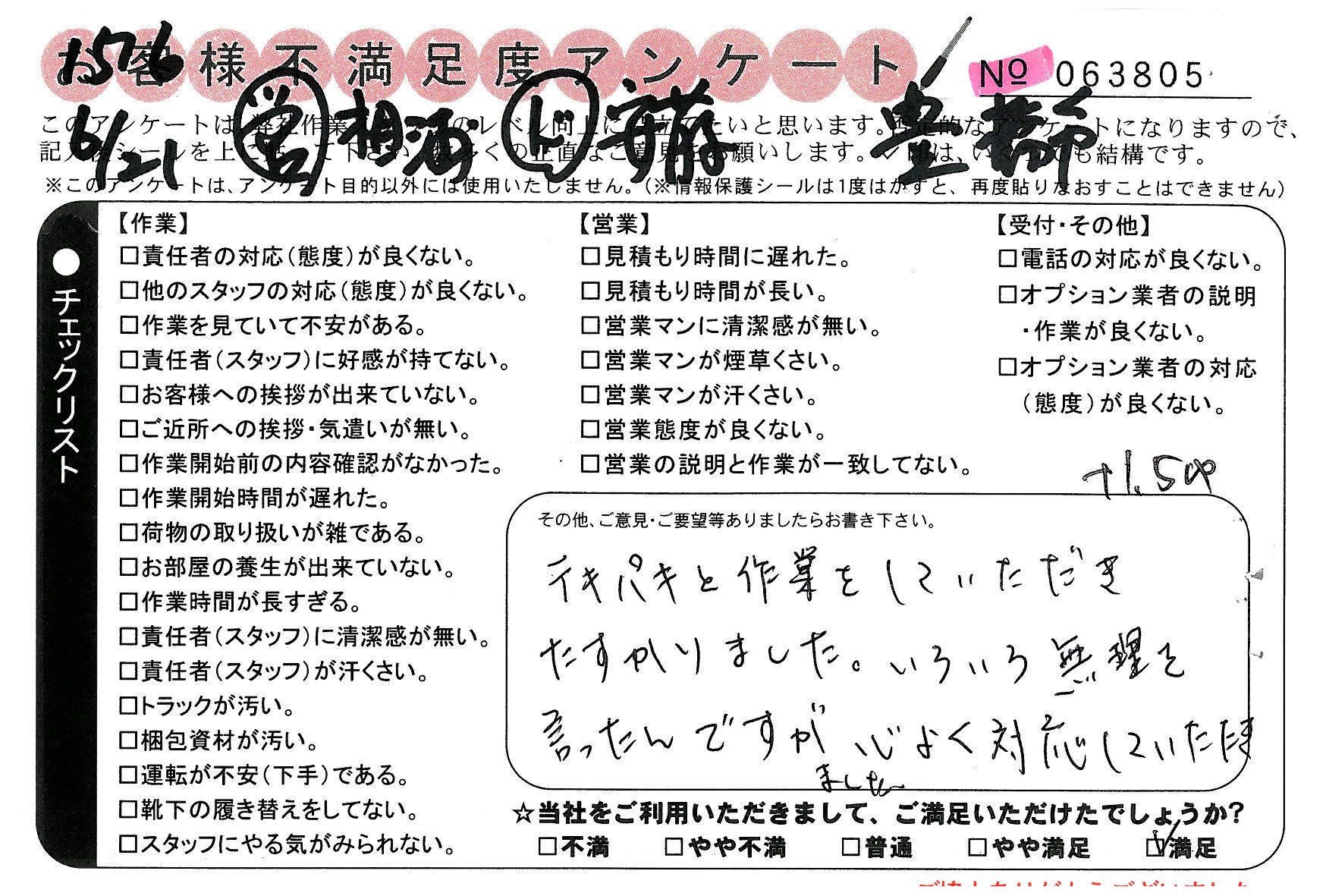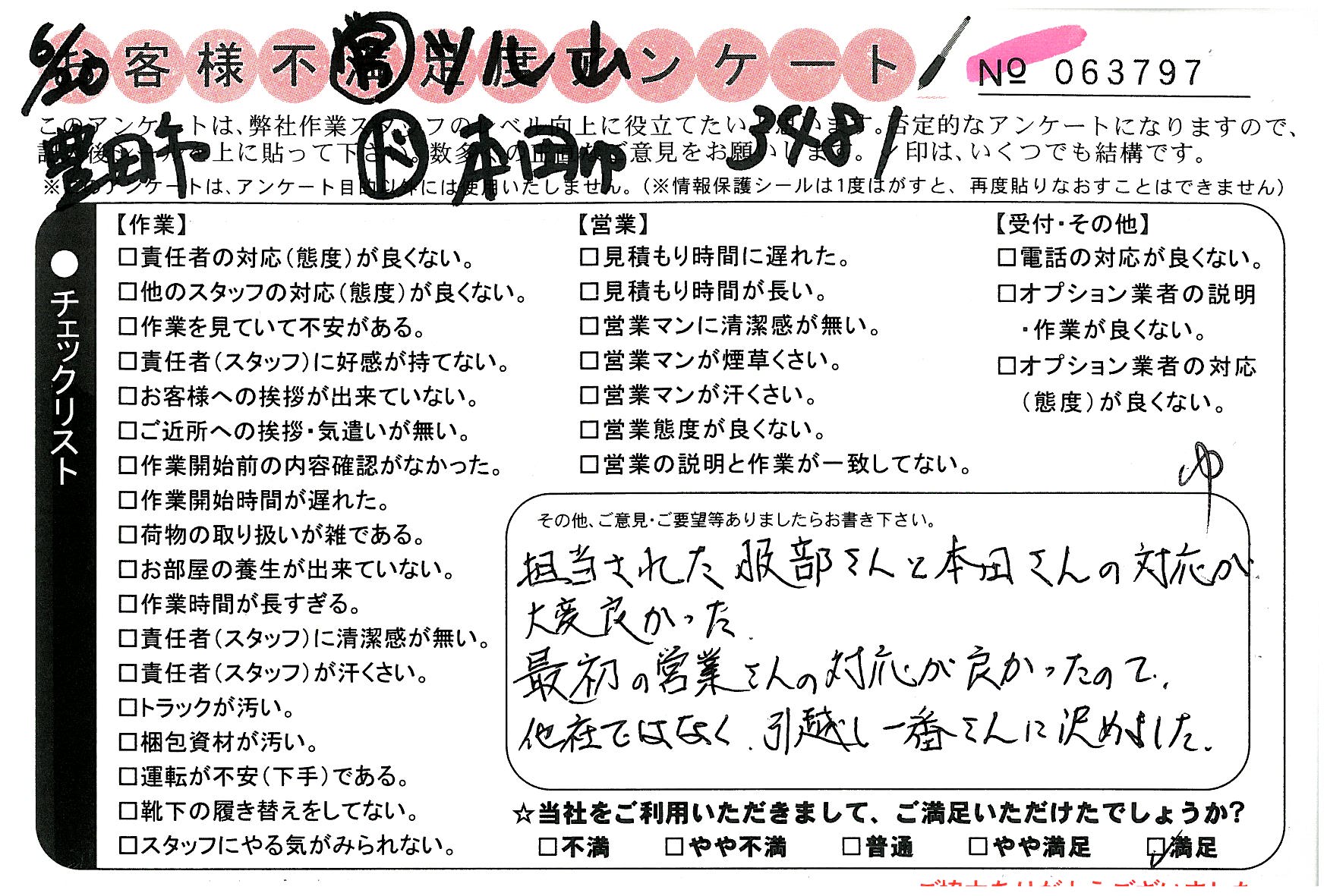 引越一番でお引越しをしていただいたお客様のうち、コメントいただいたアンケートを全て掲載しています。