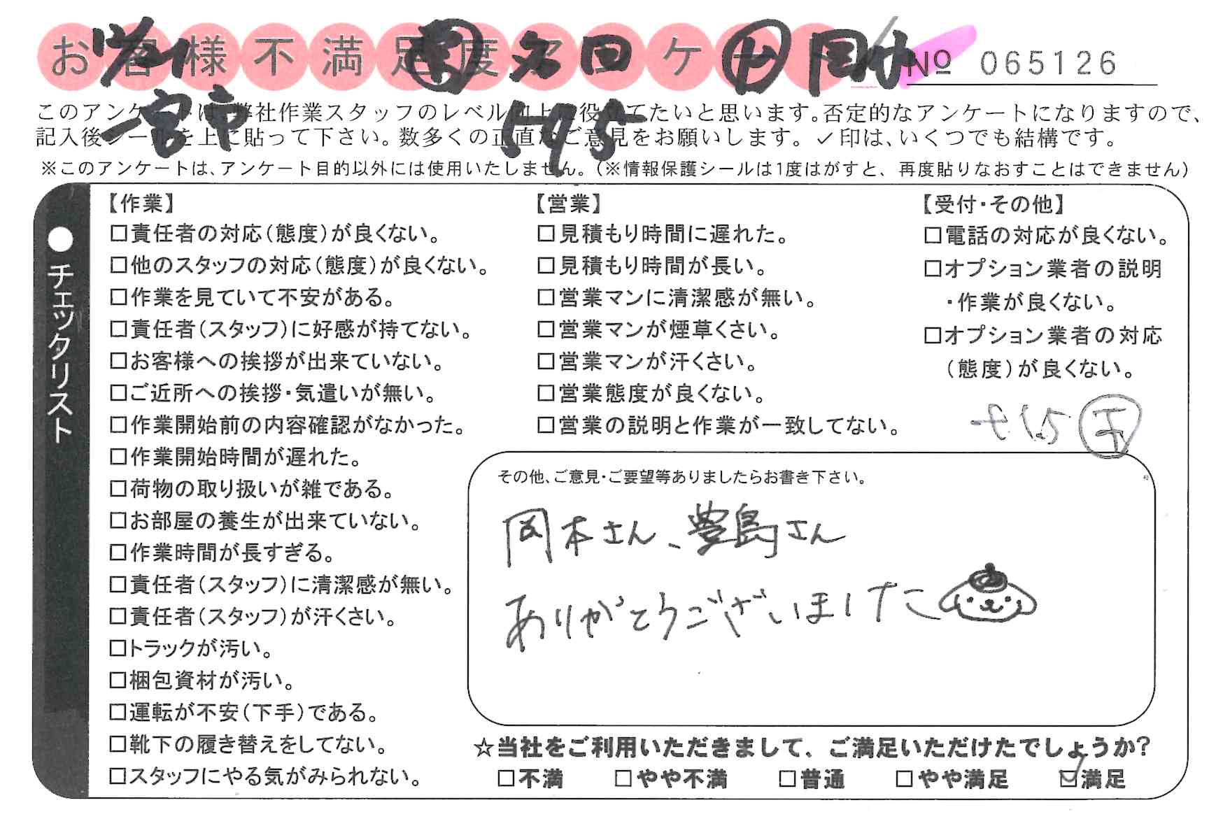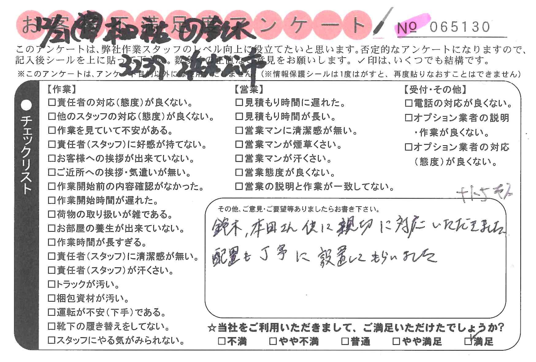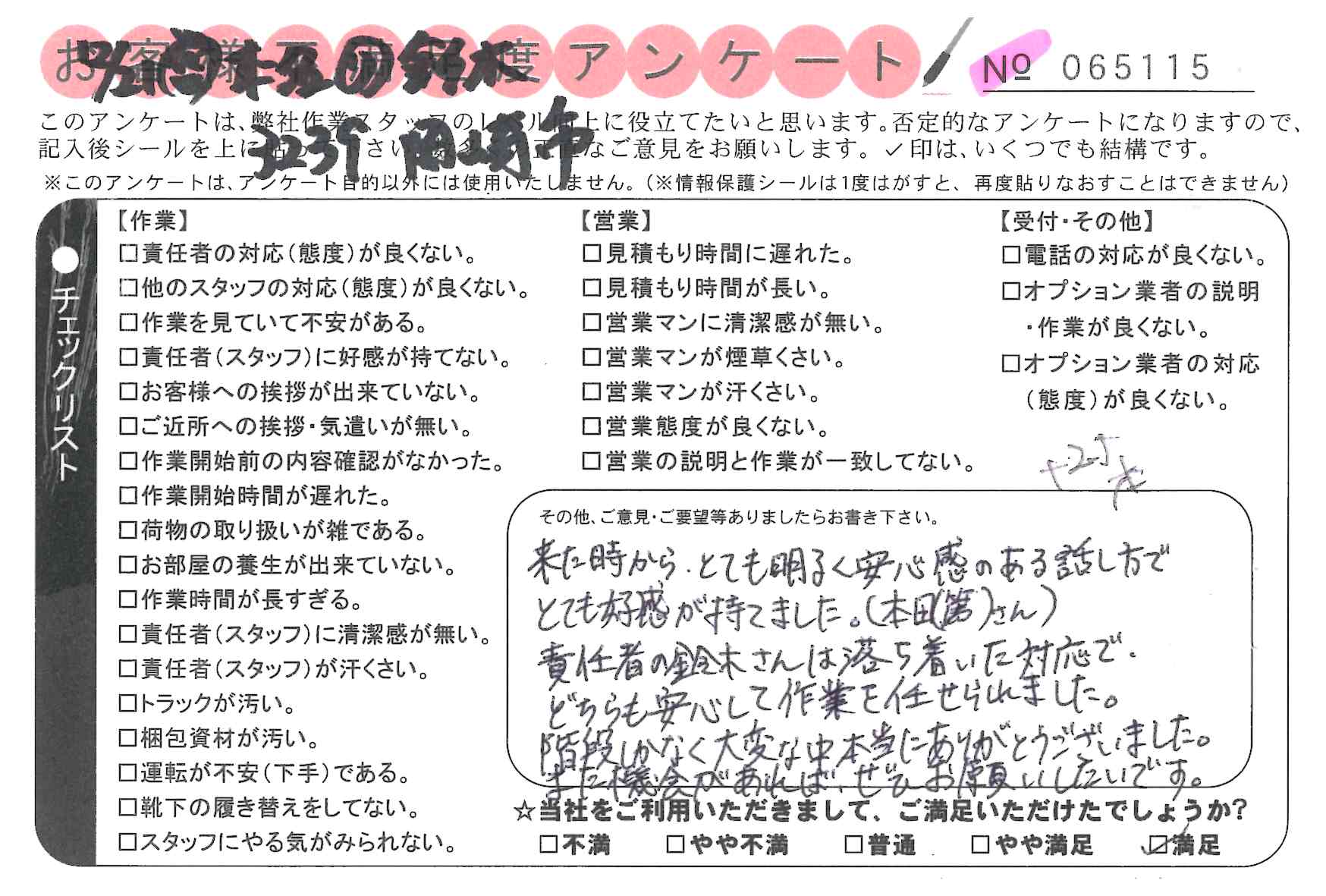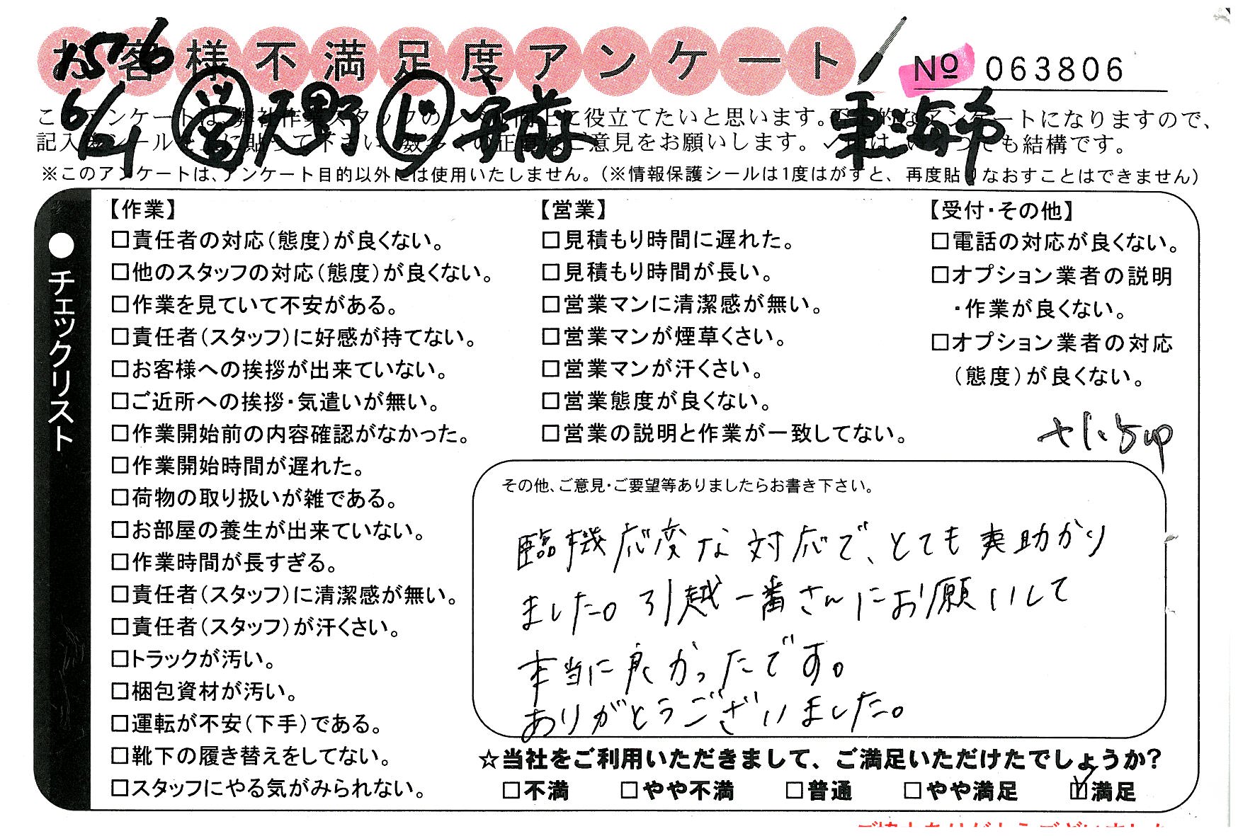 引越一番でお引越しをしていただいたお客様のうち、コメントいただいたアンケートを全て掲載しています。