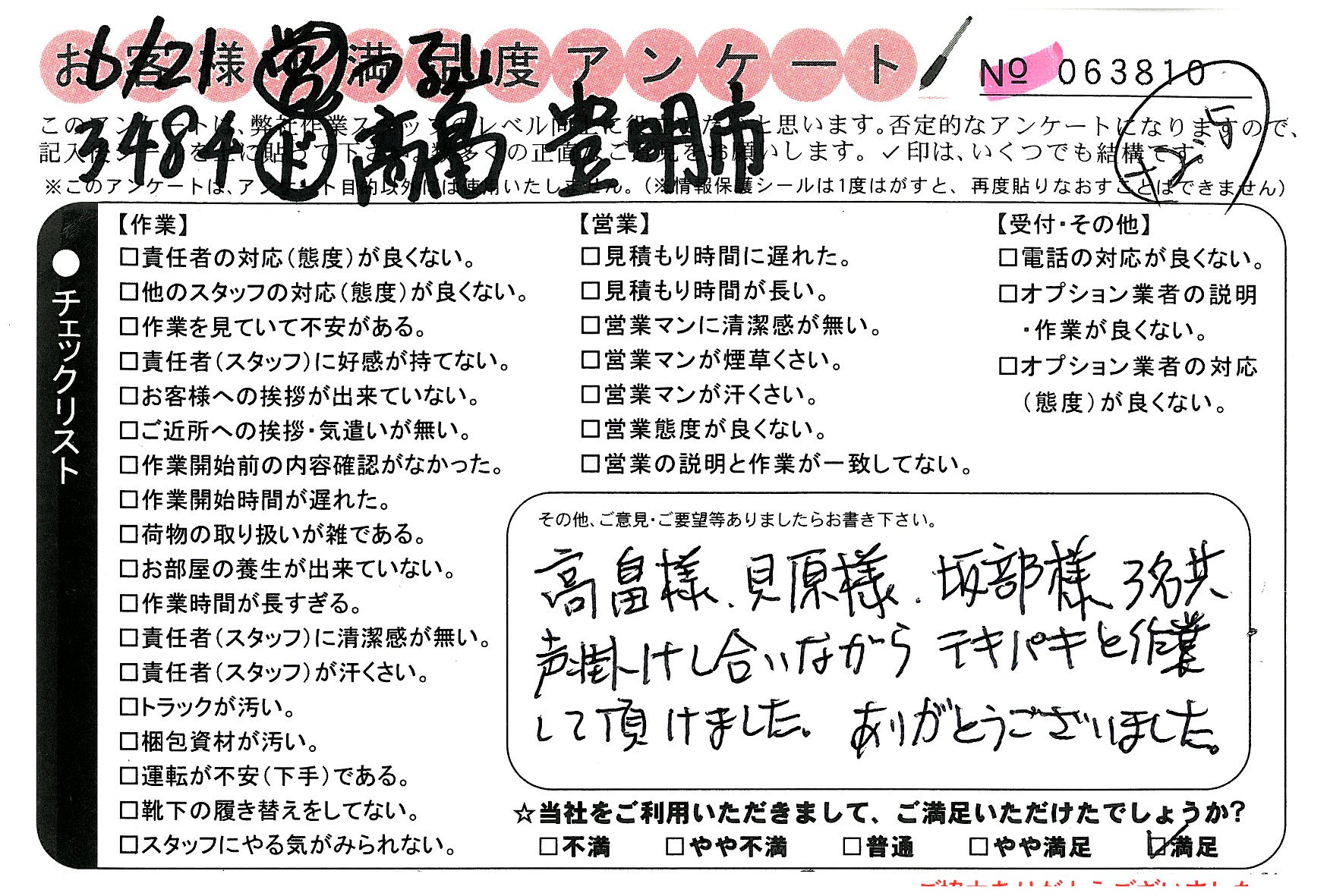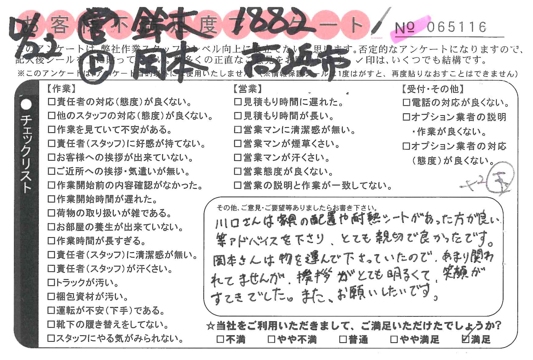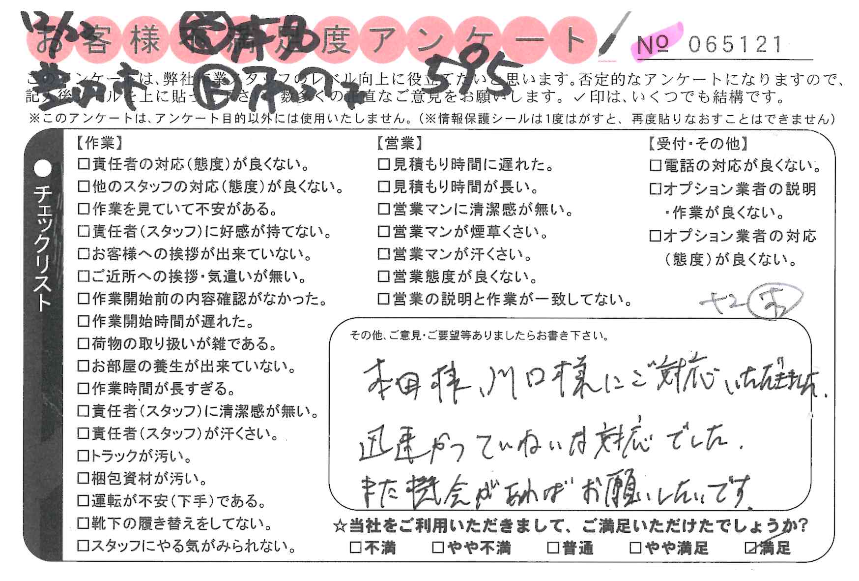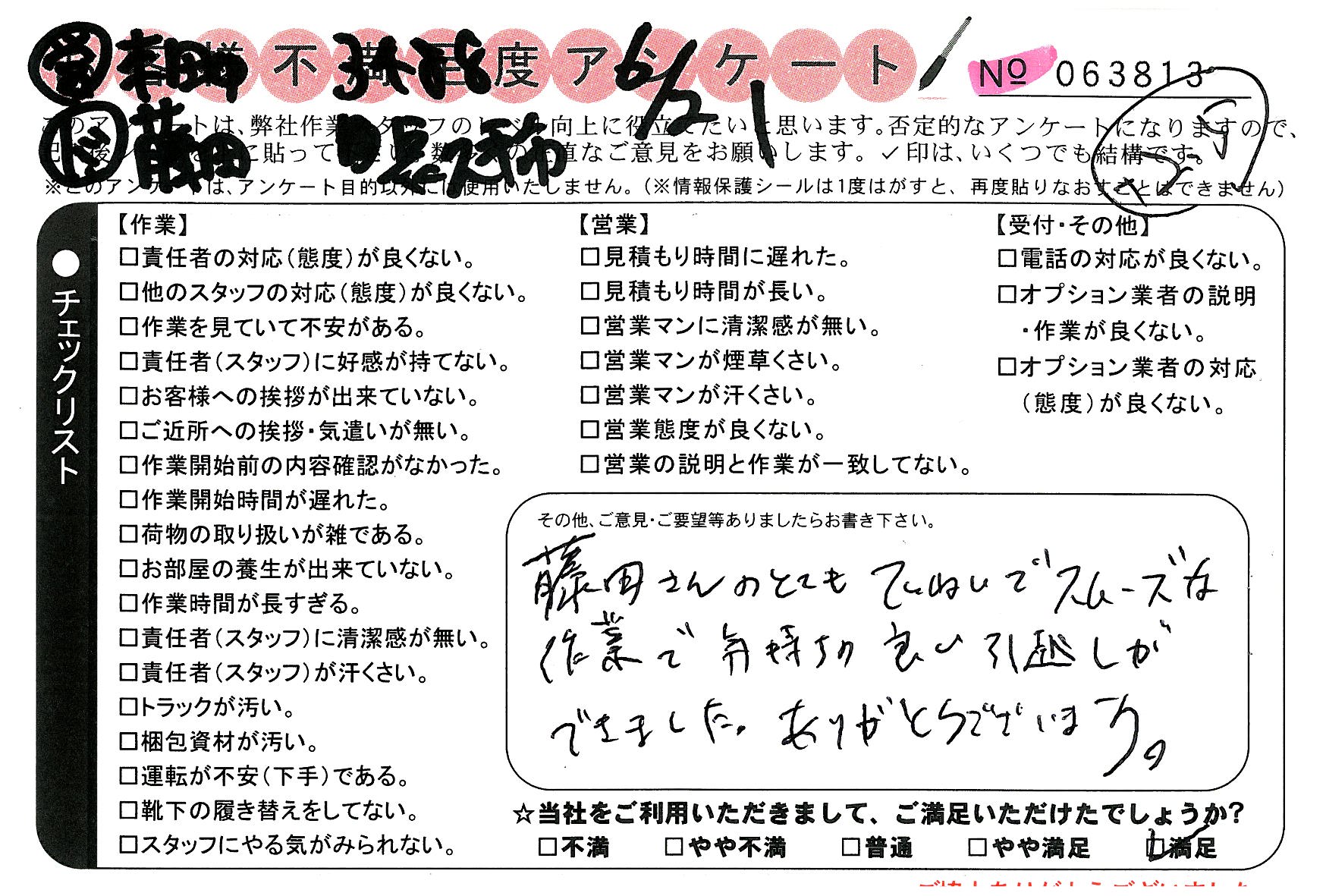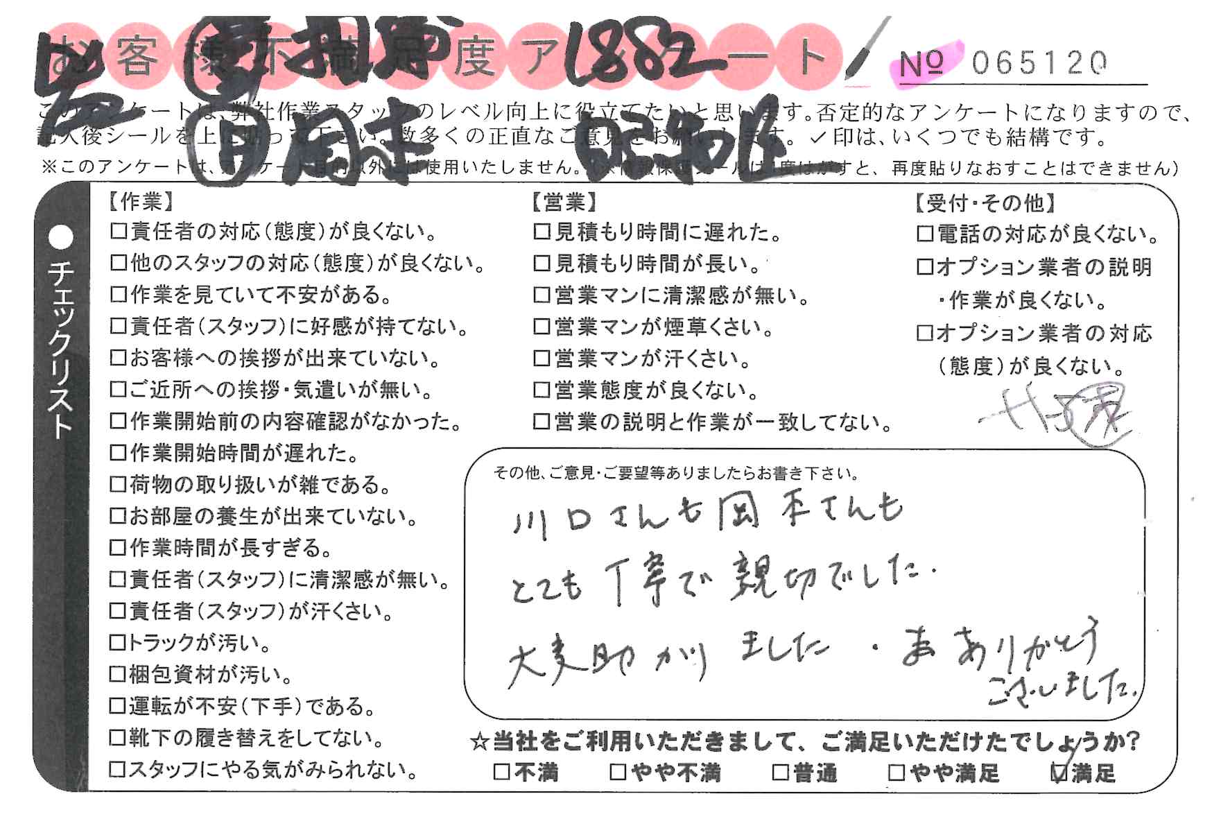 引越一番でお引越しをしていただいたお客様のうち、コメントいただいたアンケートを全て掲載しています。