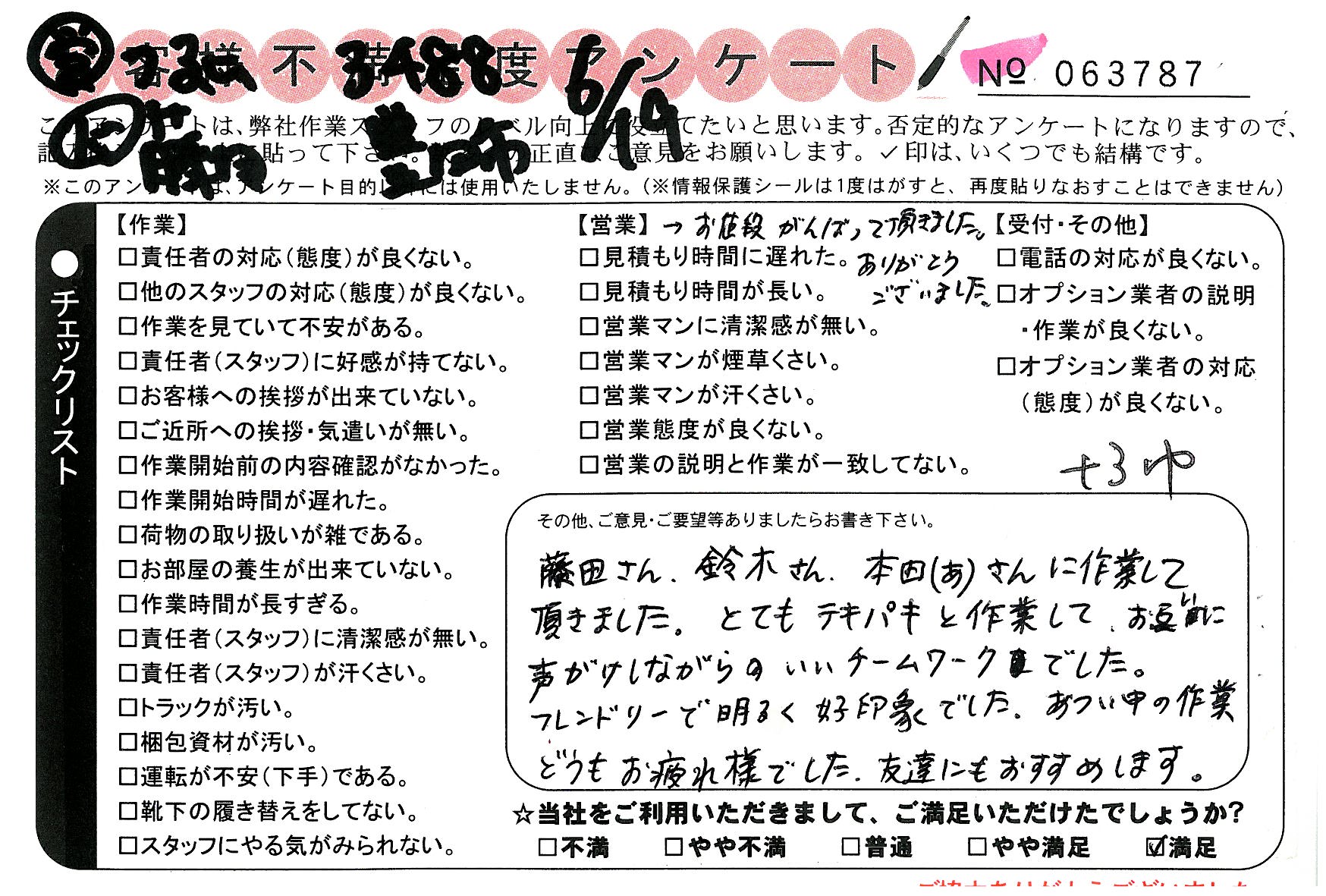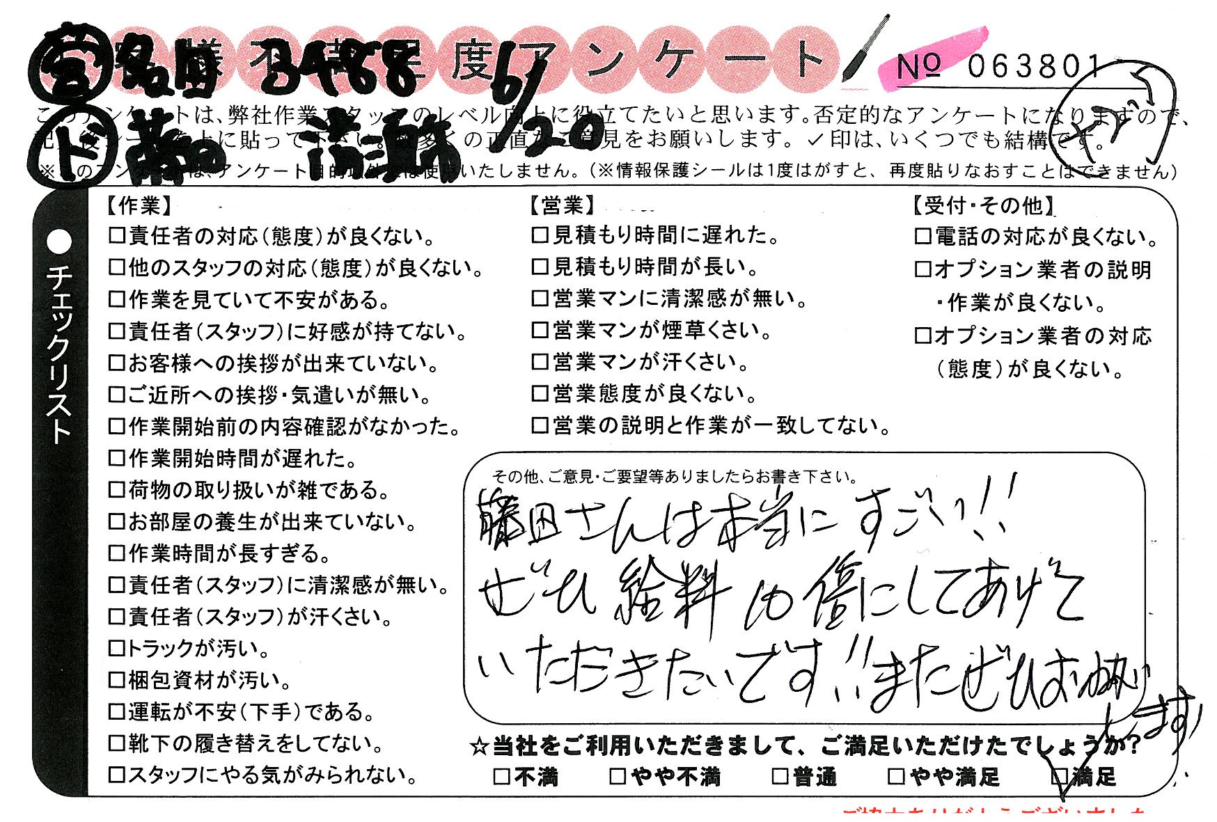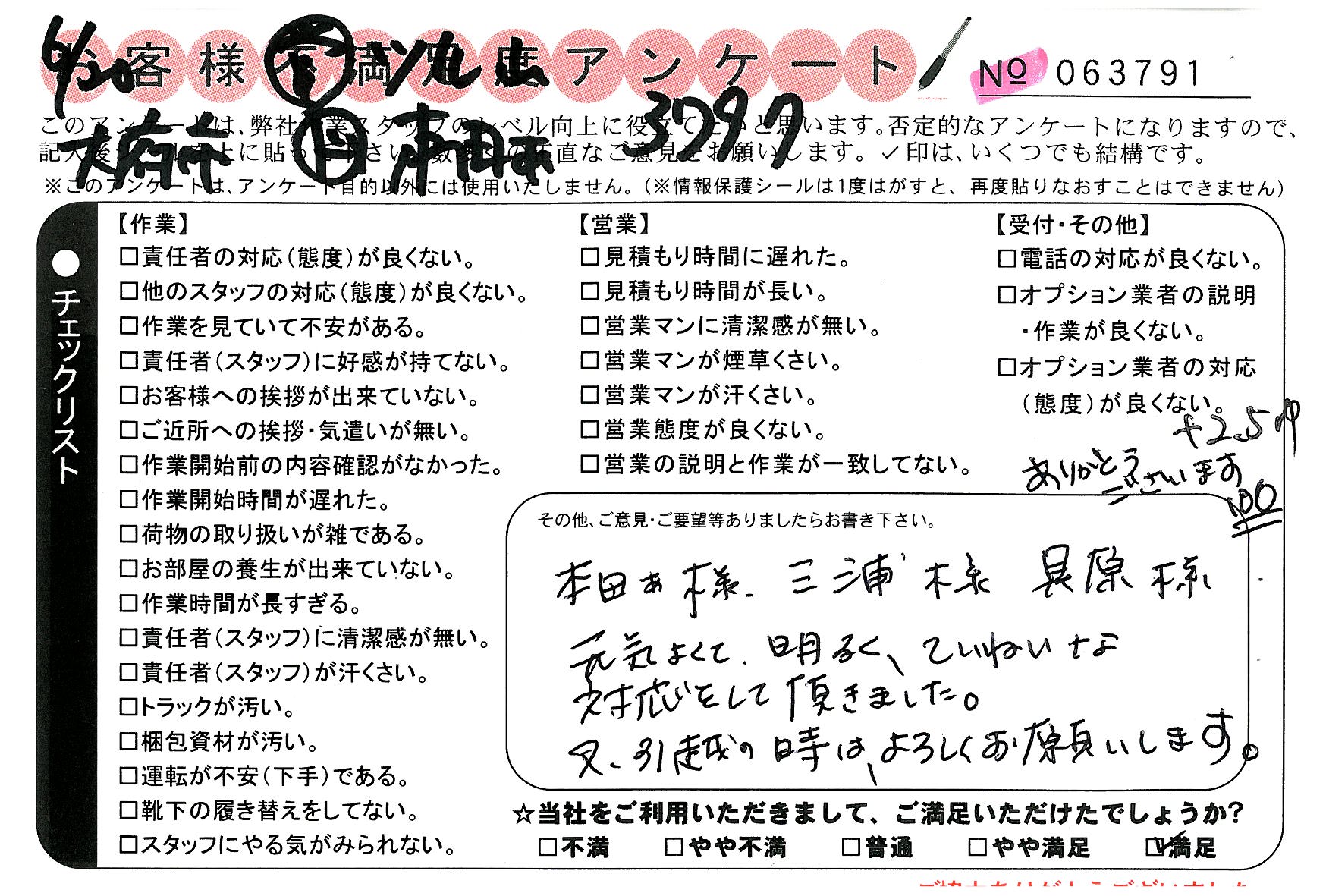 引越一番でお引越しをしていただいたお客様のうち、コメントいただいたアンケートを全て掲載しています。