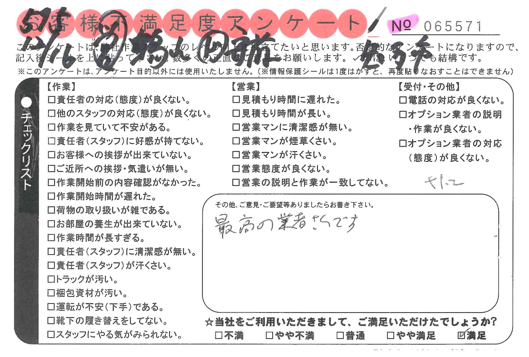 不満足度アンケートを行っている引越一番では、不評なアンケートも、好評なアンケートも全て掲載しています。