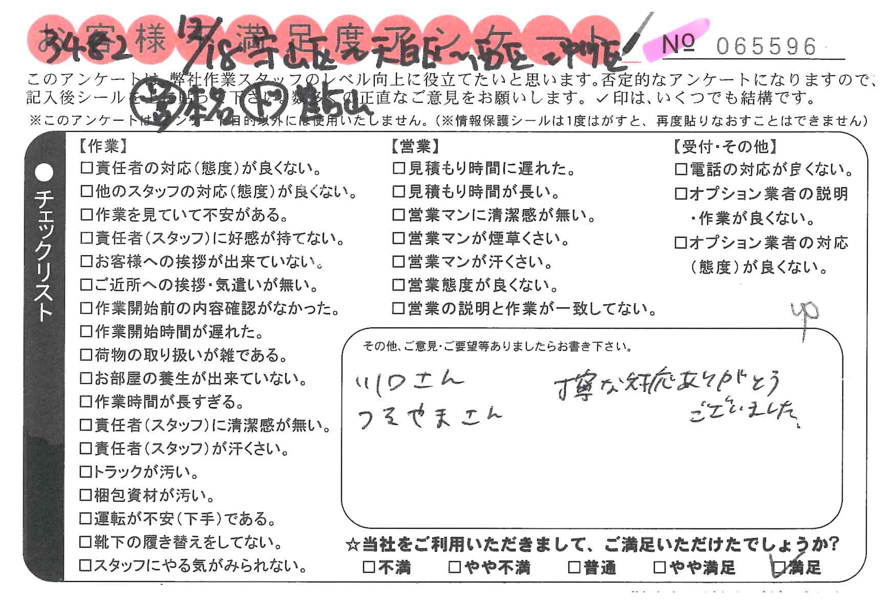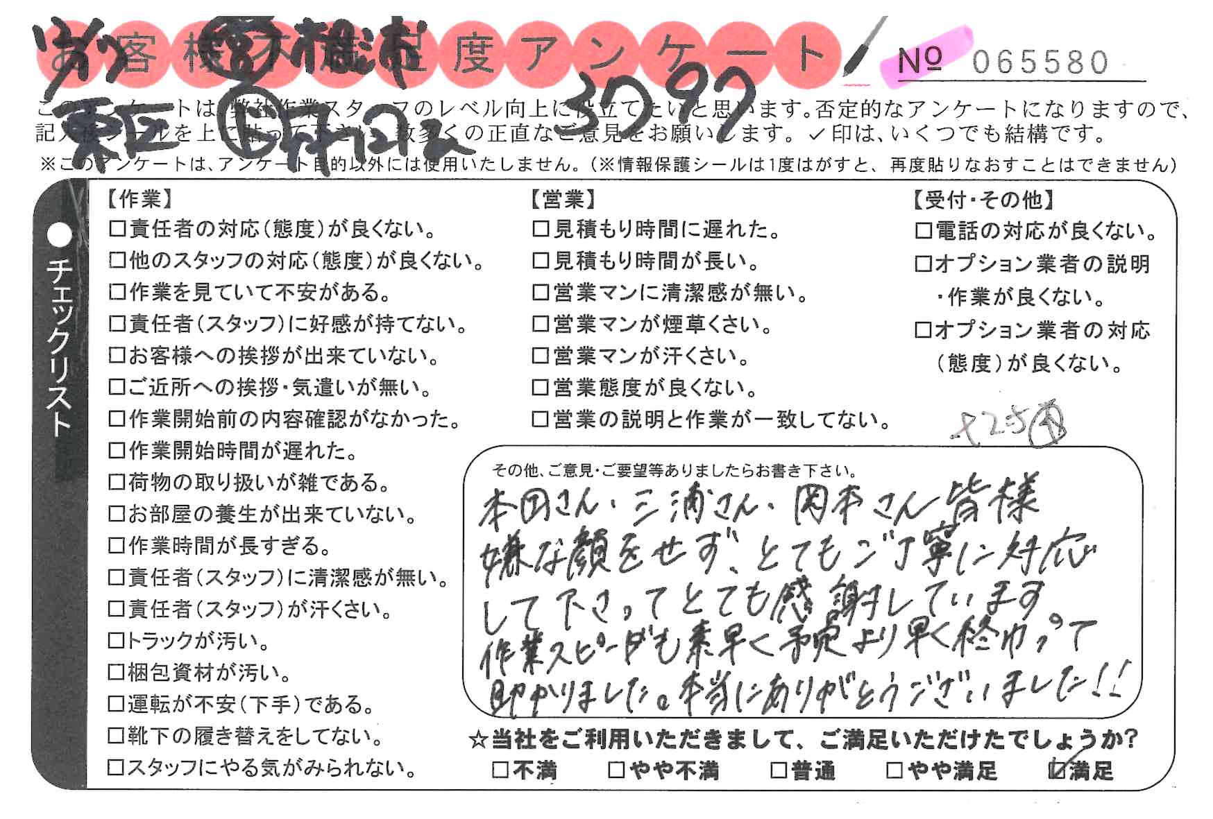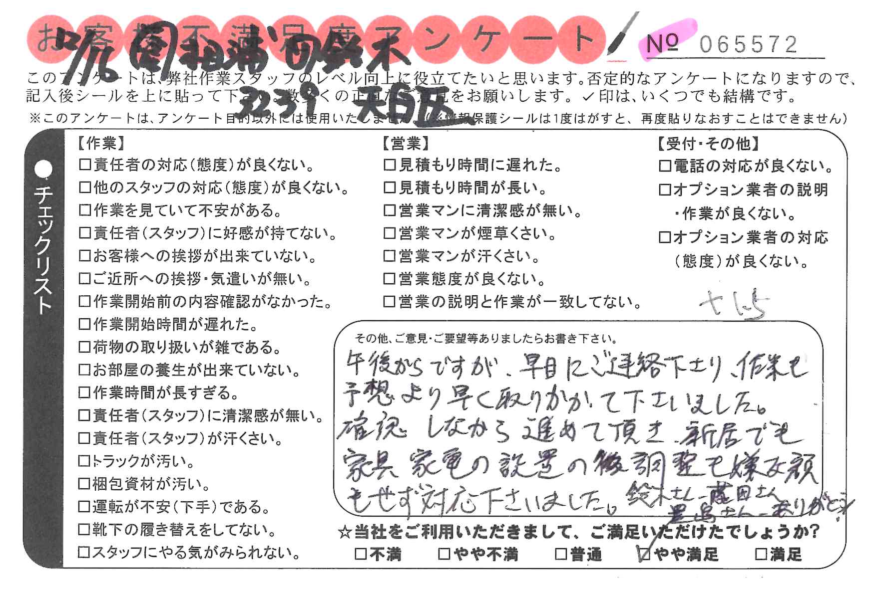引越一番でお引越しをしていただいたお客様のうち、コメントいただいたアンケートを全て掲載しています。