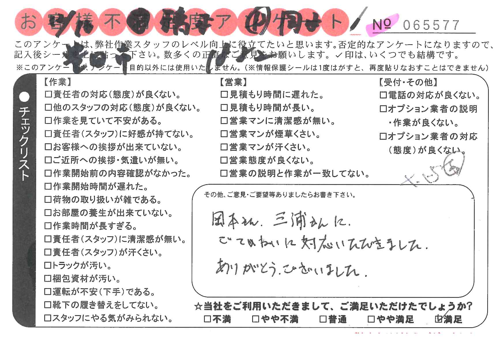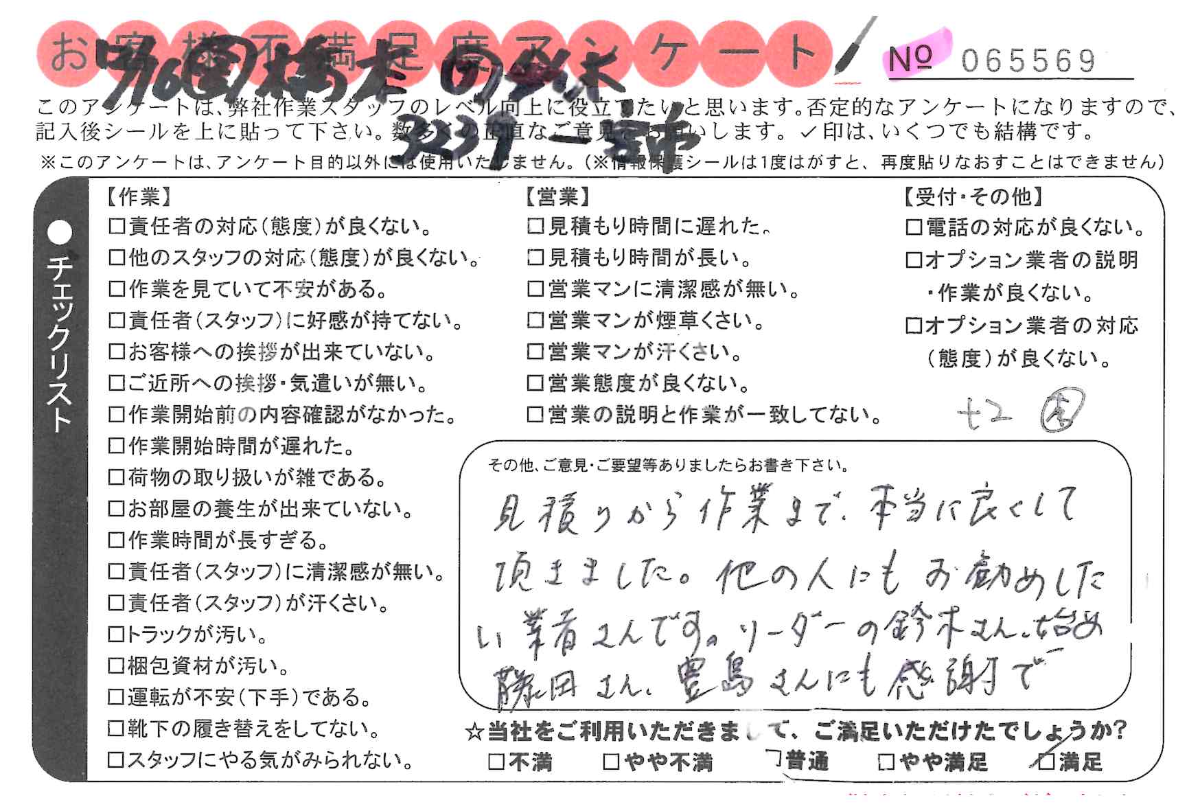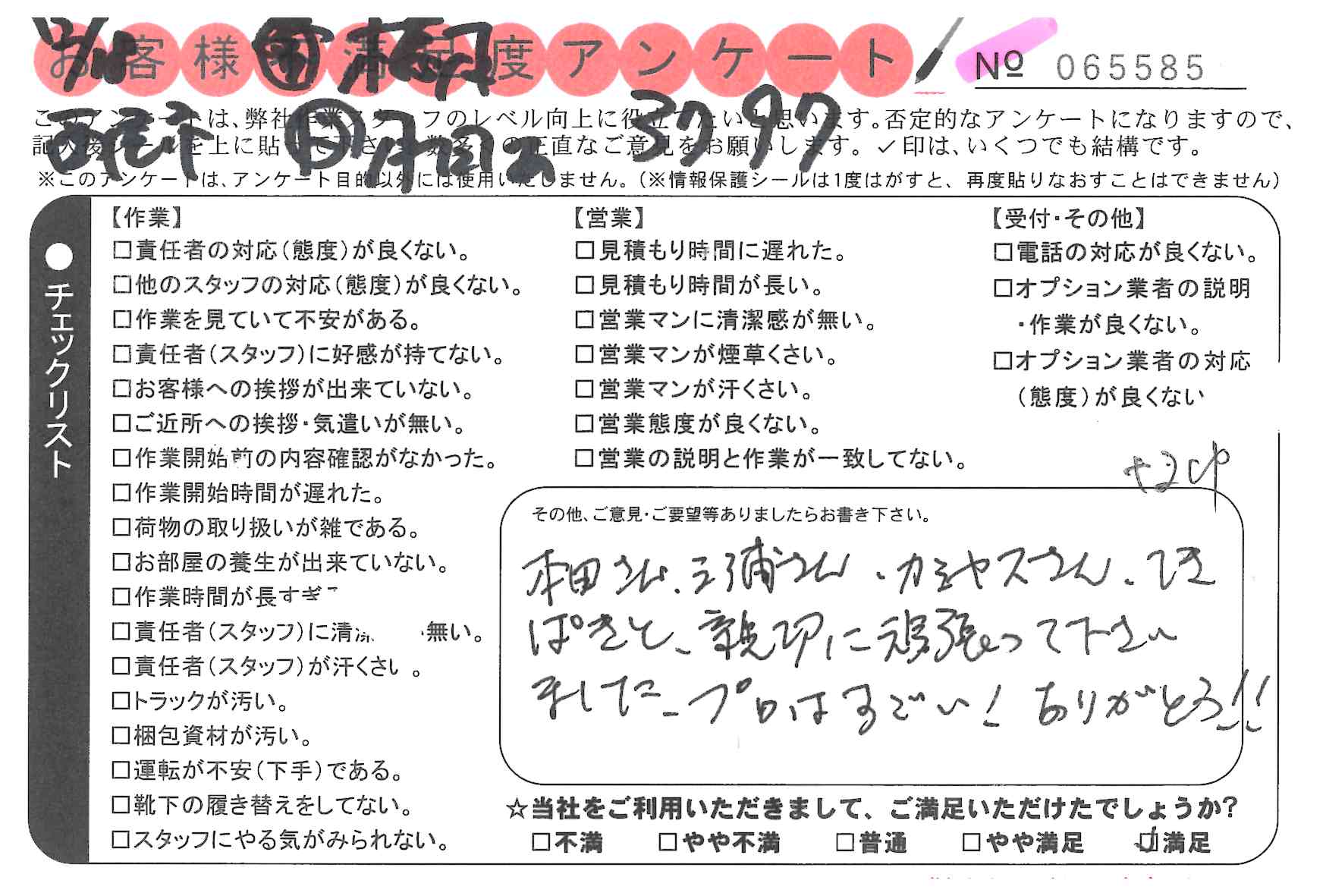 引越一番でお引越しをしていただいたお客様のうち、コメントいただいたアンケートを全て掲載しています。