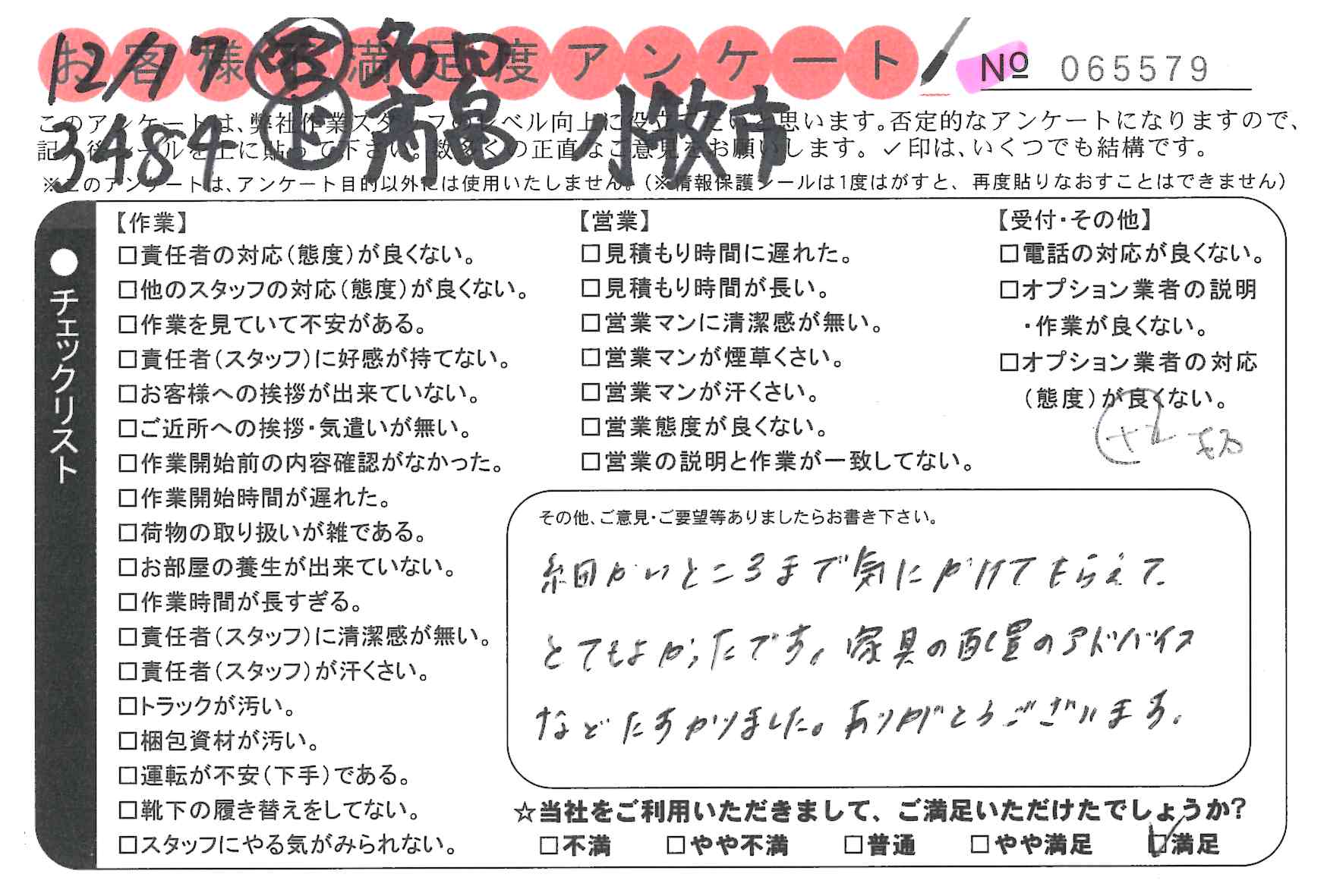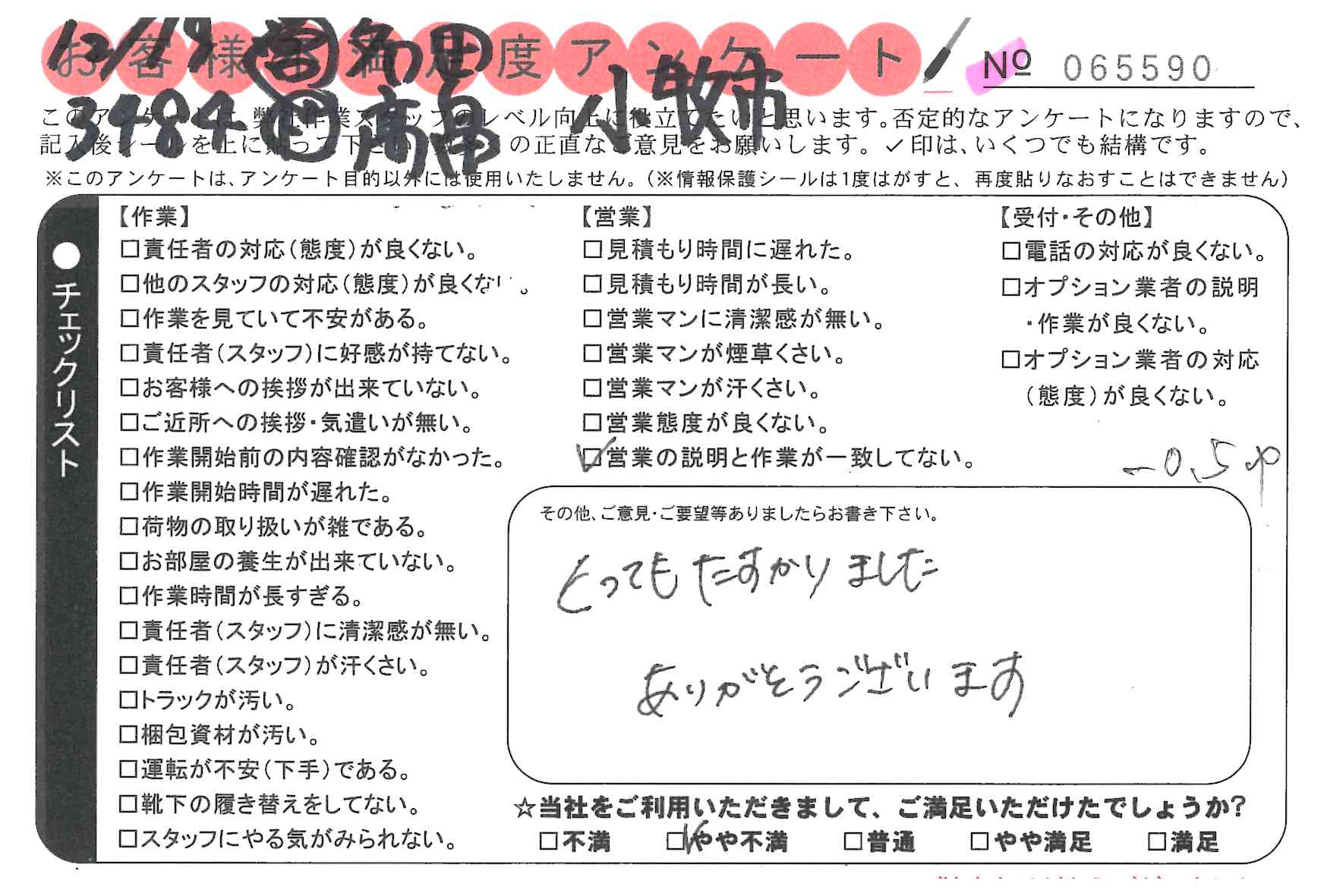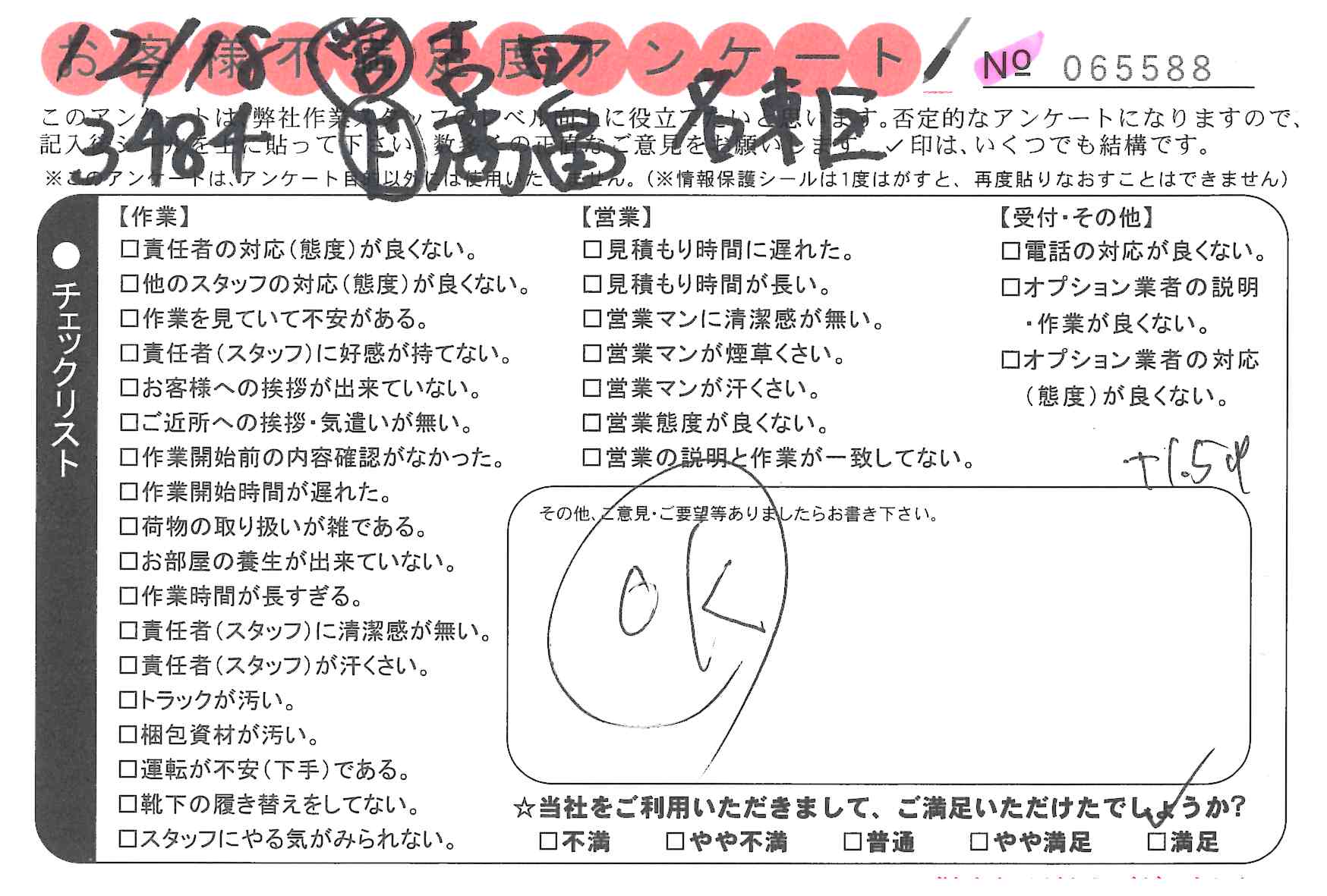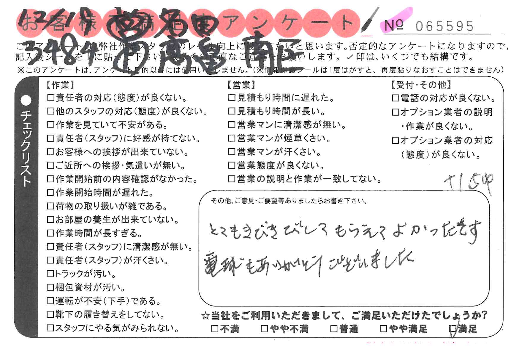 * 思ったより早く片づけて頂いて助かりました。
