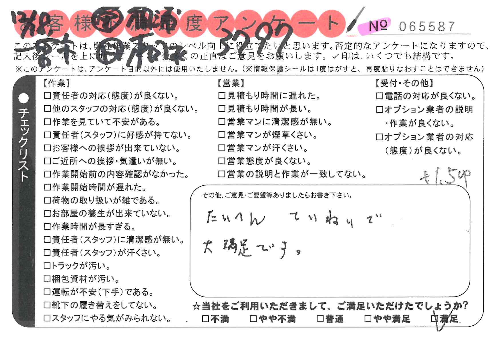 * たいへんていねいで大満足です。