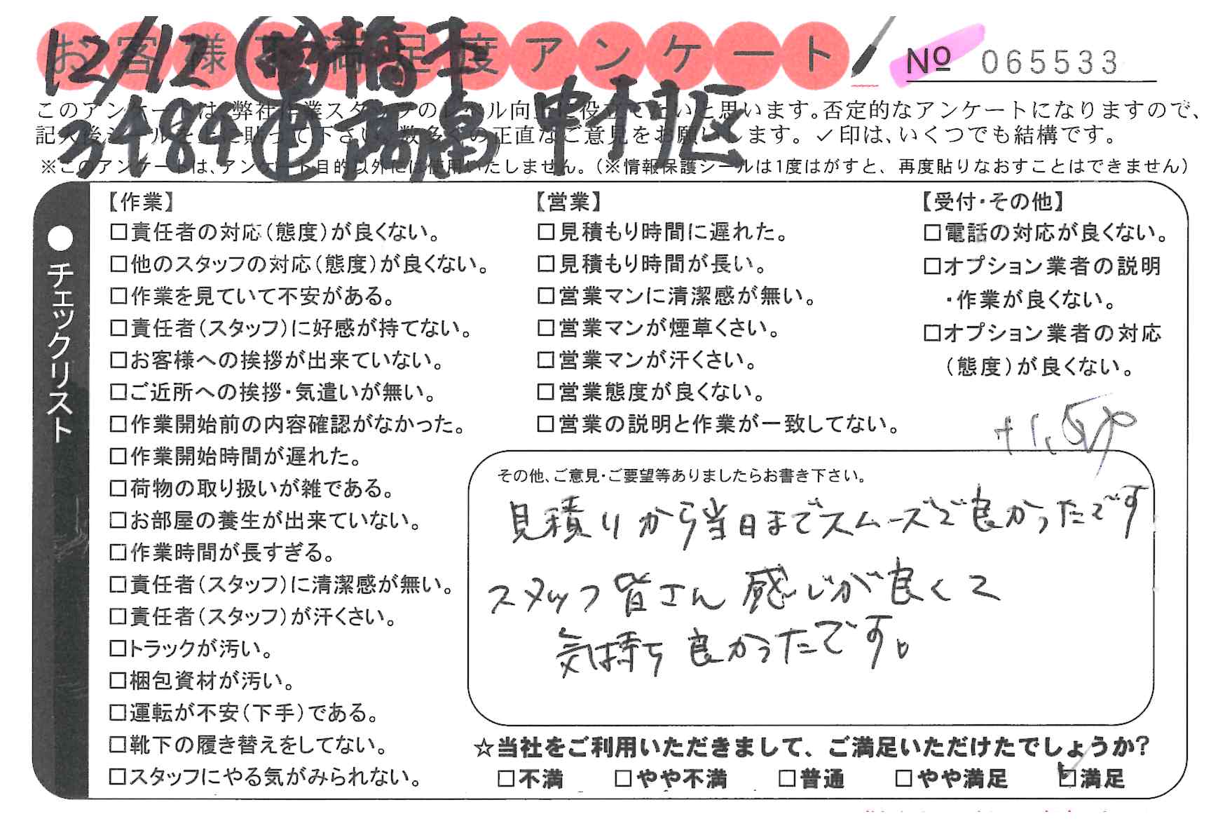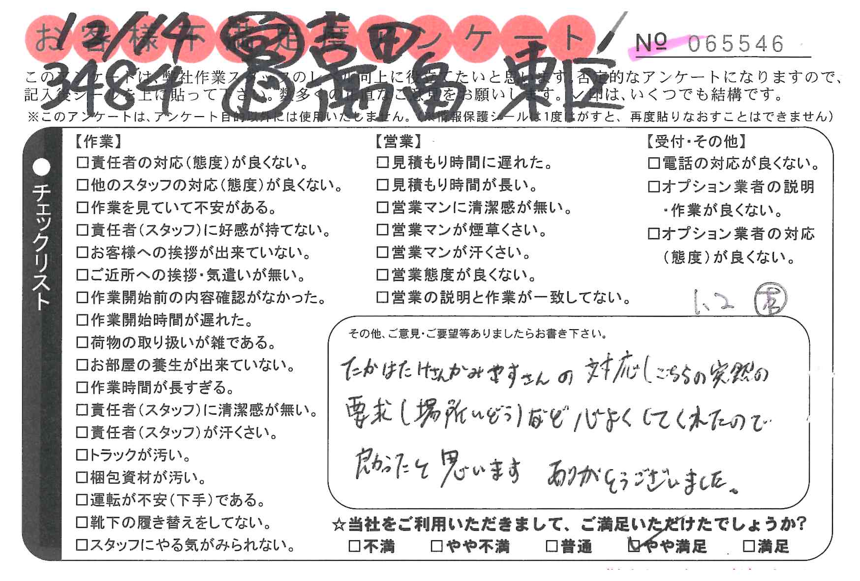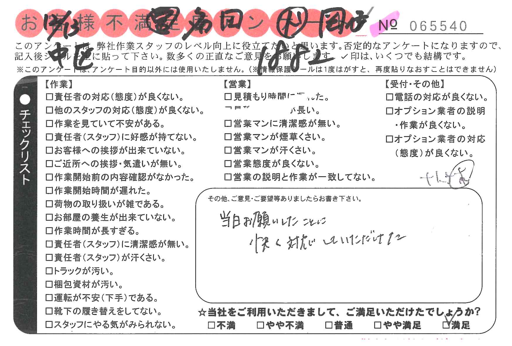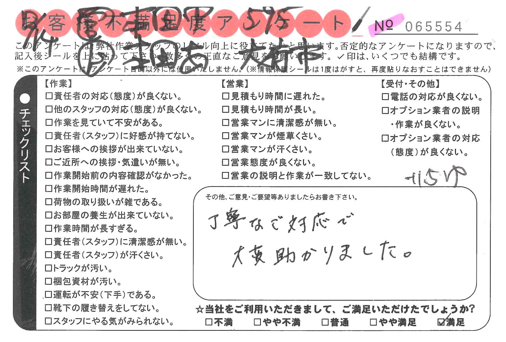 作業いただき満足しております。次、引越しする際も