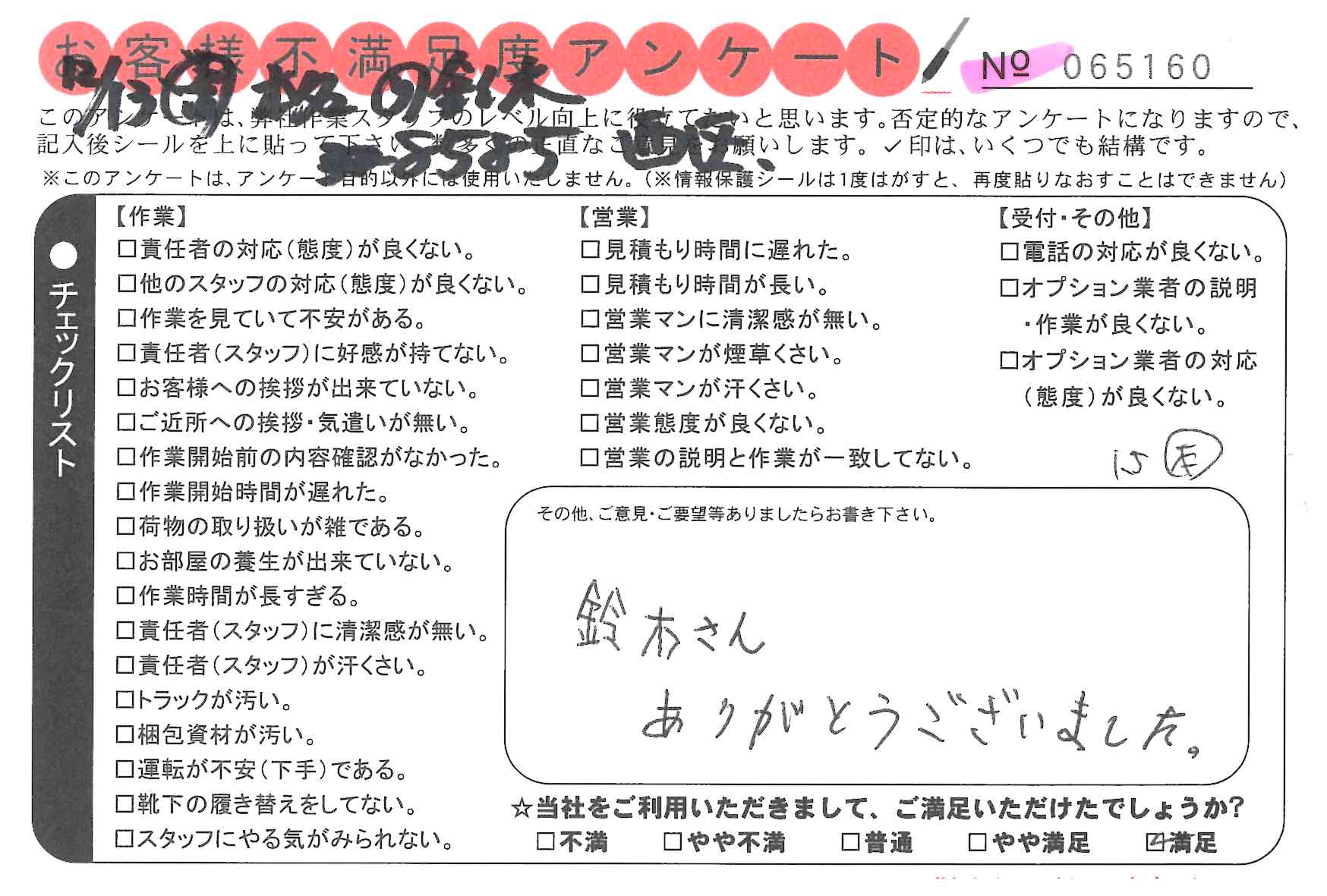 鈴木さん 対応が良かった