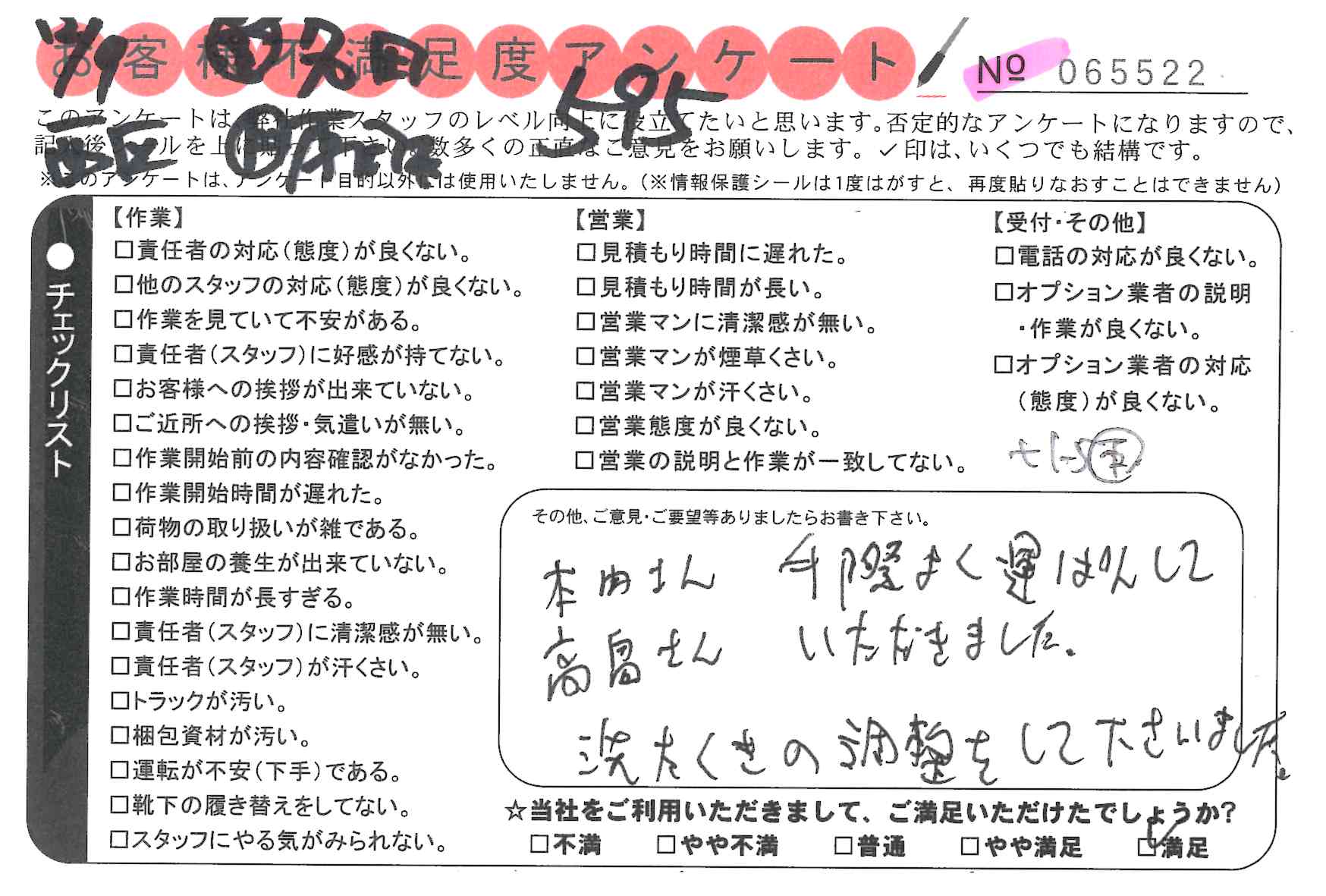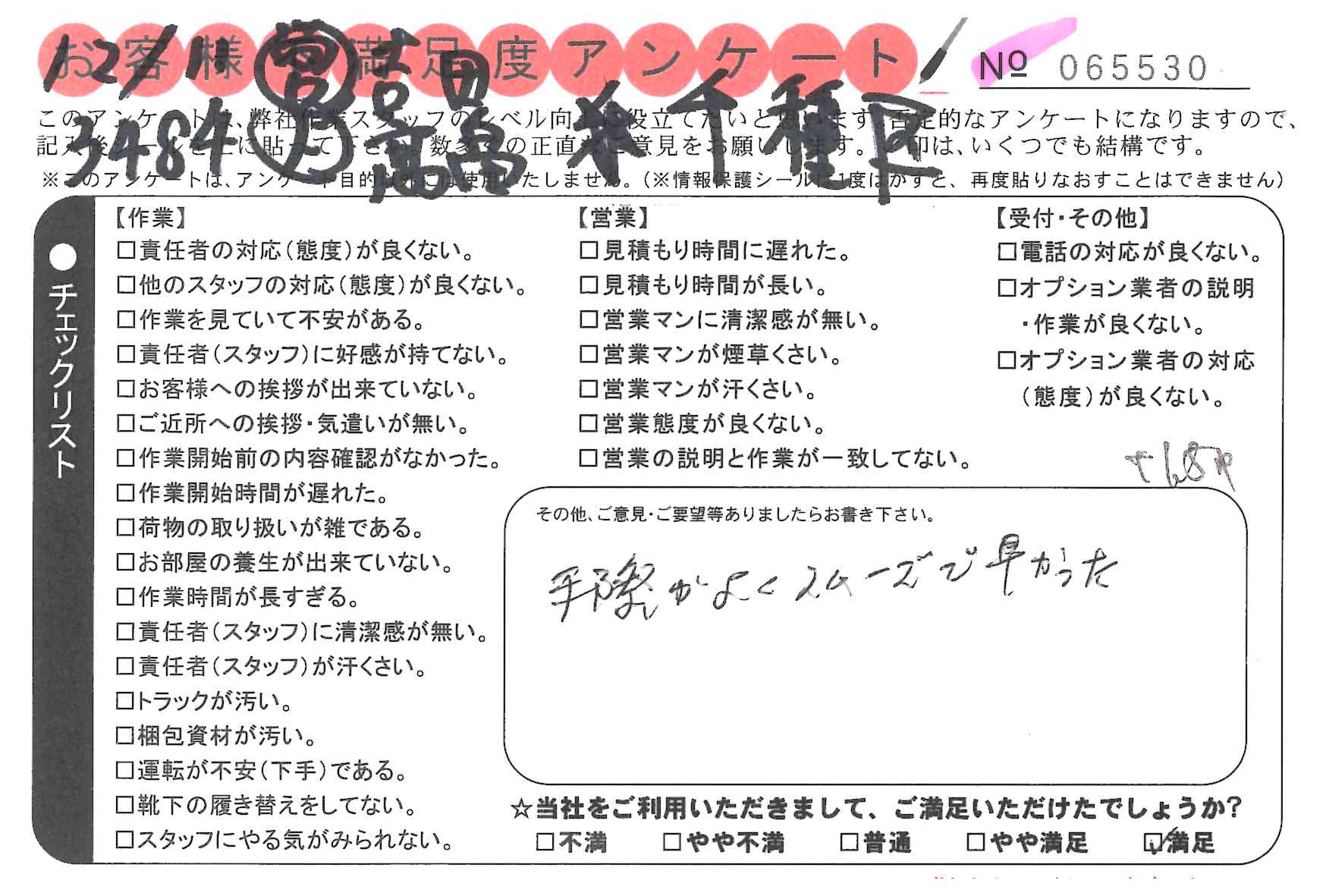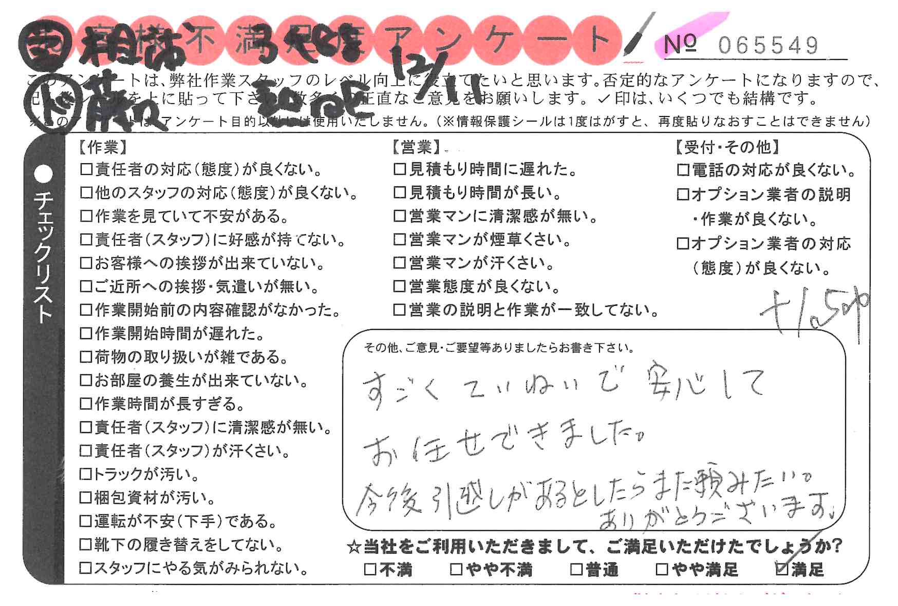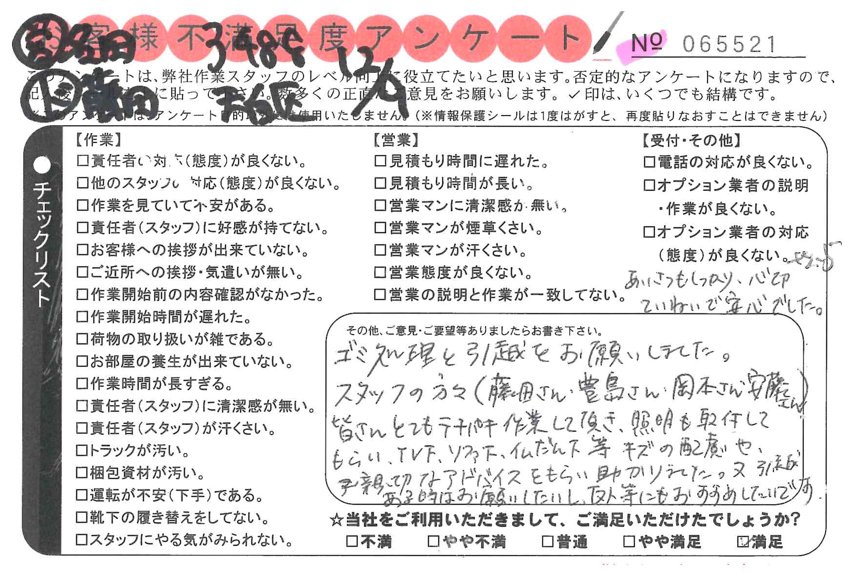 引越一番でお引越しをしていただいたお客様のうち、コメントいただいたアンケートを全て掲載しています。