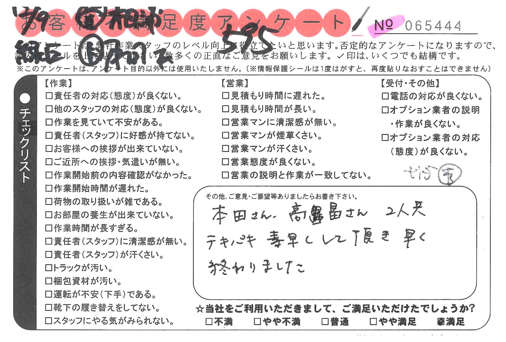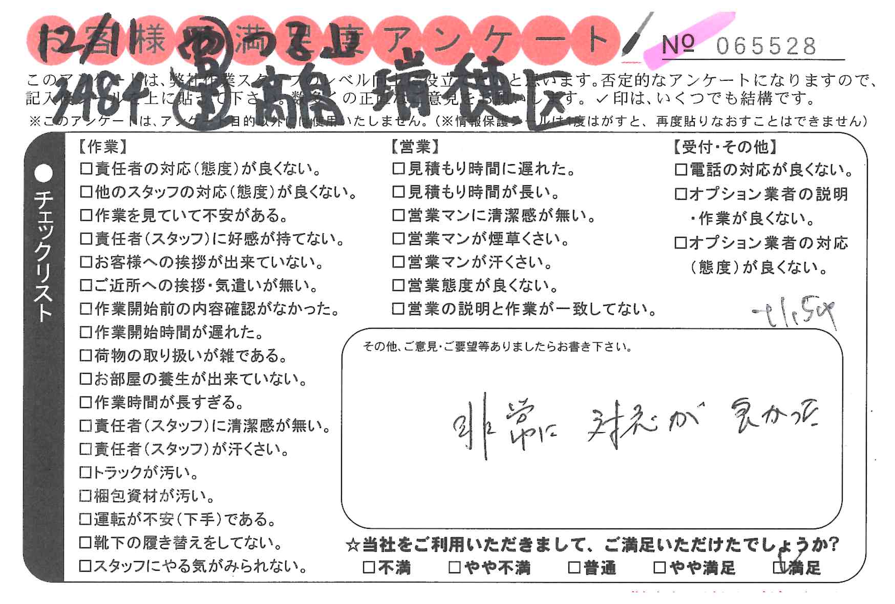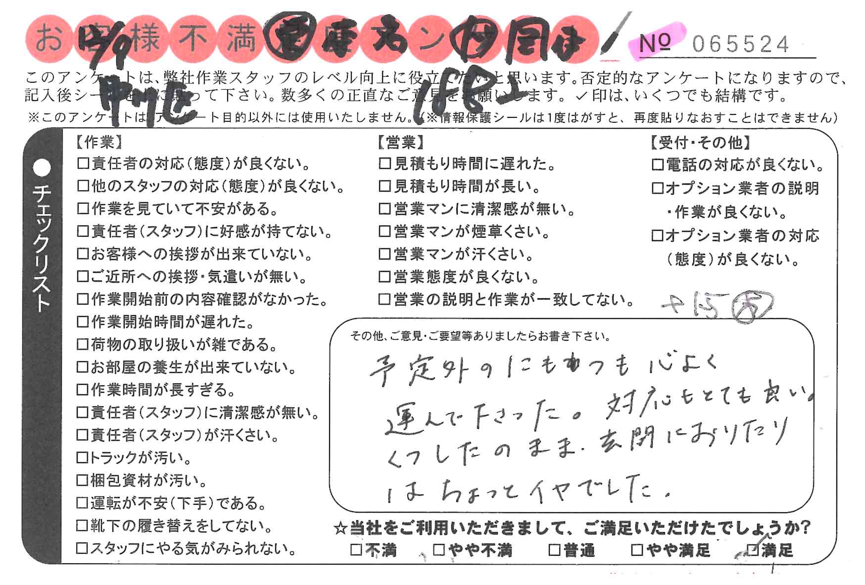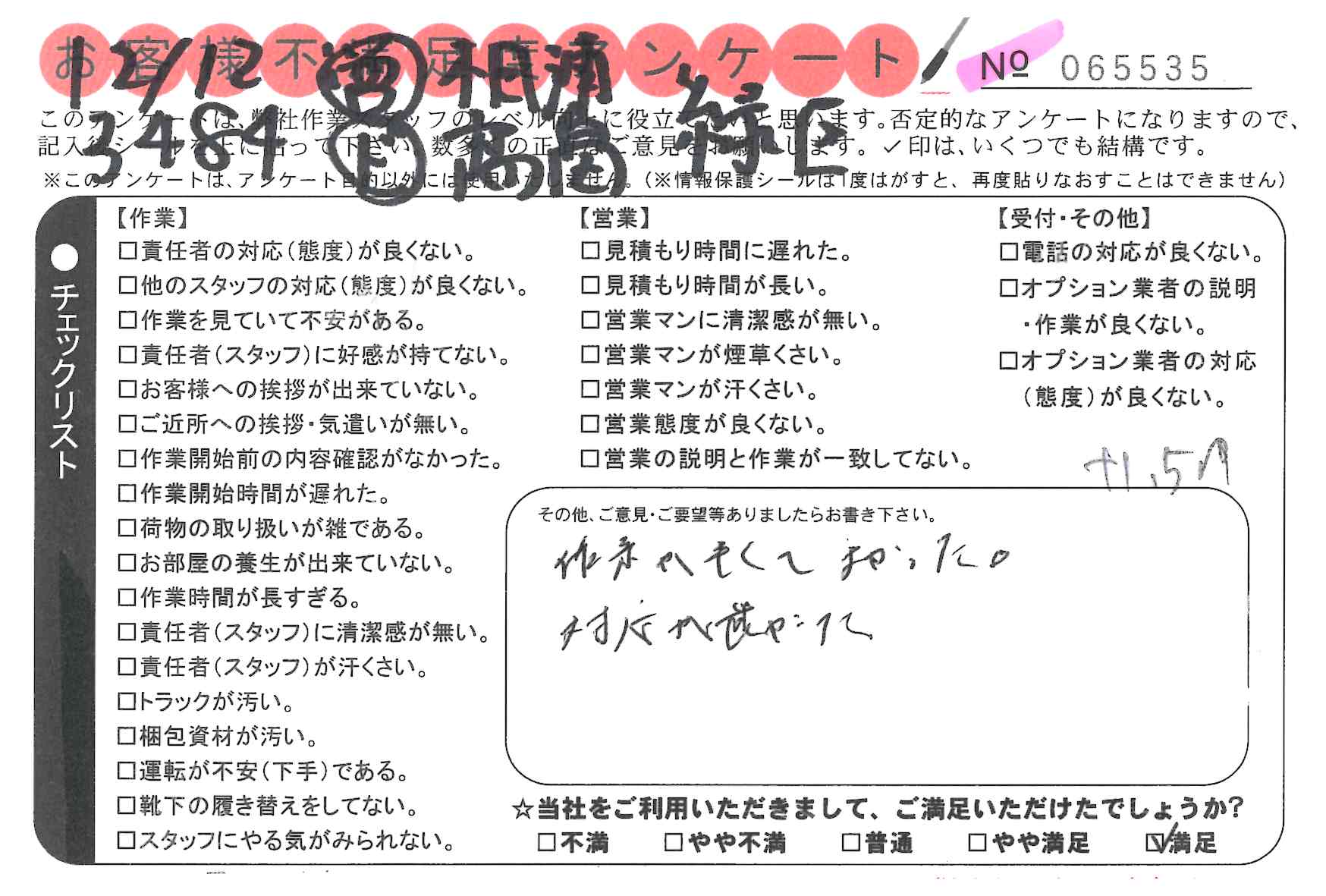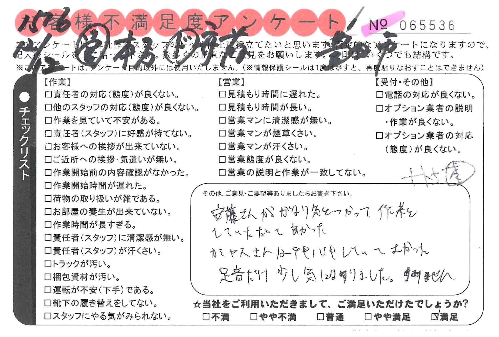引越一番でお引越しをしていただいたお客様のうち、コメントいただいたアンケートを全て掲載しています。