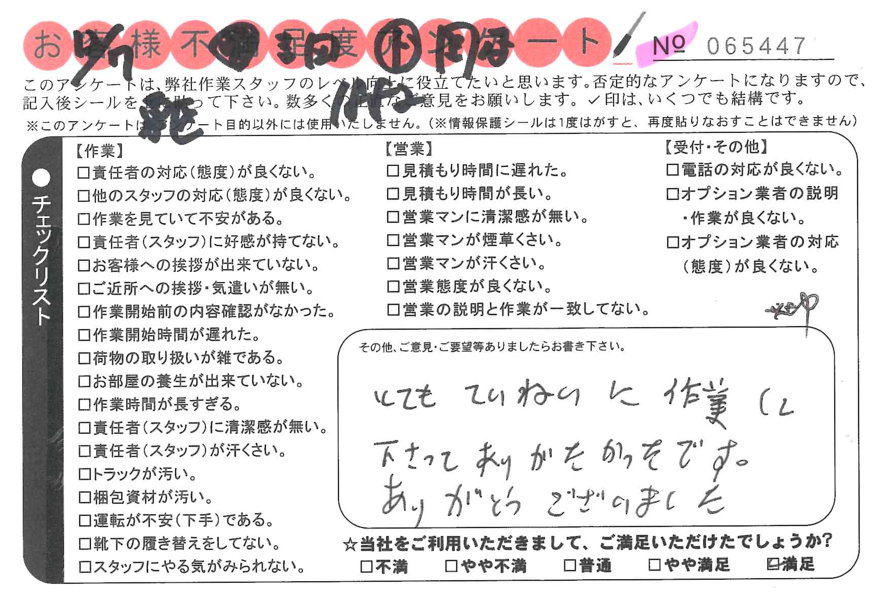 * 手早く行っていただき、大変助かりました。