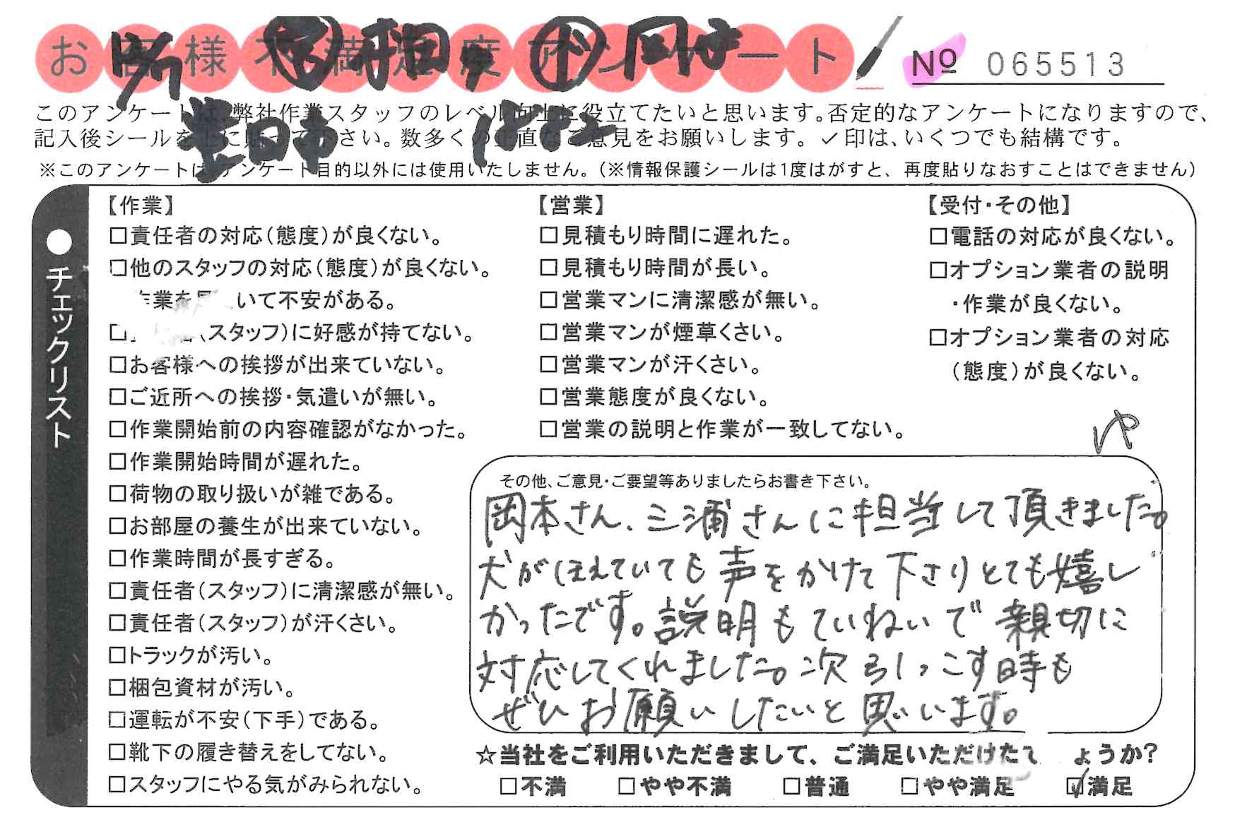 * とてもスムーズに岡本さんと三浦さんが対応してくれました。
