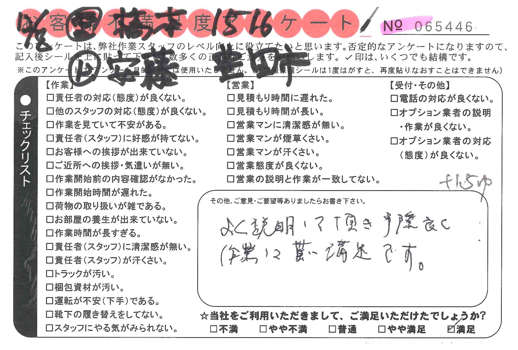 不満足度アンケートを行っている引越一番では、不評なアンケートも、好評なアンケートも全て掲載しています。