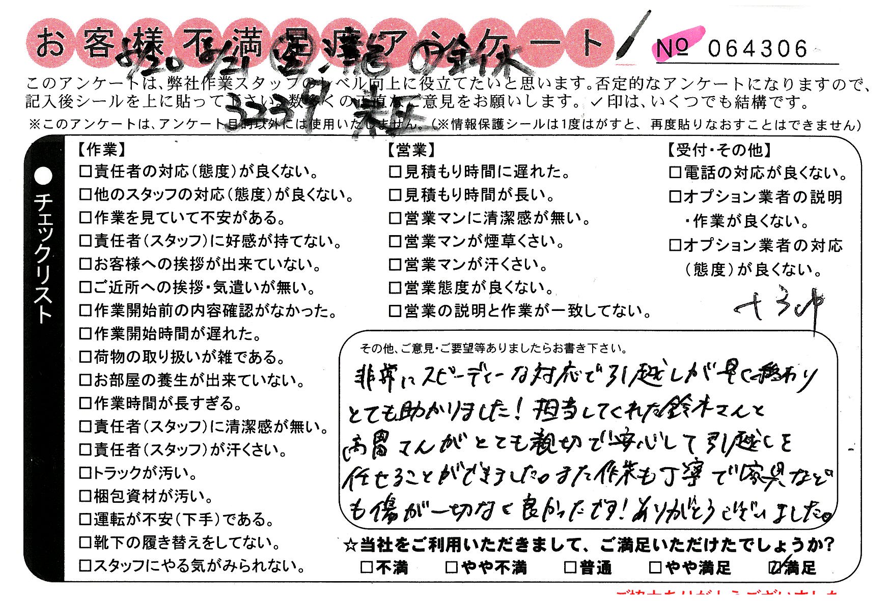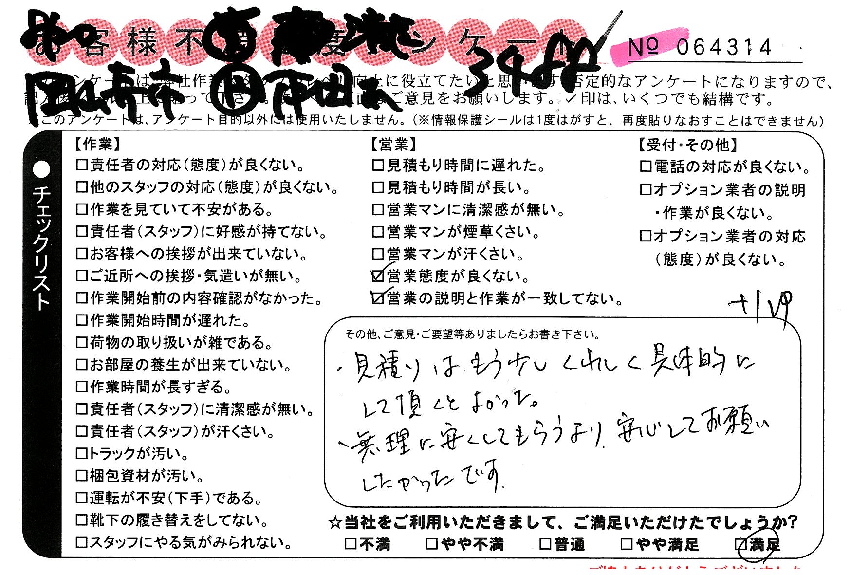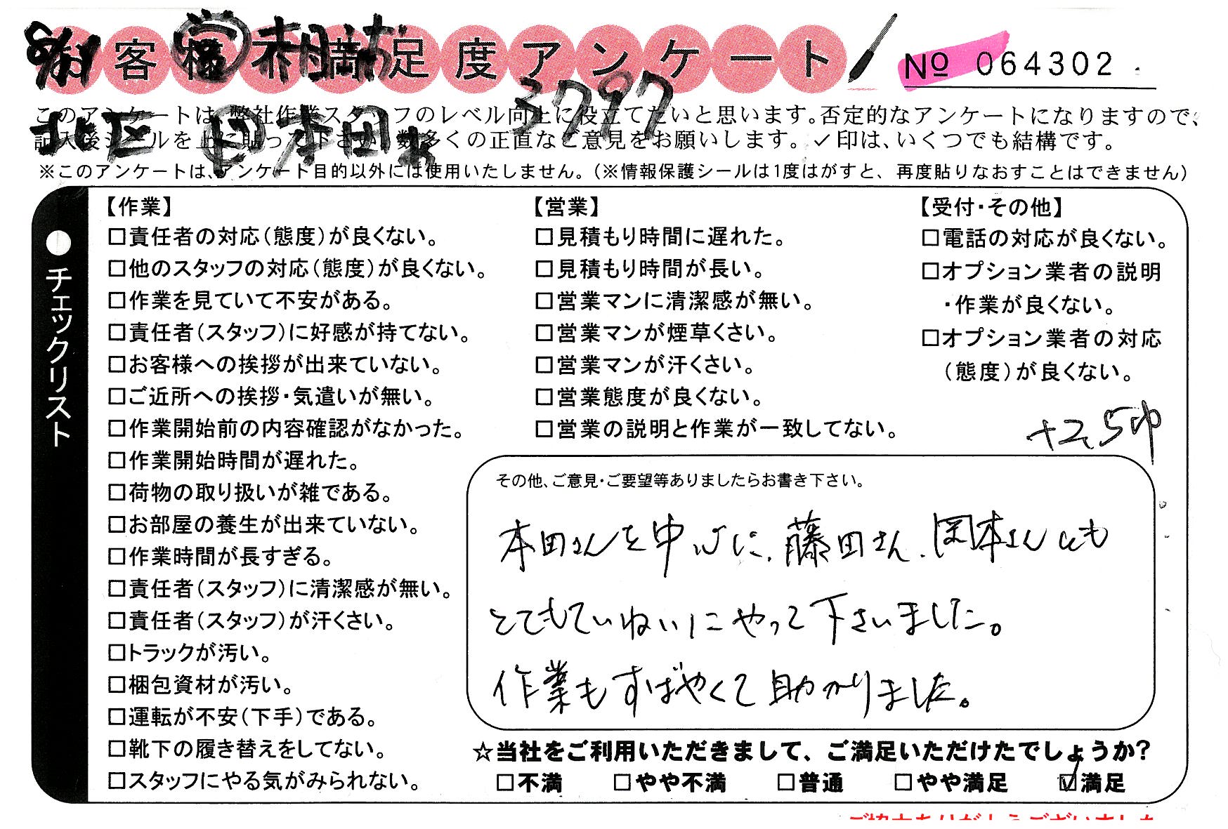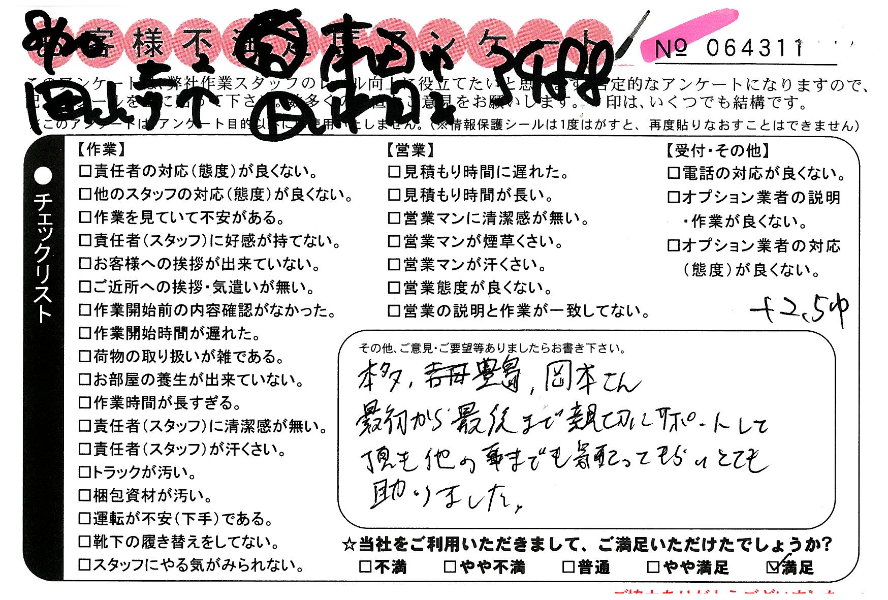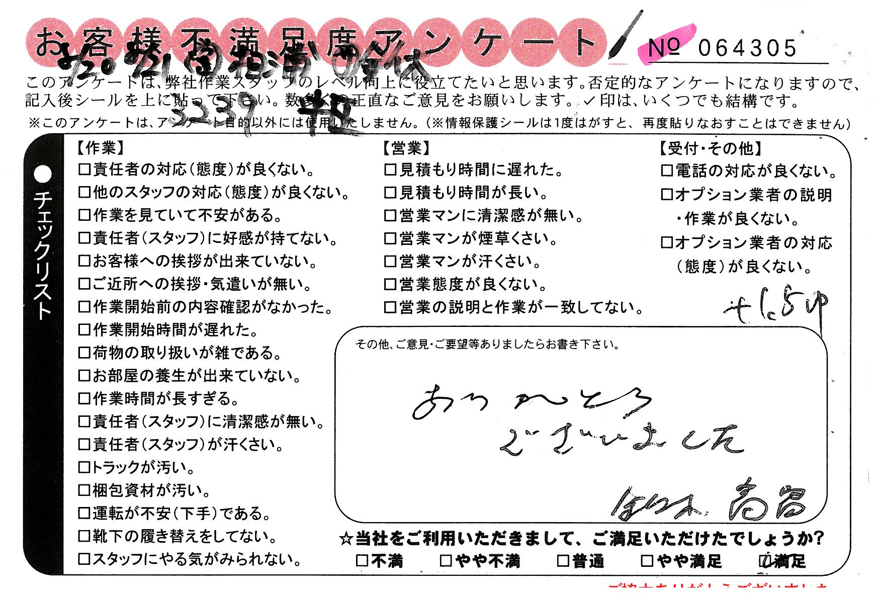 引越一番でお引越しをしていただいたお客様のうち、コメントいただいたアンケートを全て掲載しています。