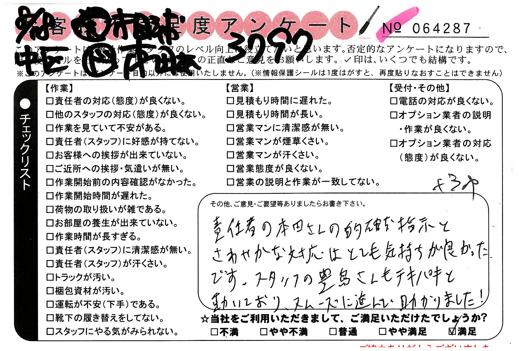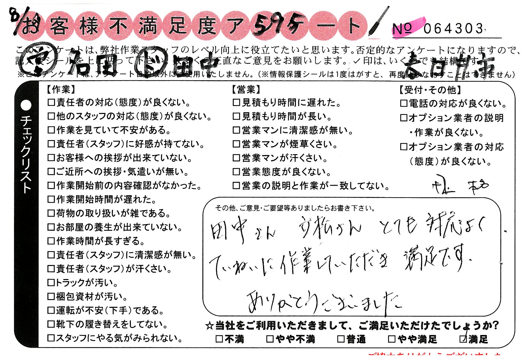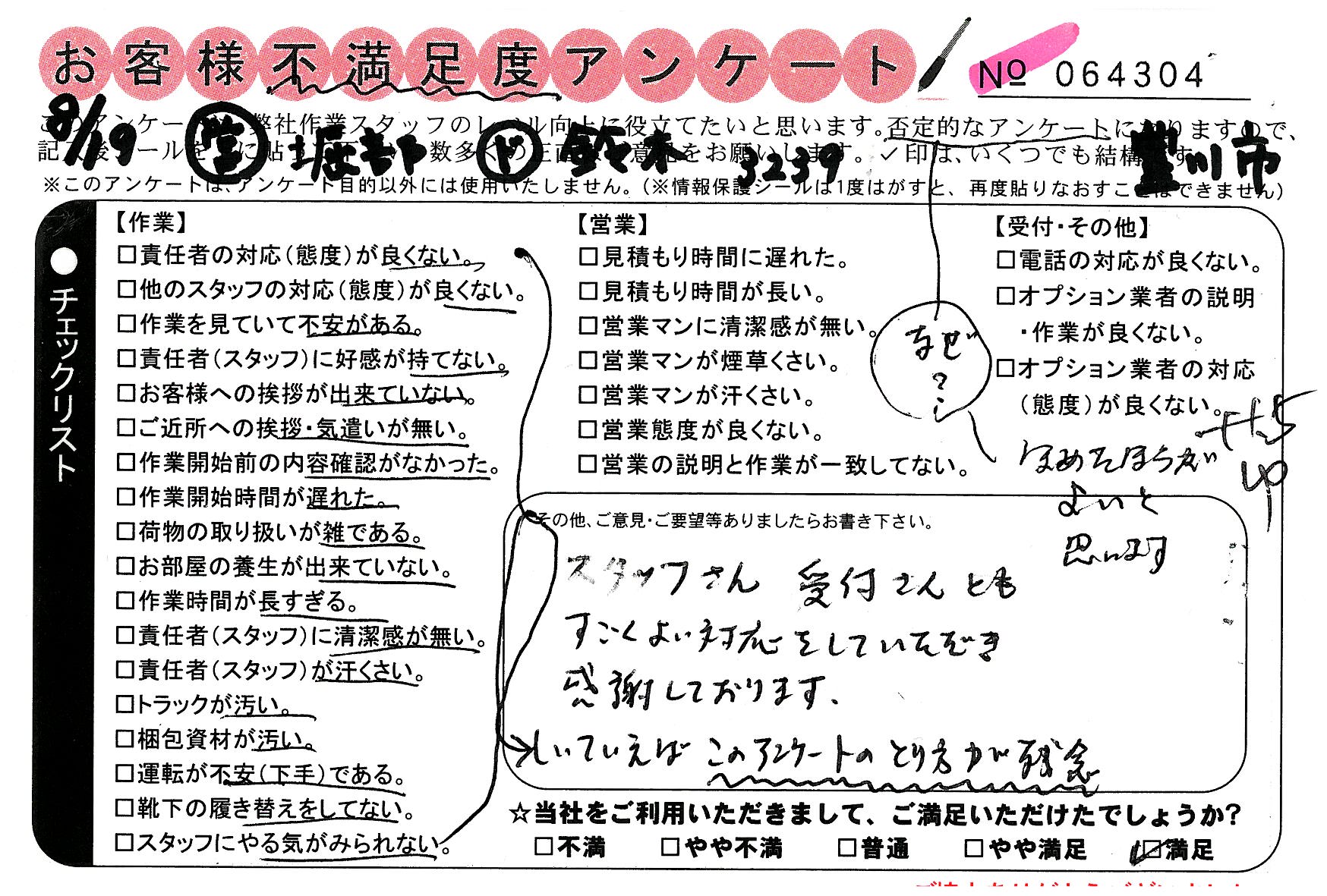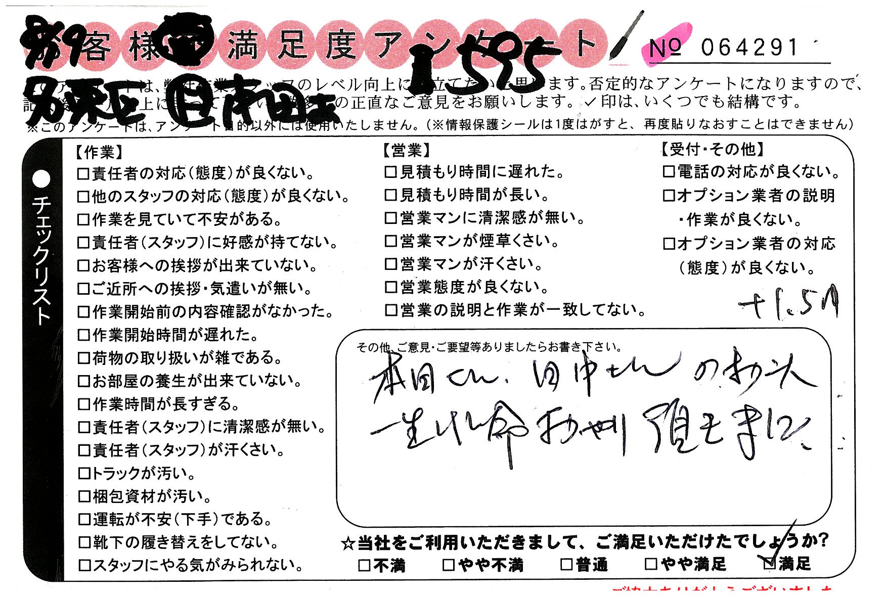引越一番でお引越しをしていただいたお客様のうち、コメントいただいたアンケートを全て掲載しています。