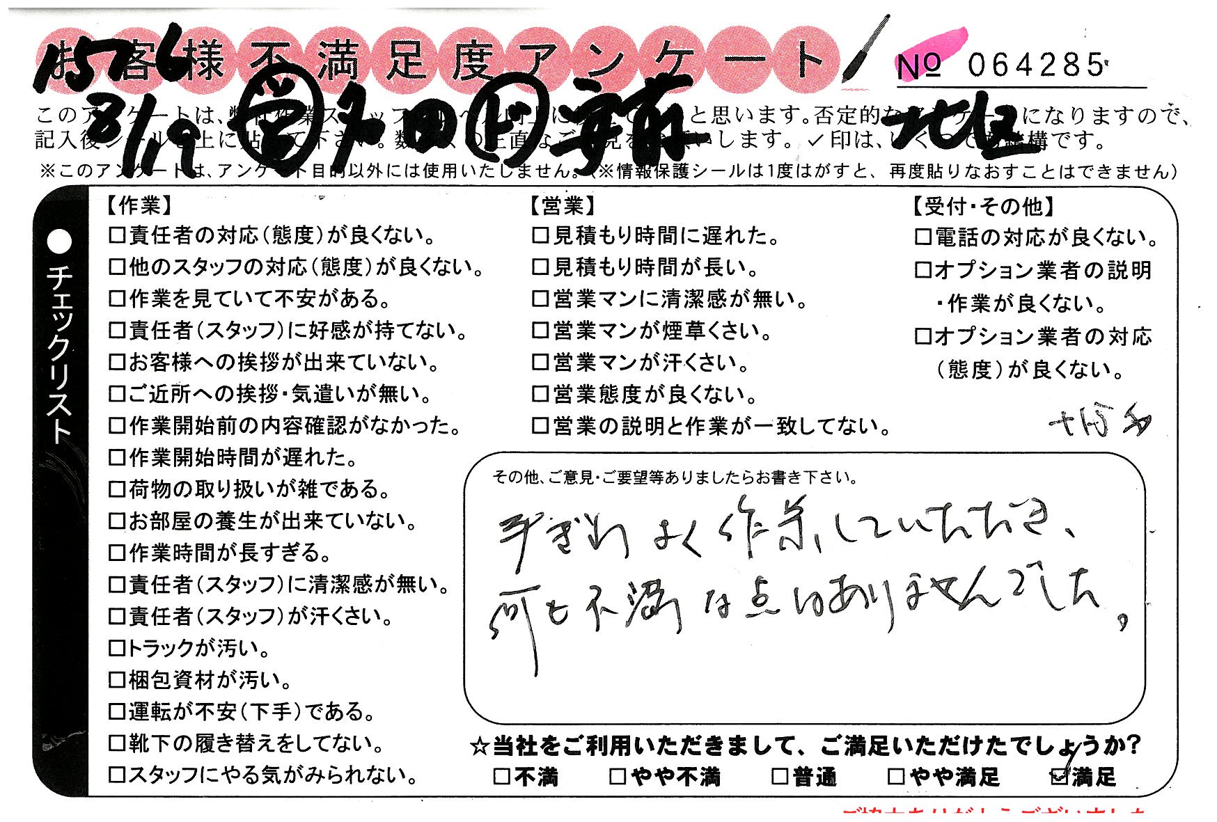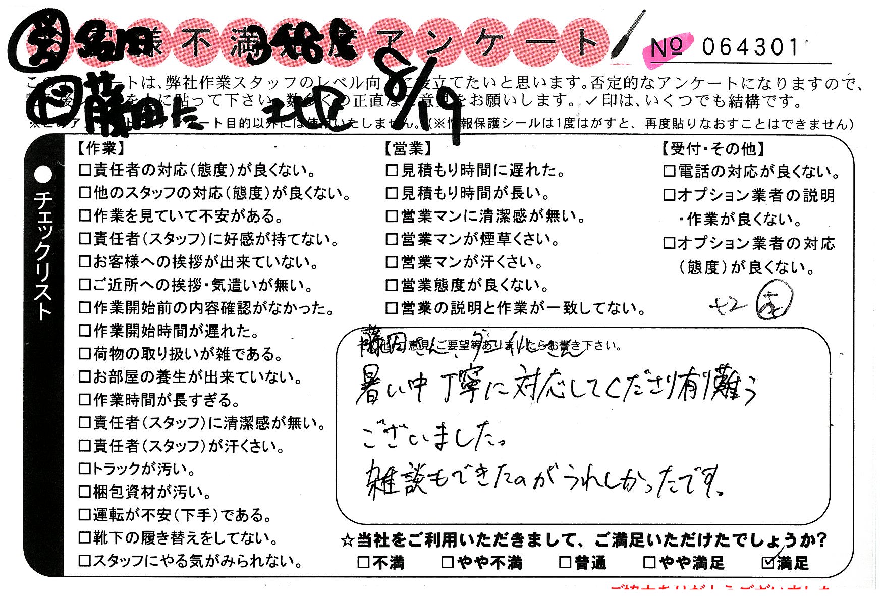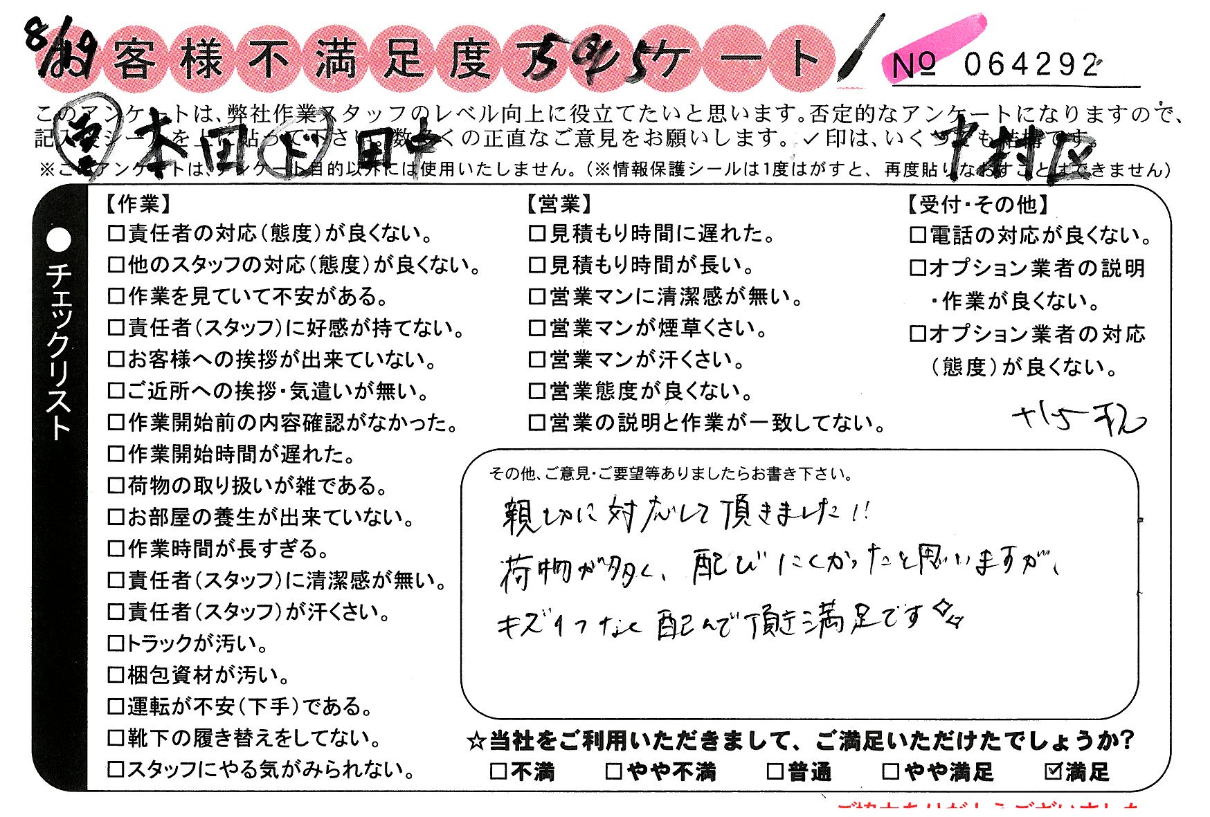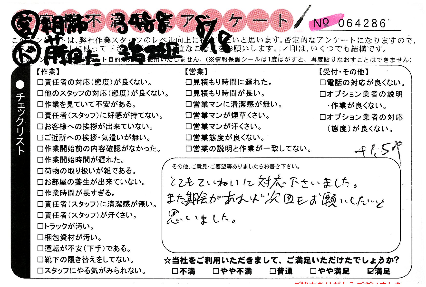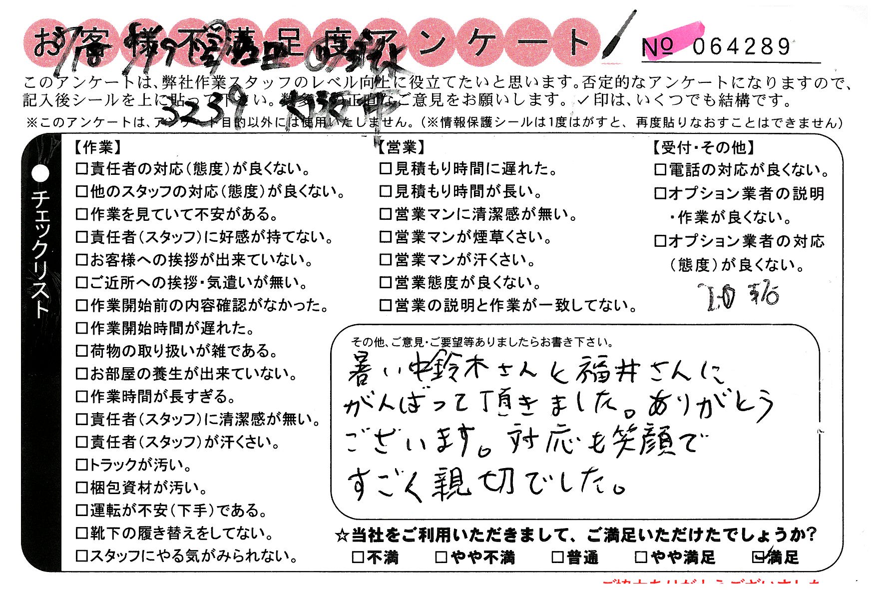 引越一番でお引越しをしていただいたお客様のうち、コメントいただいたアンケートを全て掲載しています。