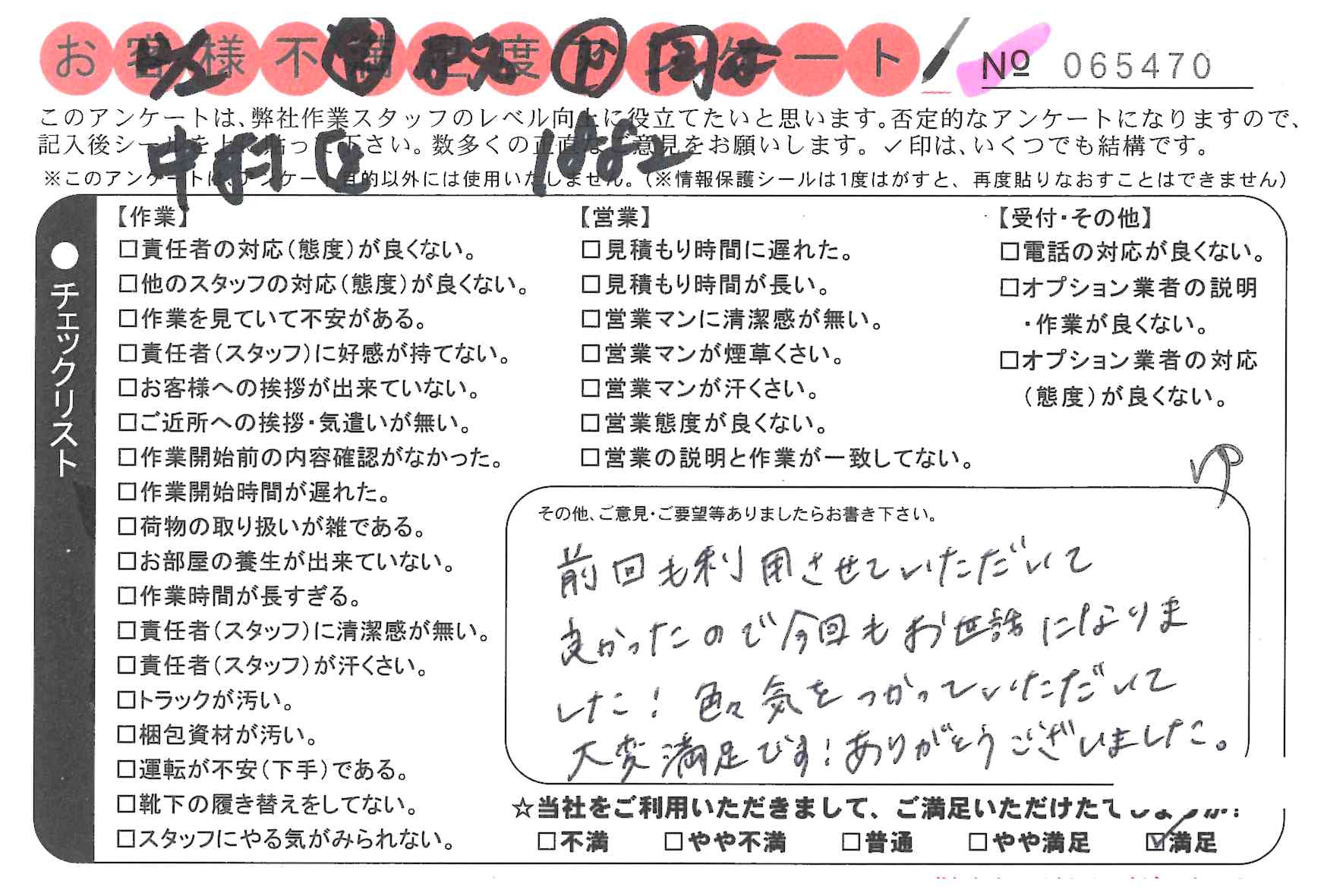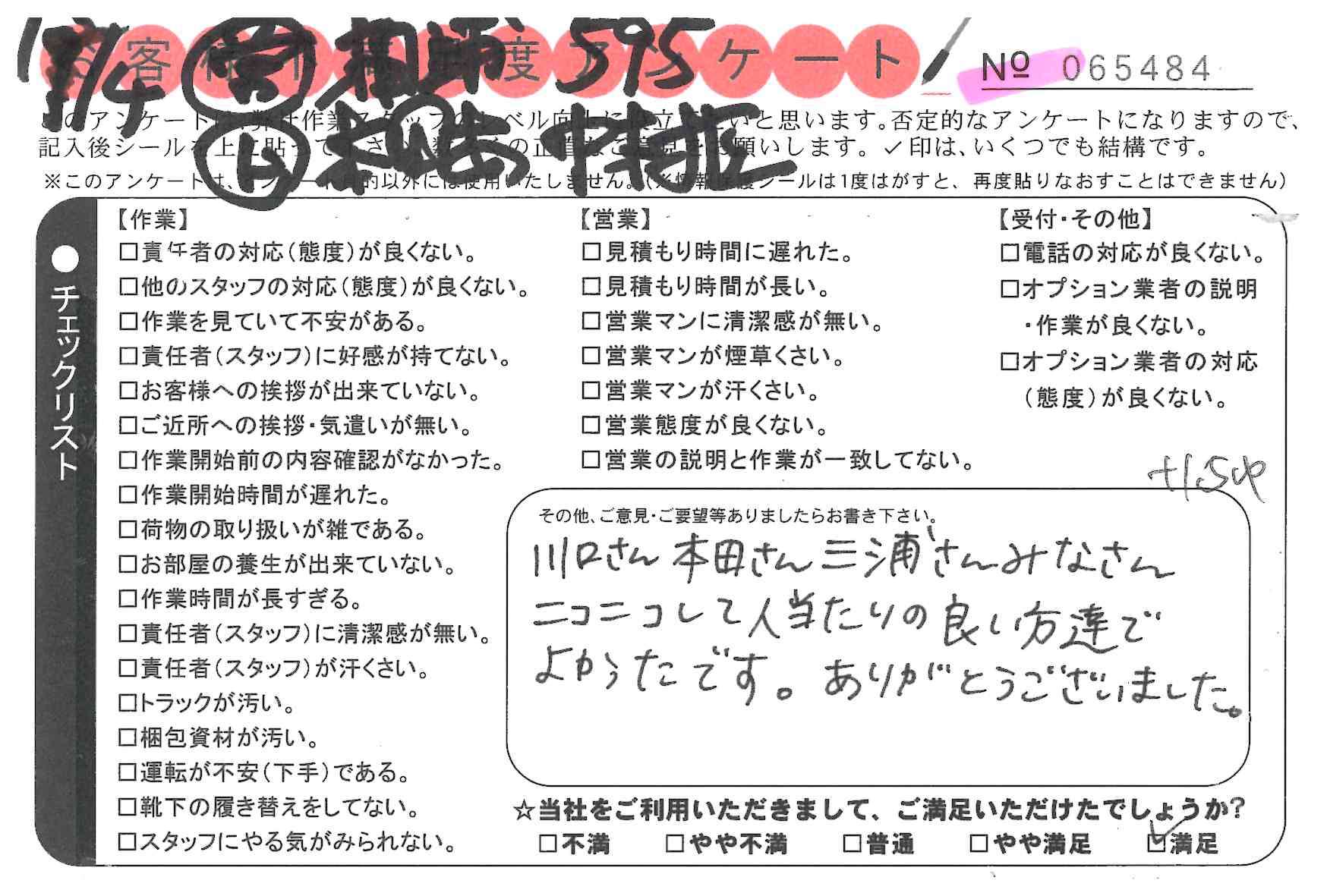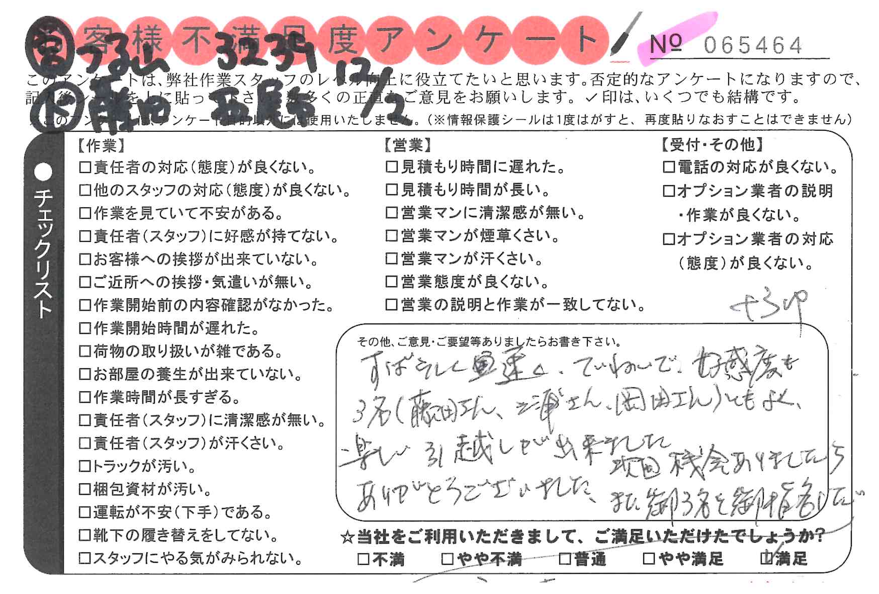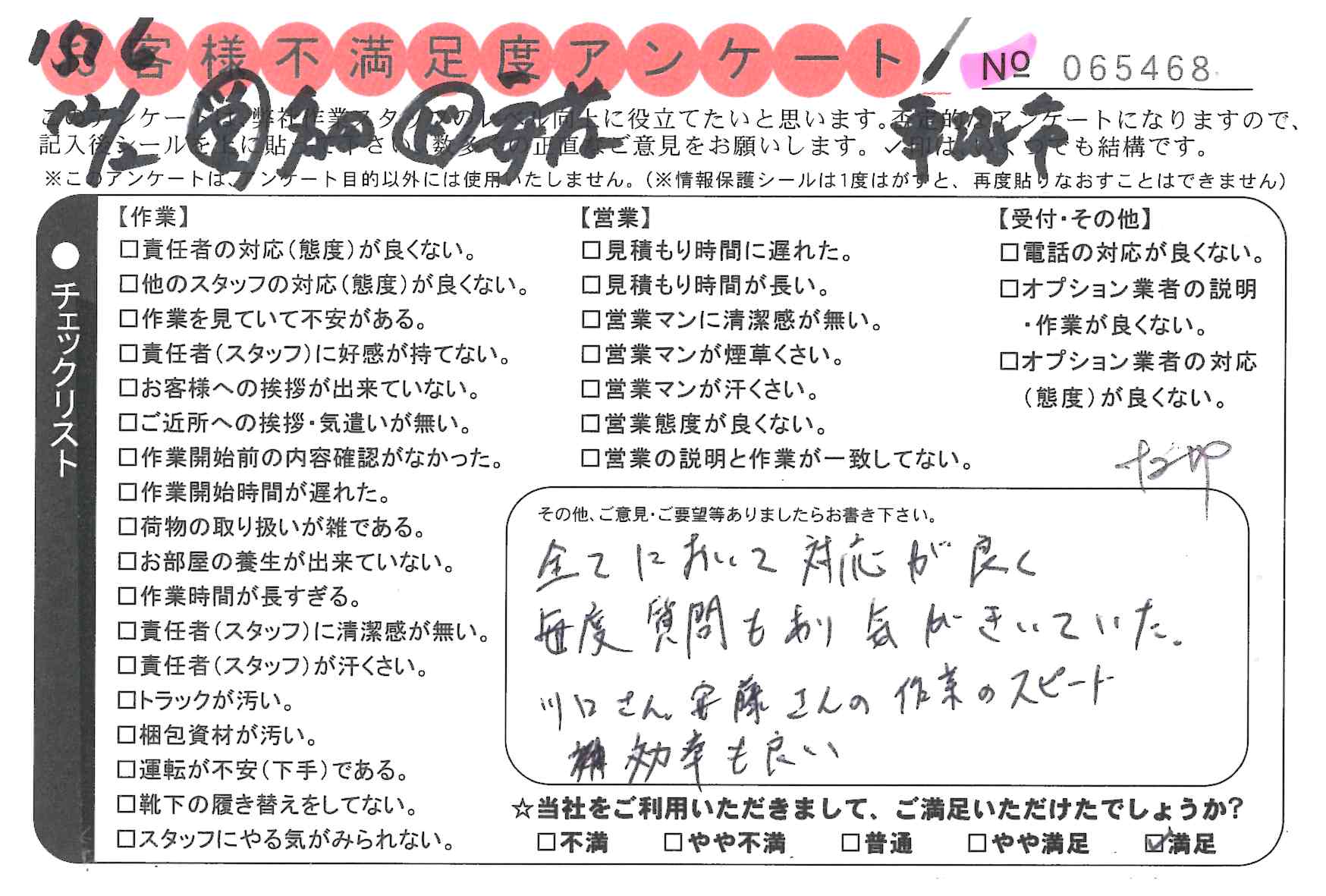 引越一番でお引越しをしていただいたお客様のうち、コメントいただいたアンケートを全て掲載しています。
