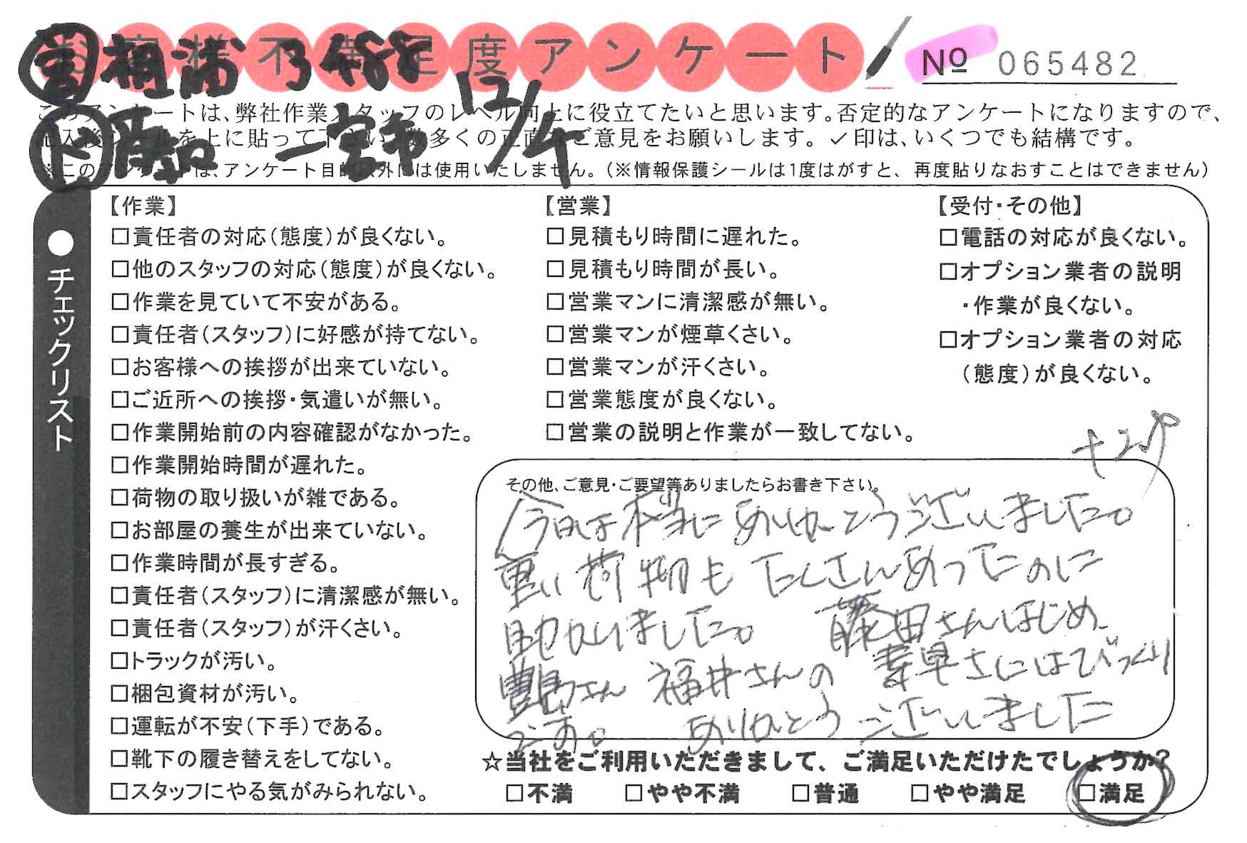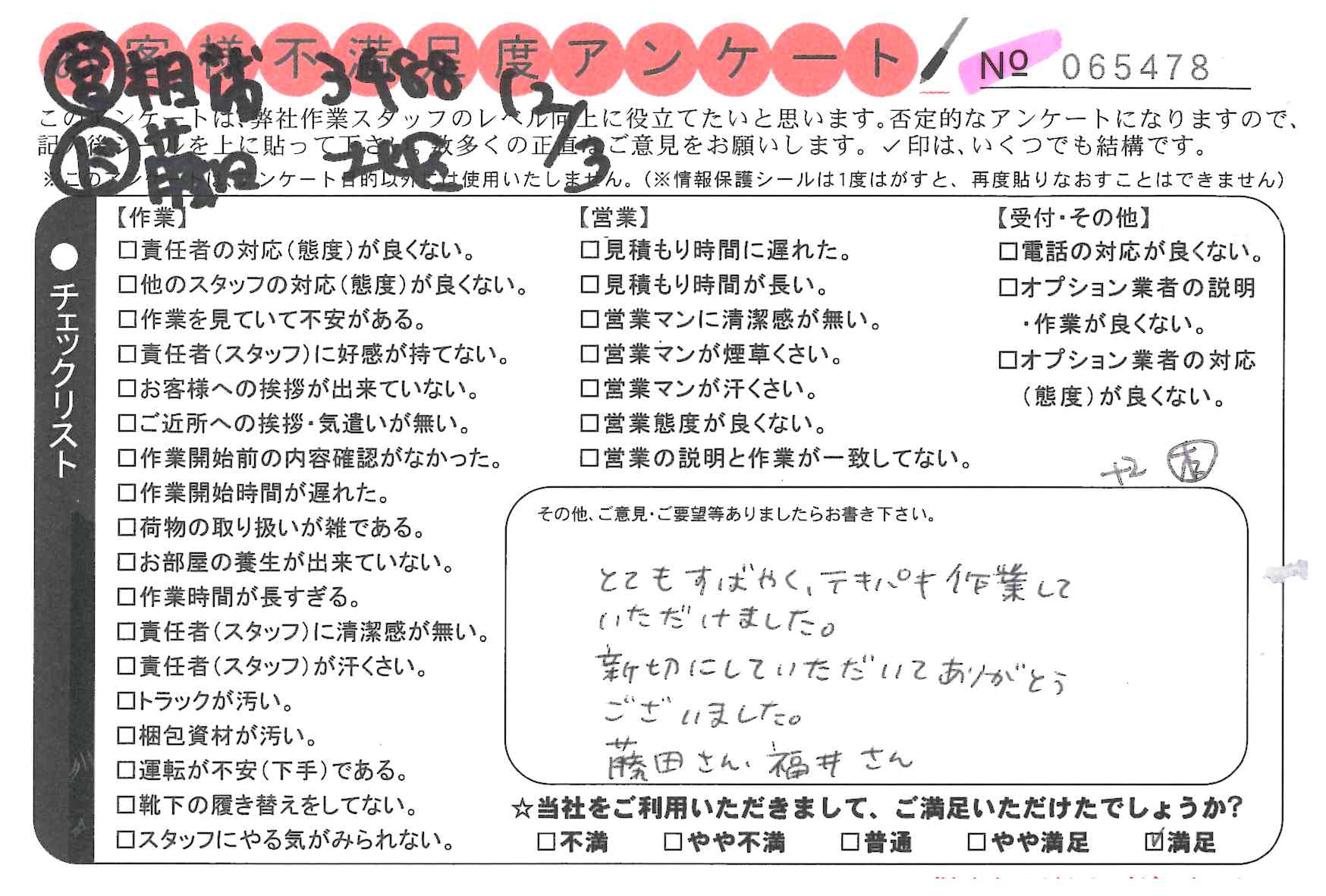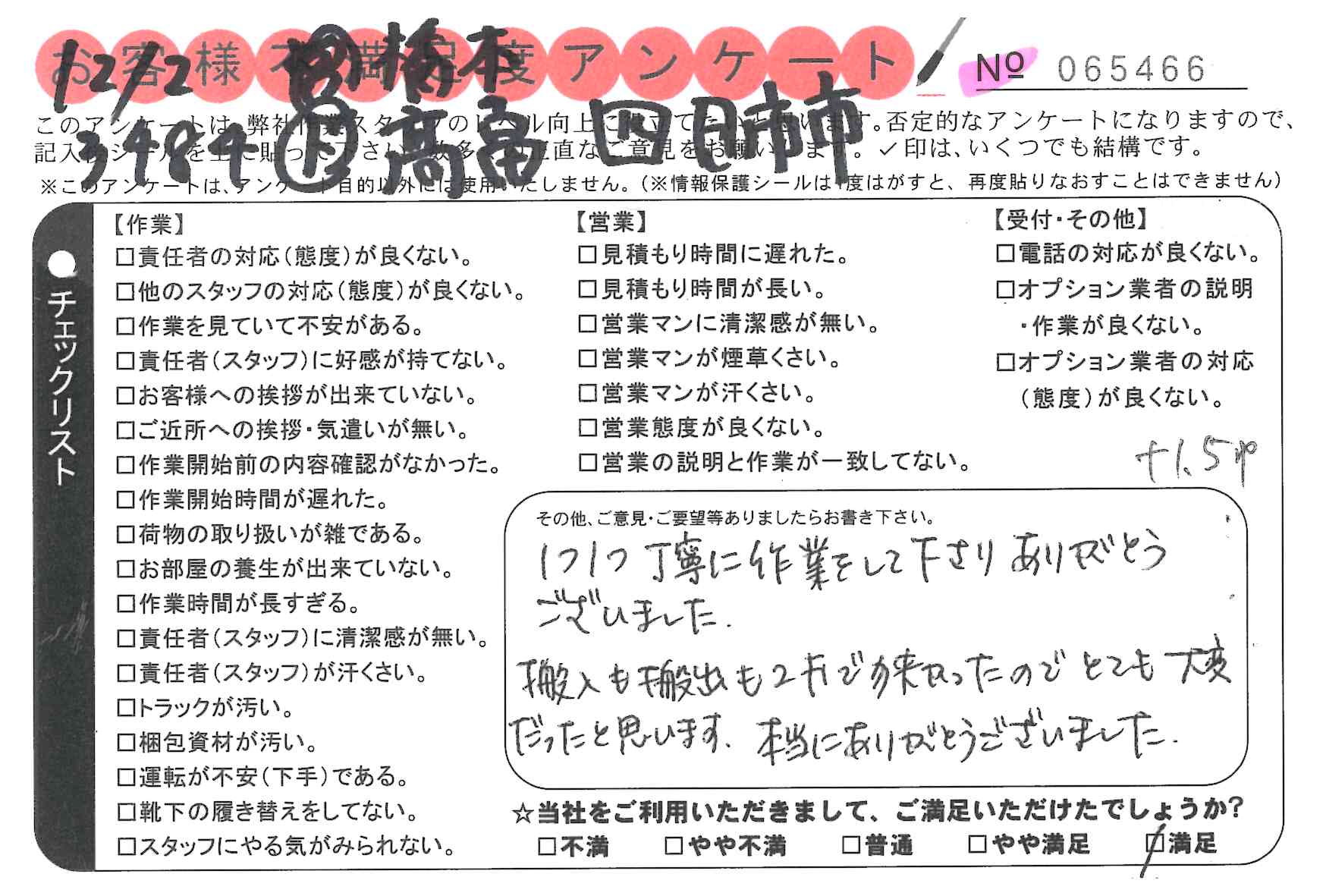 引越一番でお引越しをしていただいたお客様のうち、コメントいただいたアンケートを全て掲載しています。
