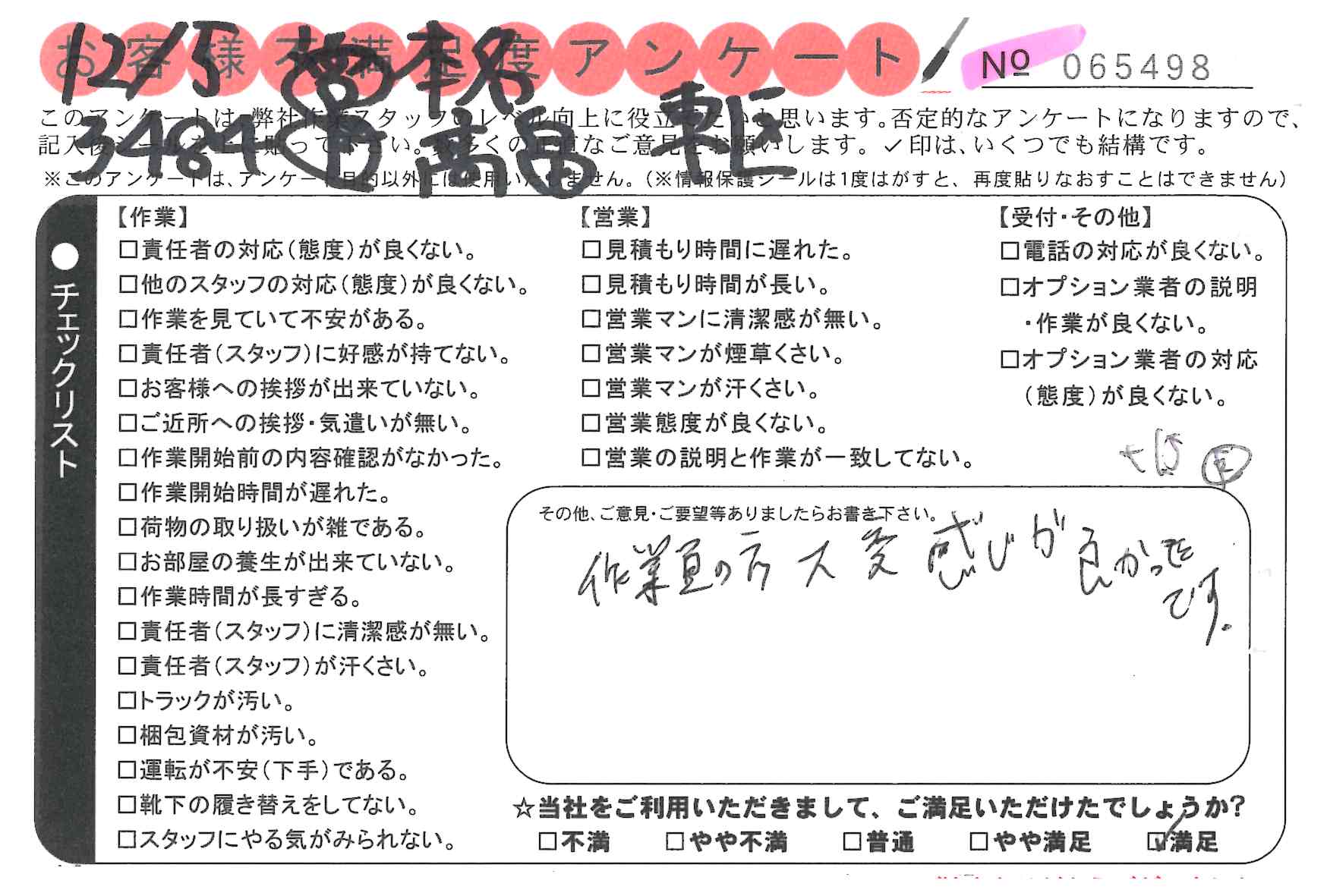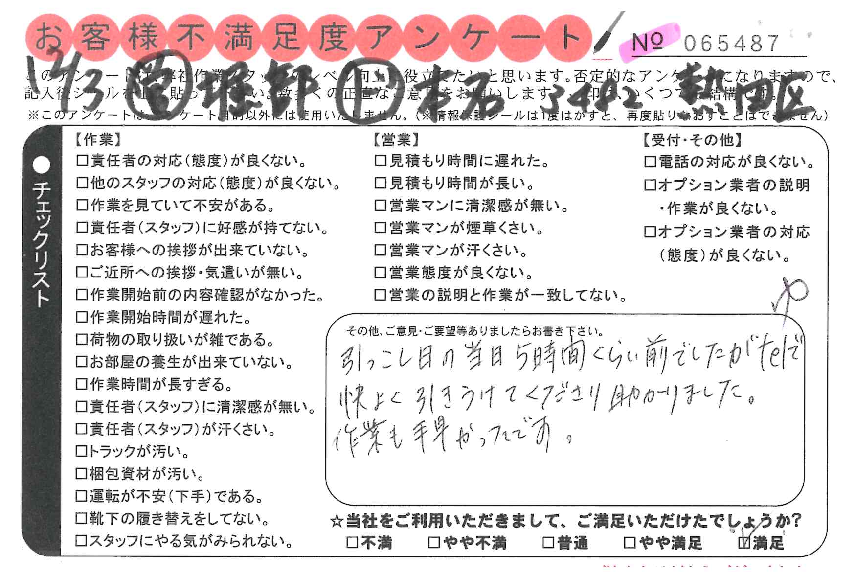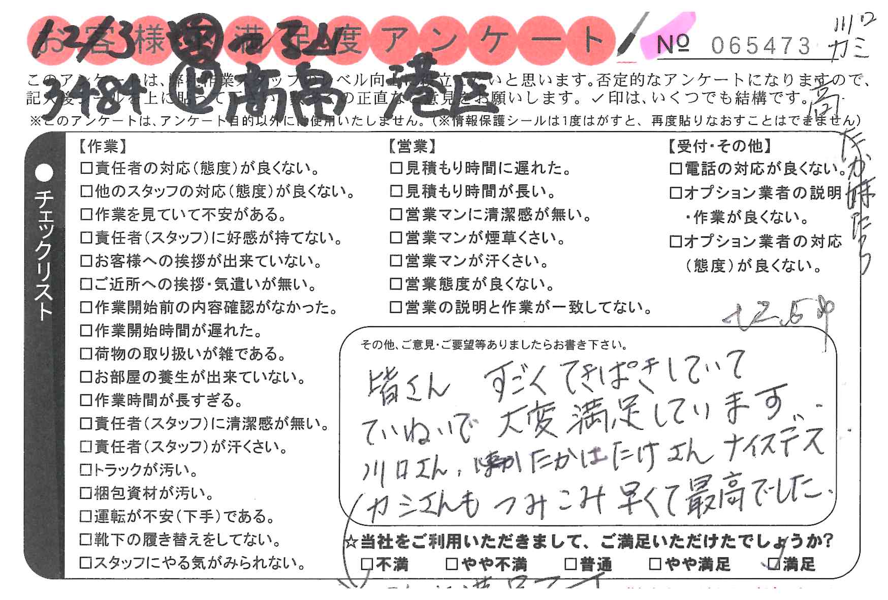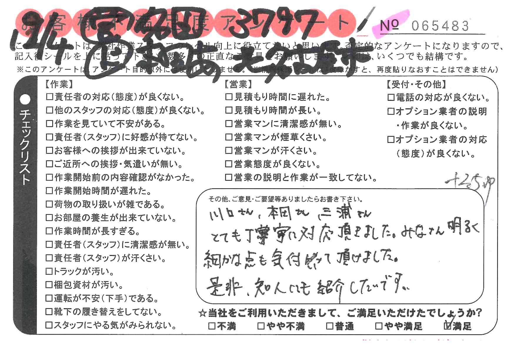 引越一番でお引越しをしていただいたお客様のうち、コメントいただいたアンケートを全て掲載しています。