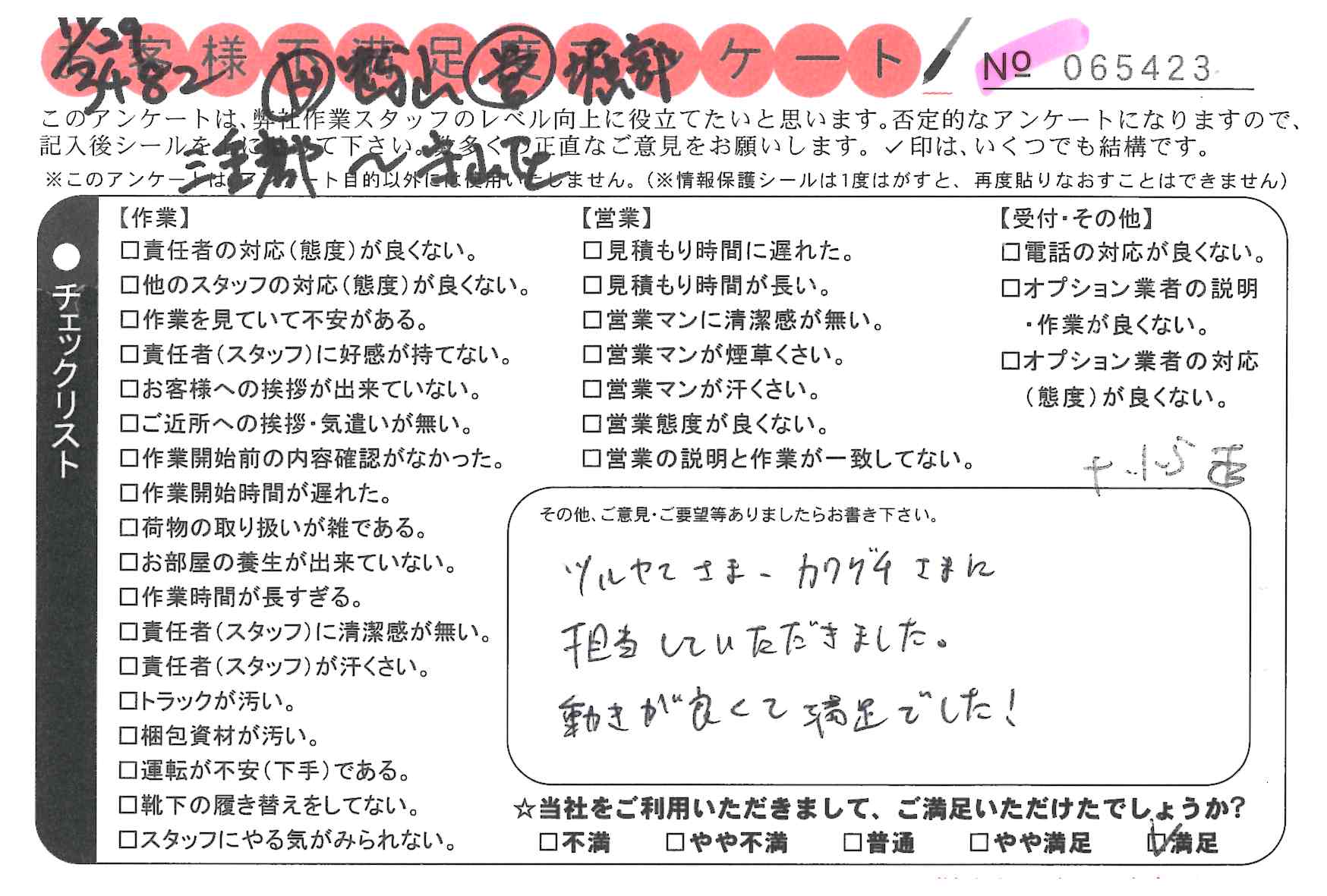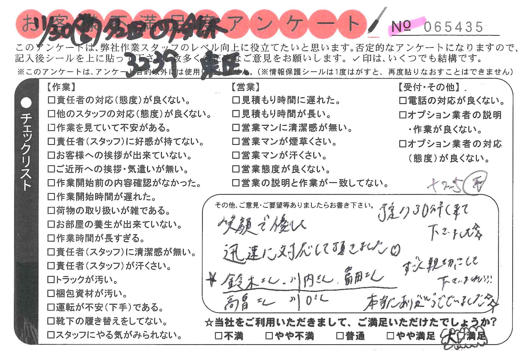 引越一番でお引越しをしていただいたお客様のうち、コメントいただいたアンケートを全て掲載しています。