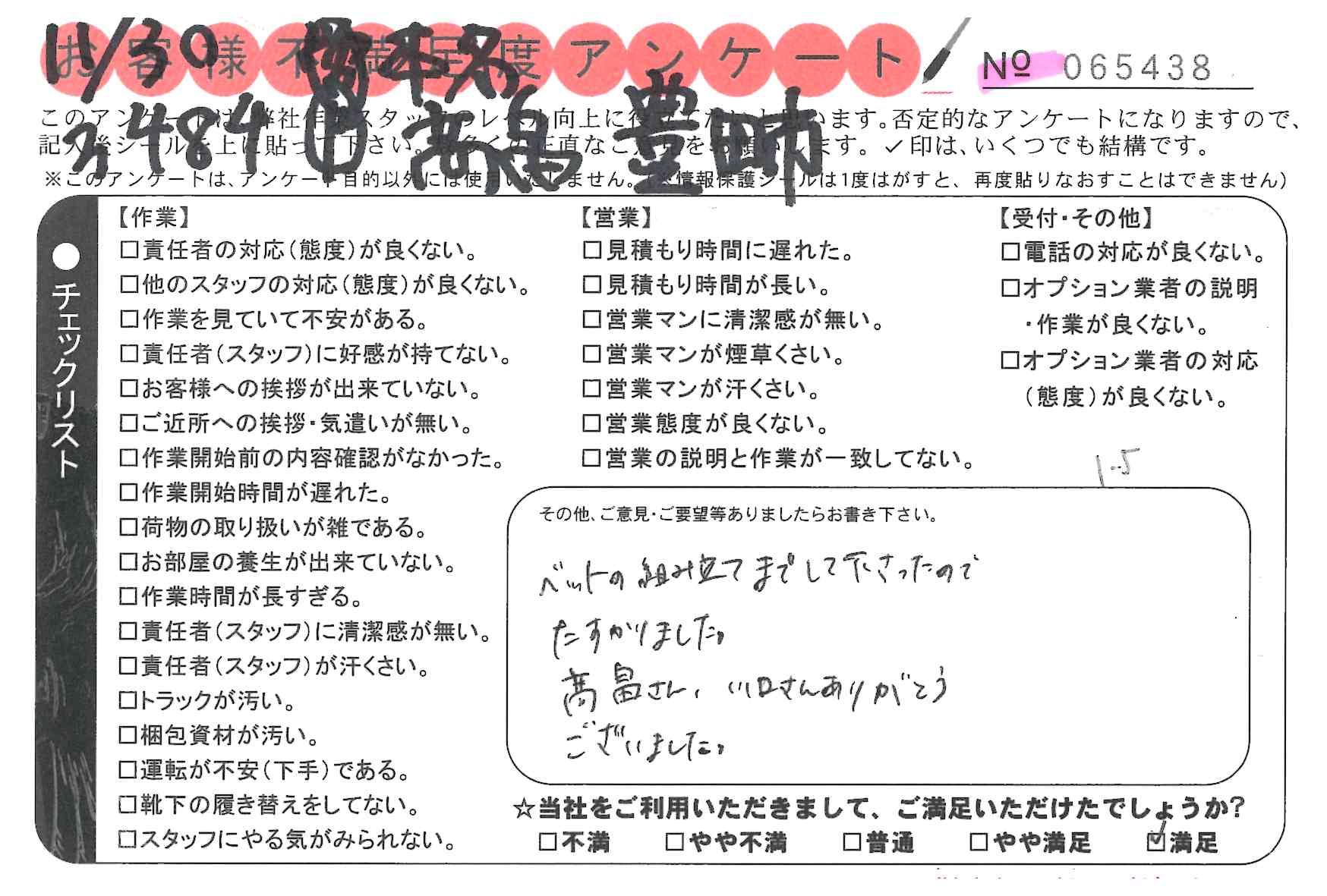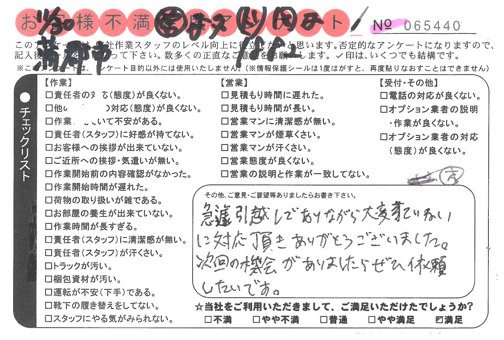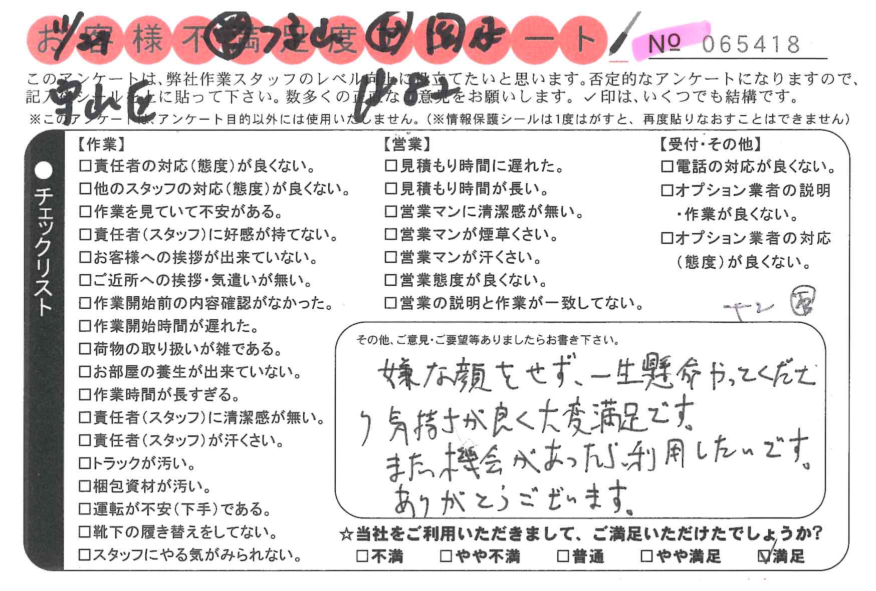 * 嫌な顔をせず、一生懸命やってくださり気持ちが良く