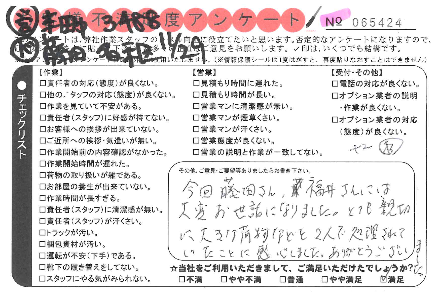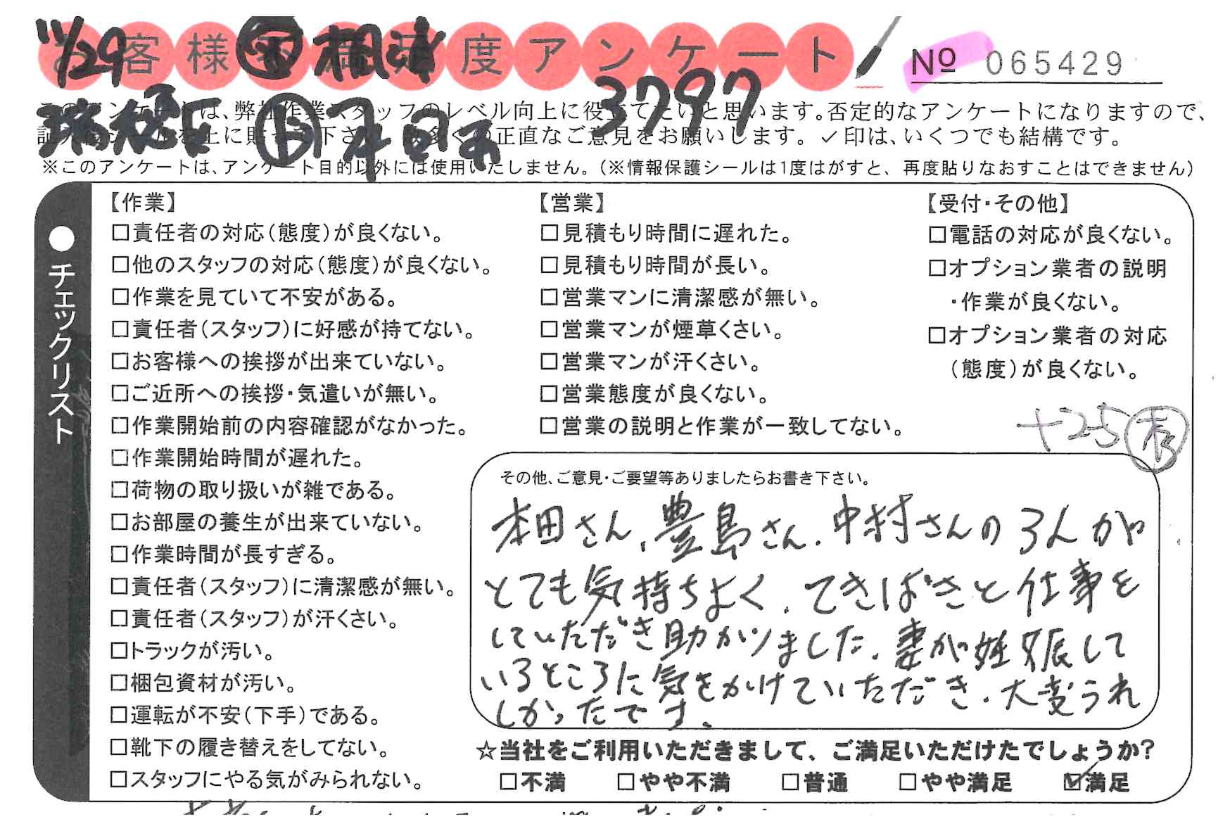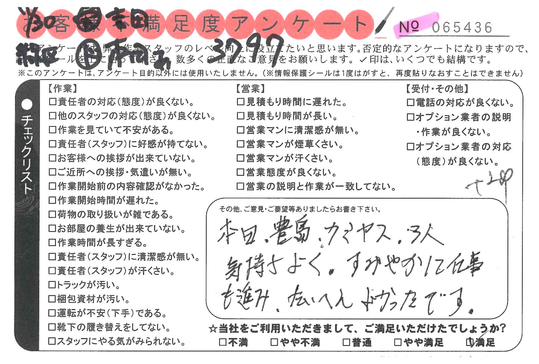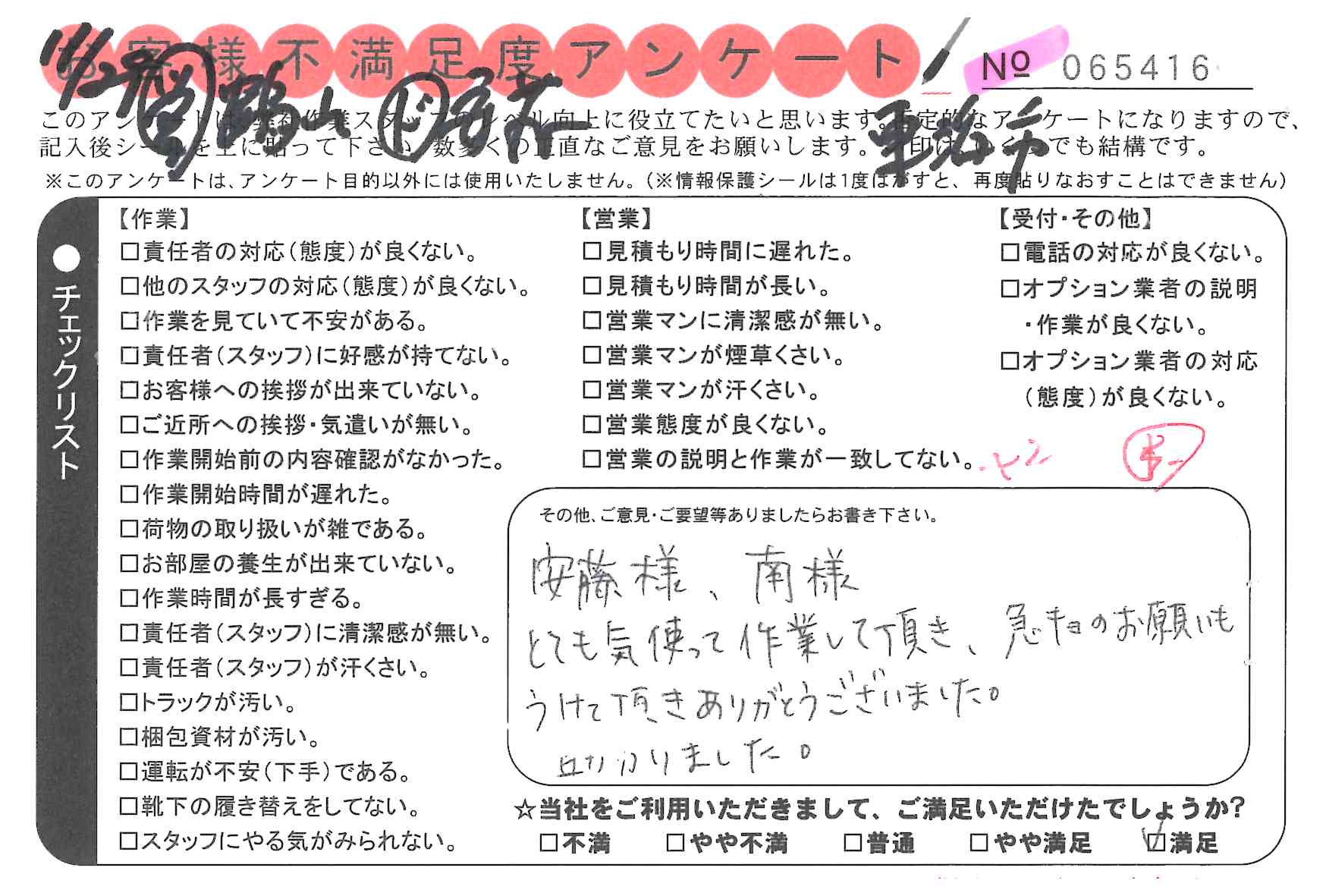* 嫌な顔をせず、一生懸命やってくださり気持ちが良く