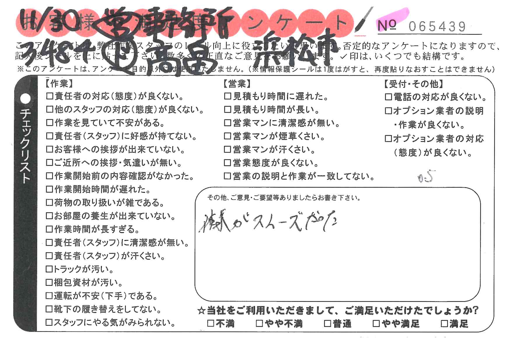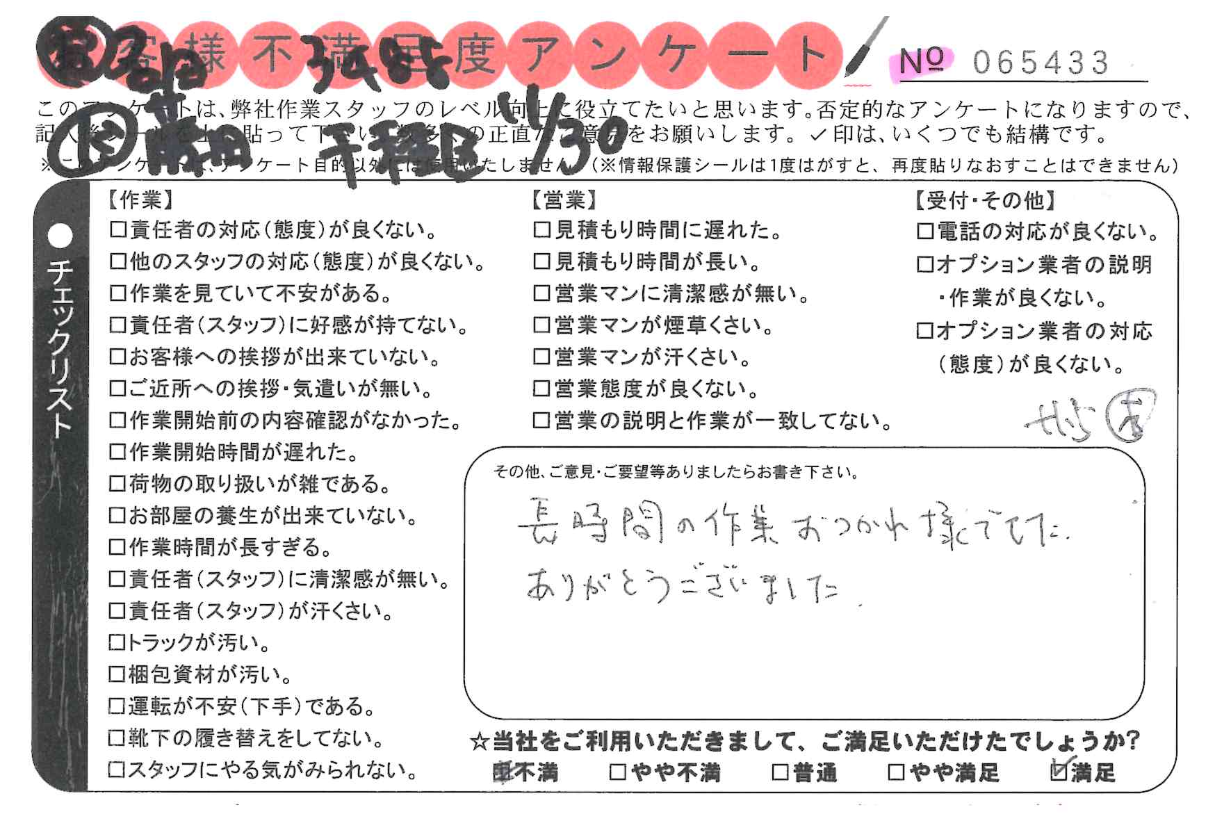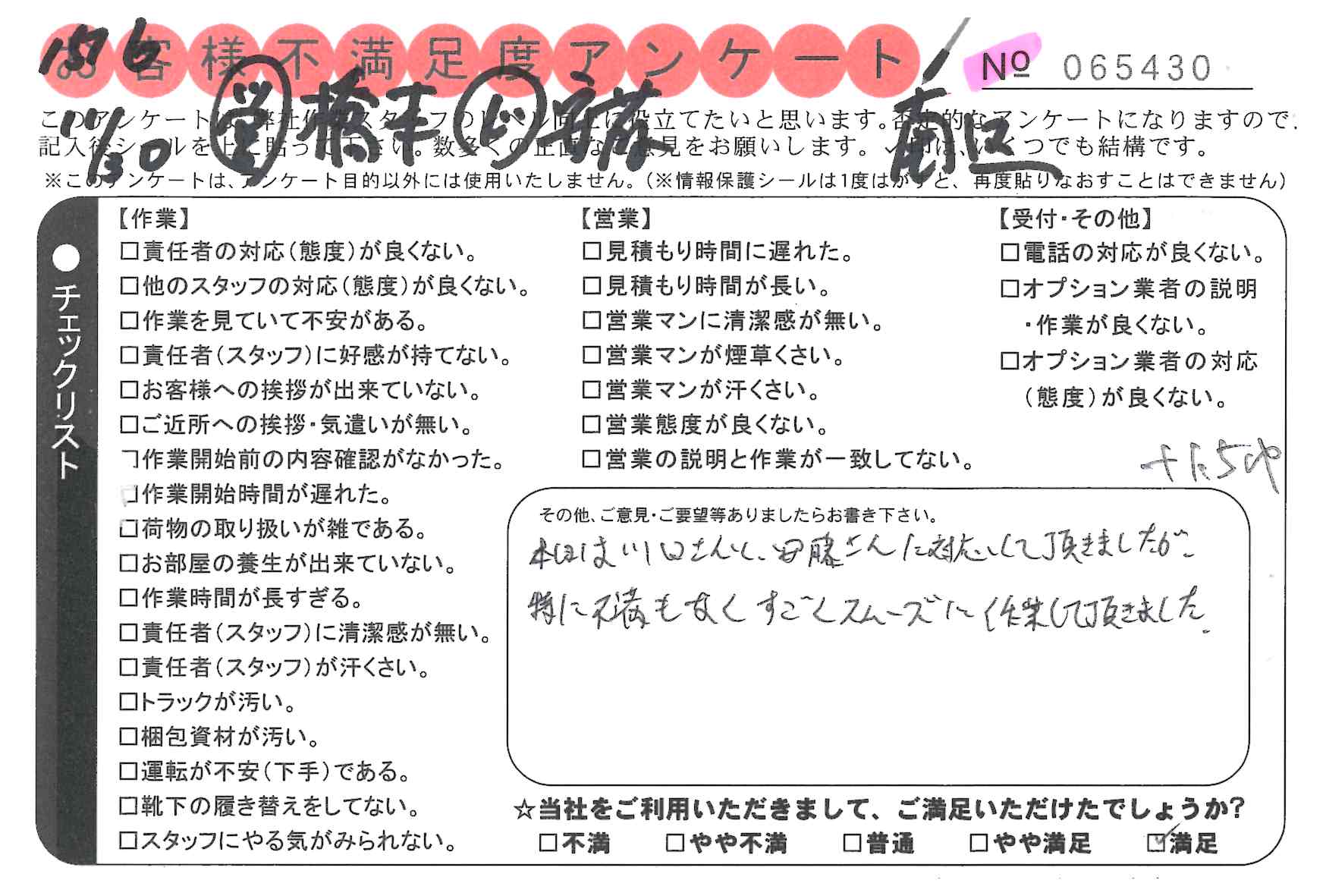 不満足度アンケートを行っている引越一番では、不評なアンケートも、好評なアンケートも全て掲載しています。