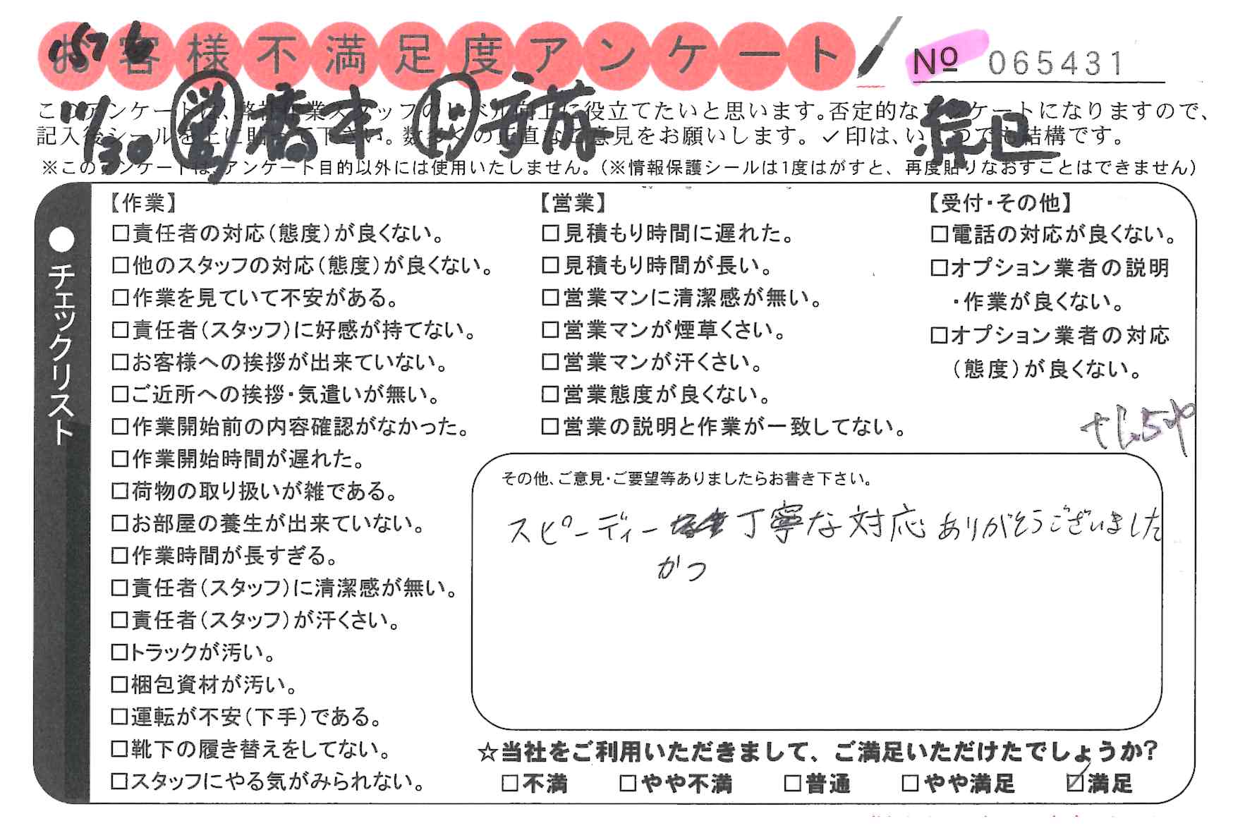 * スピーディーかつ丁寧な対応ありがとうございました