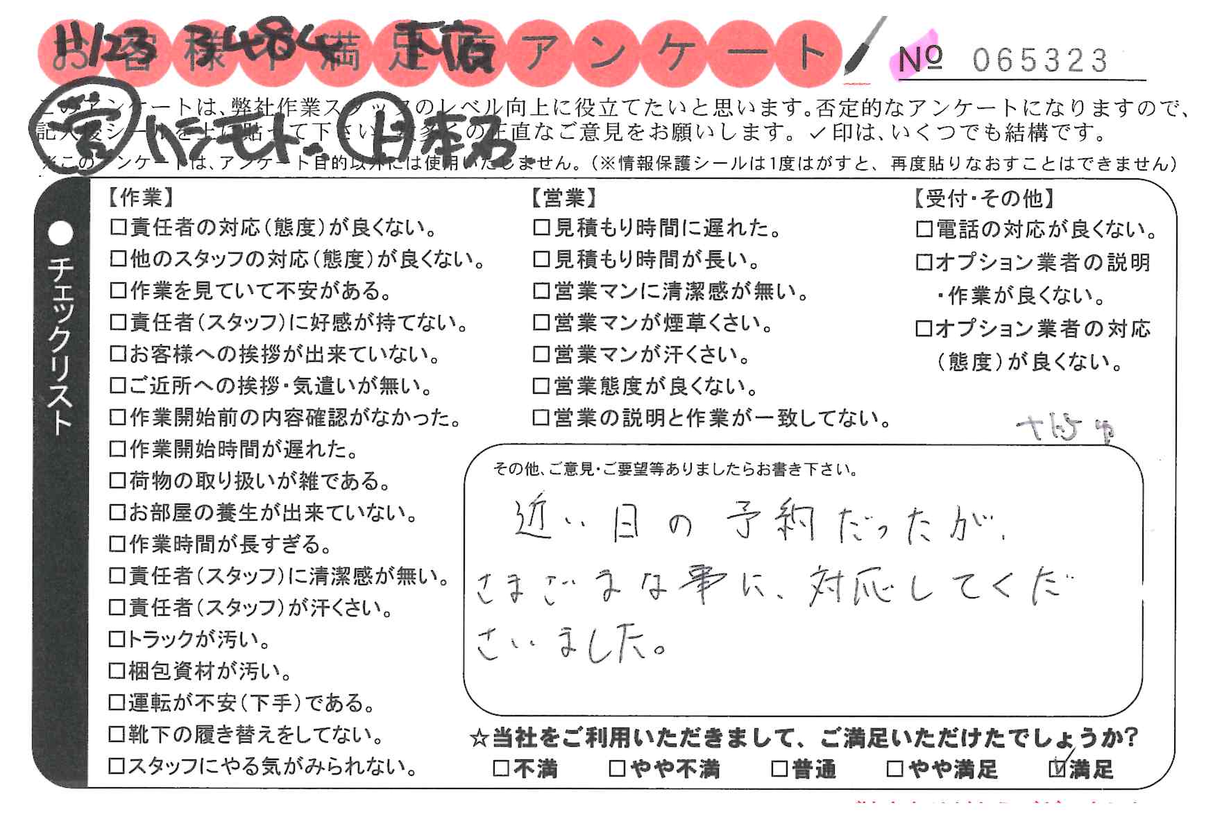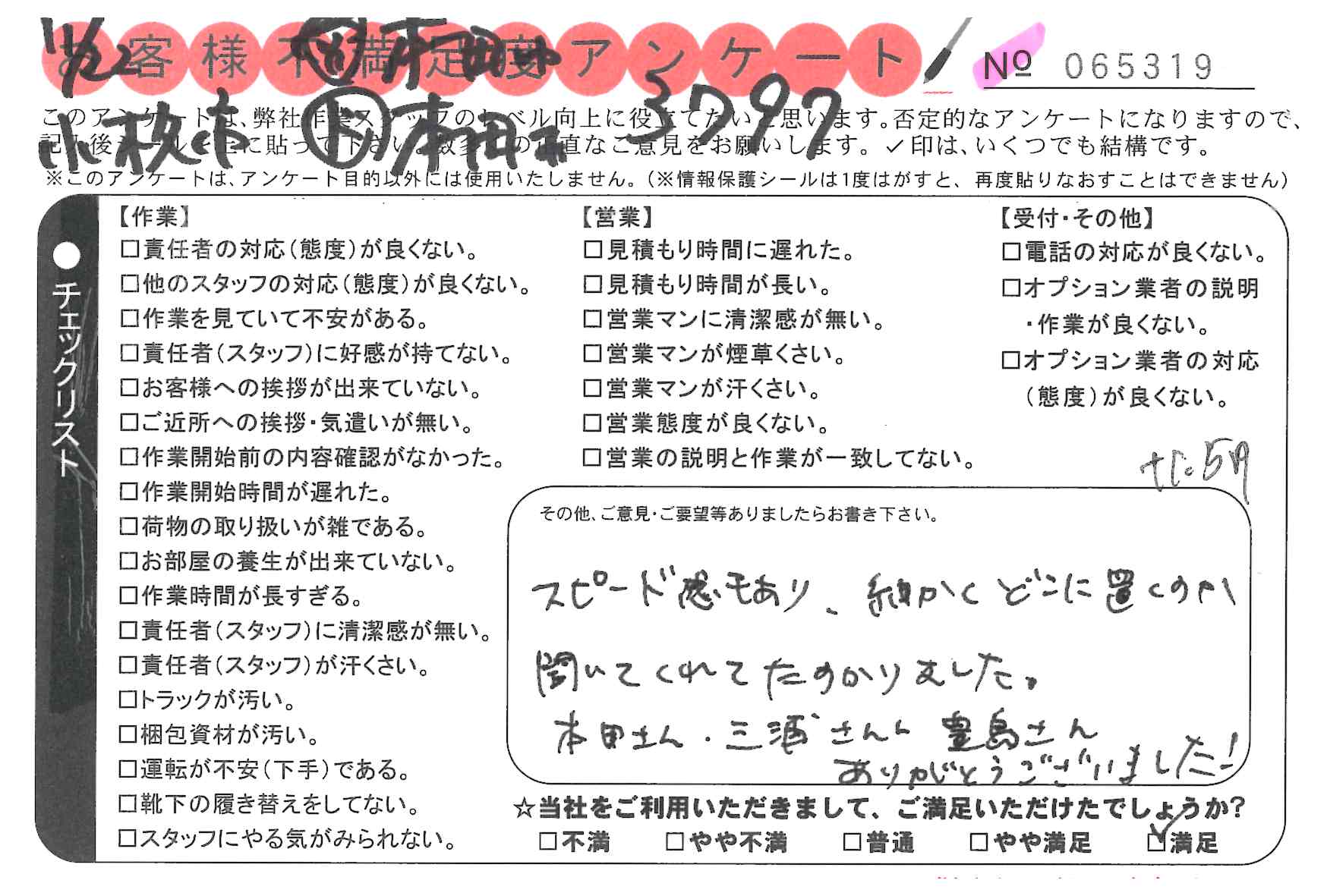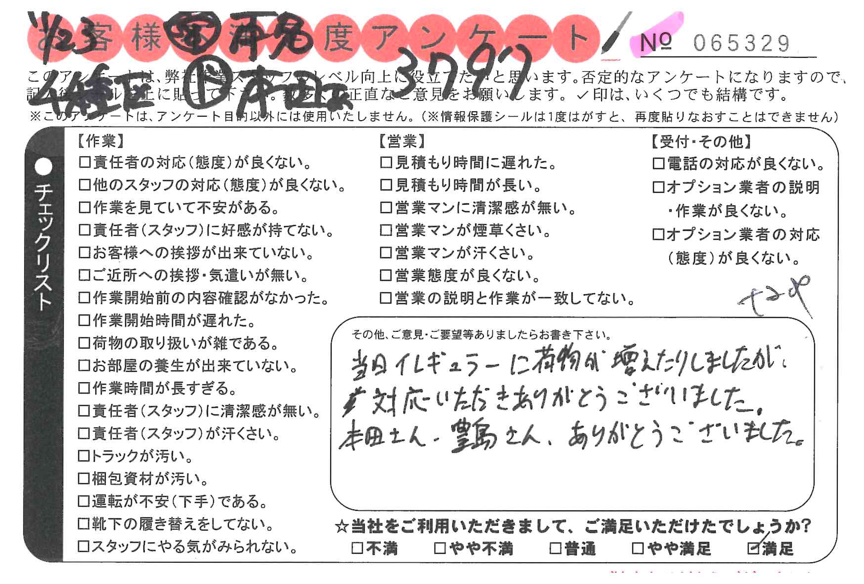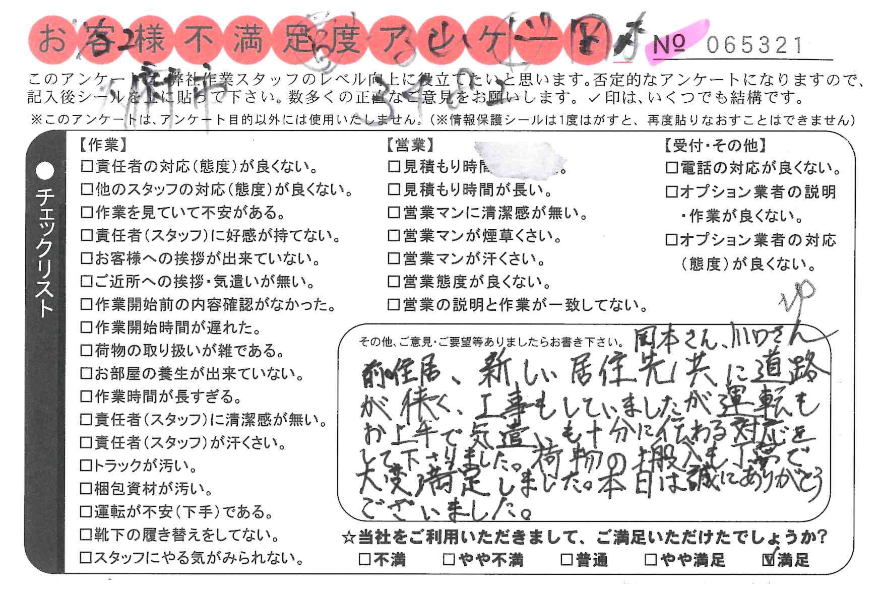 * この度は引越対応していただきありがとうございました。