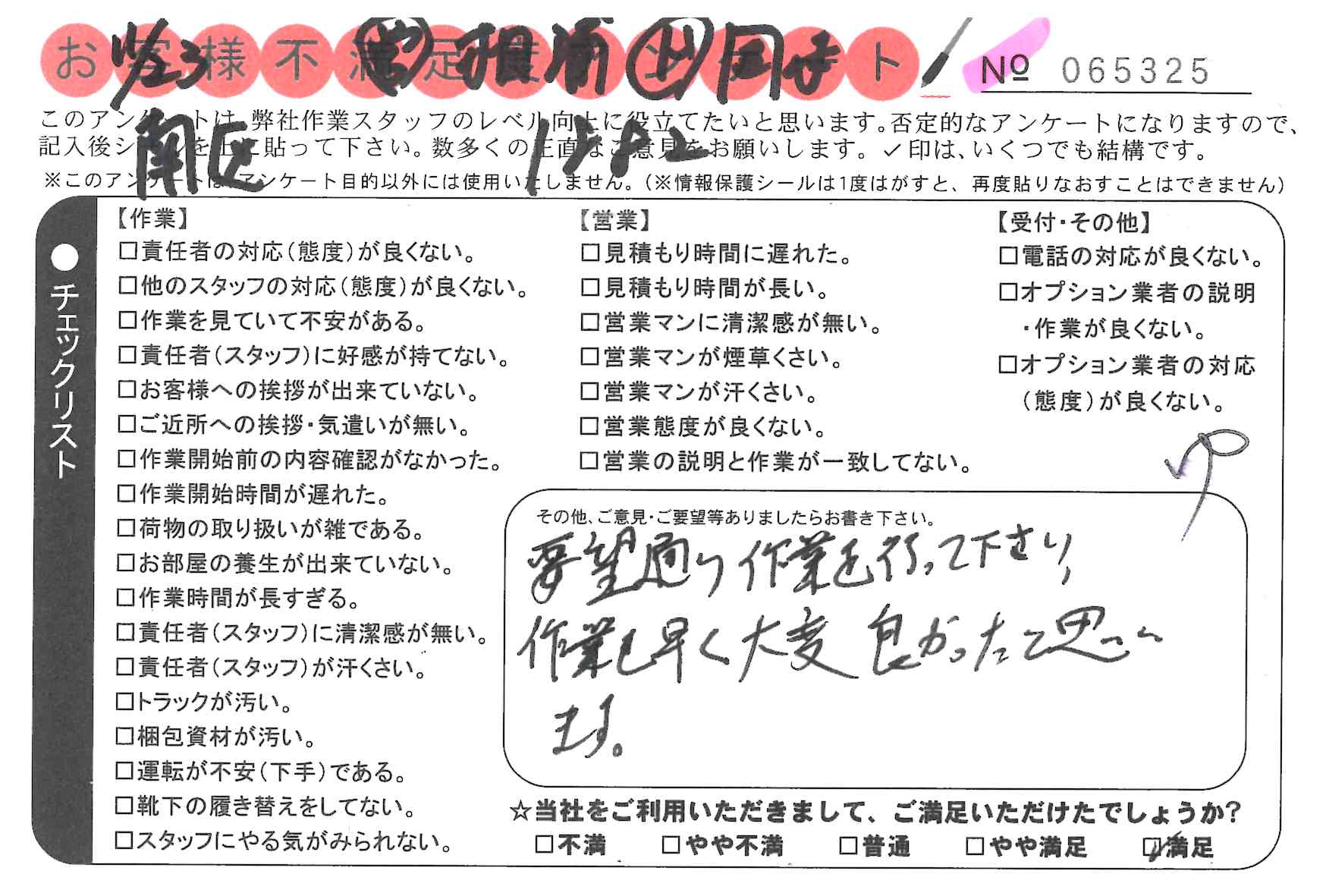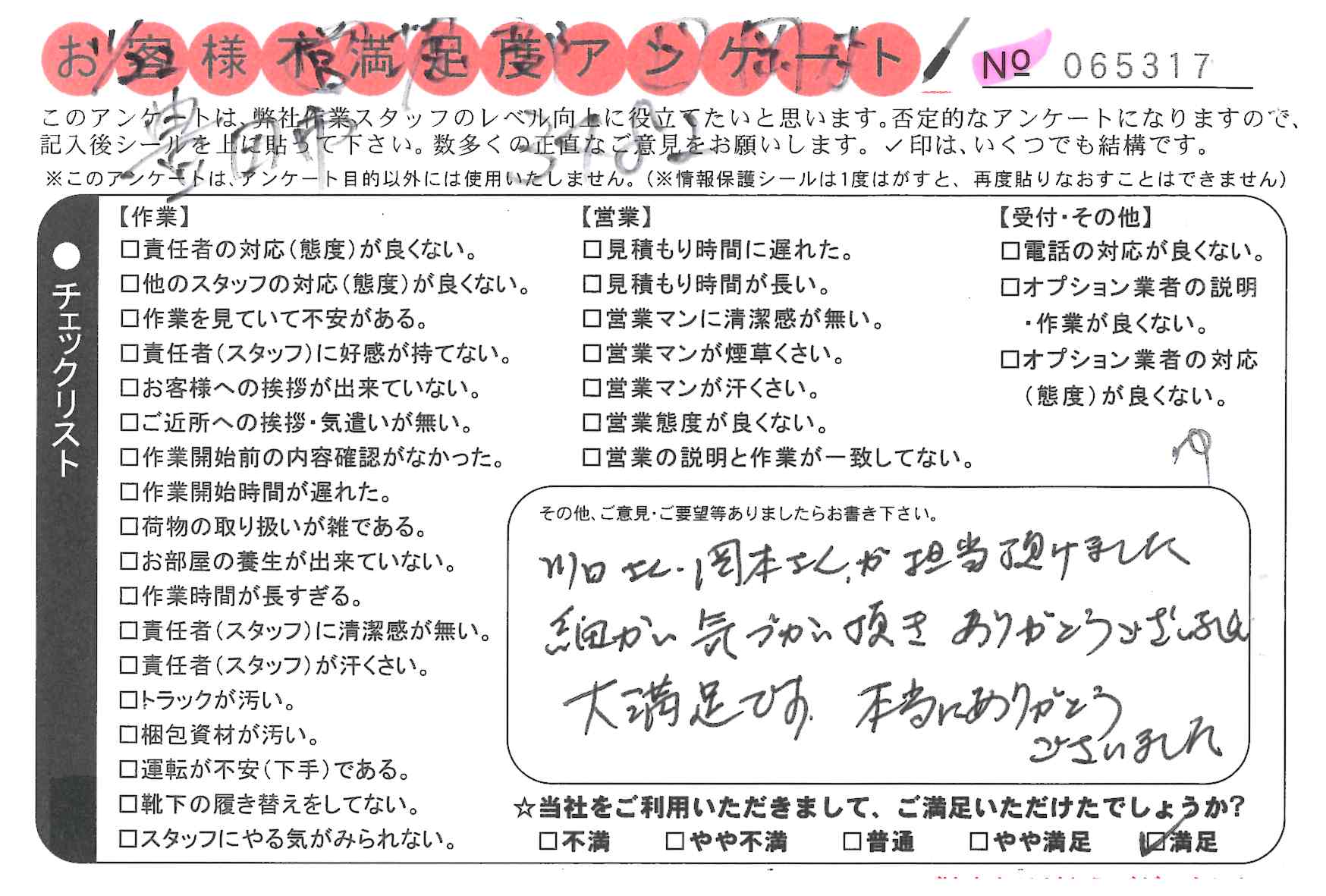 引越一番でお引越しをしていただいたお客様のうち、コメントいただいたアンケートを全て掲載しています。