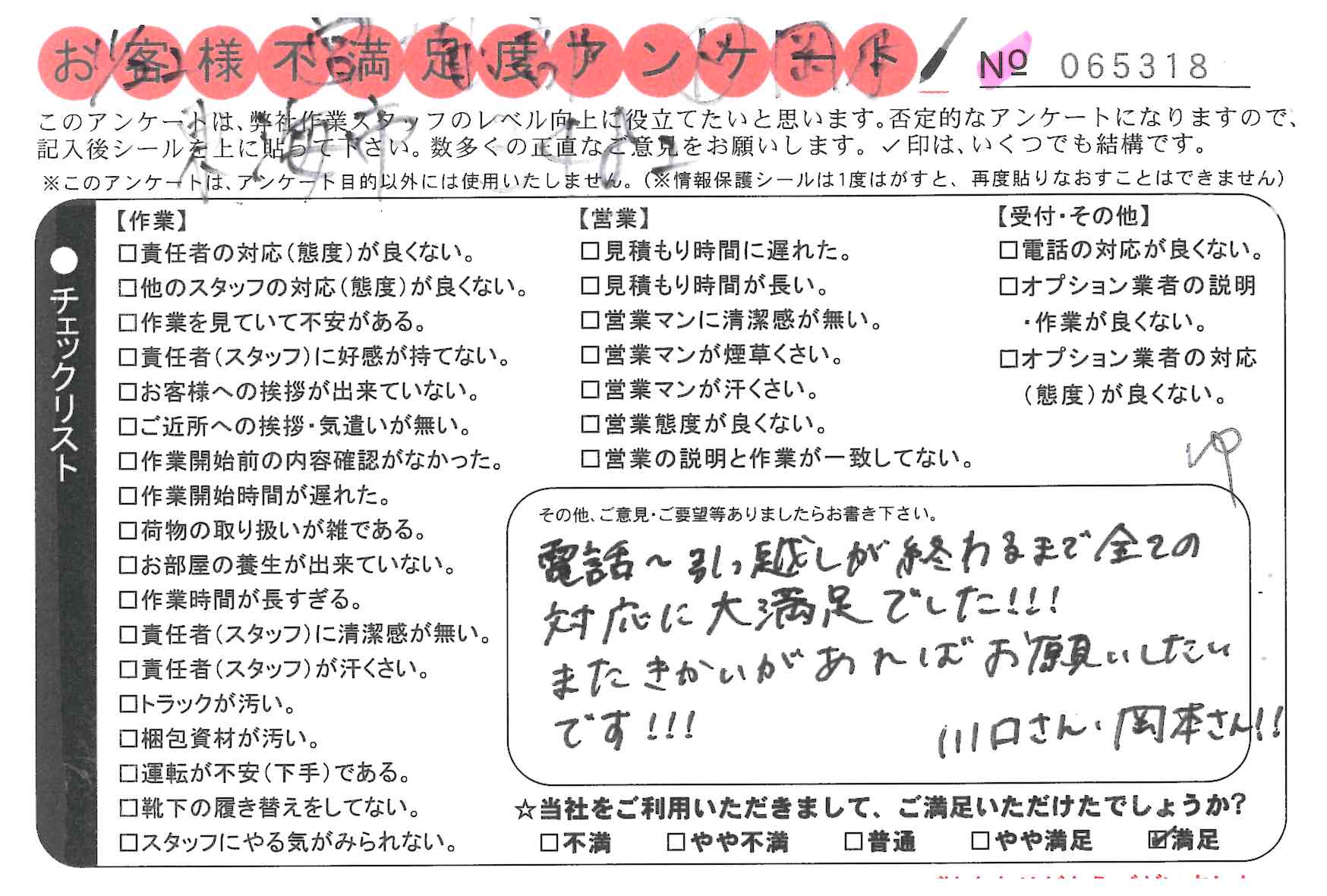 大変満足してます。川口さん、安藤さん共に動きがよく