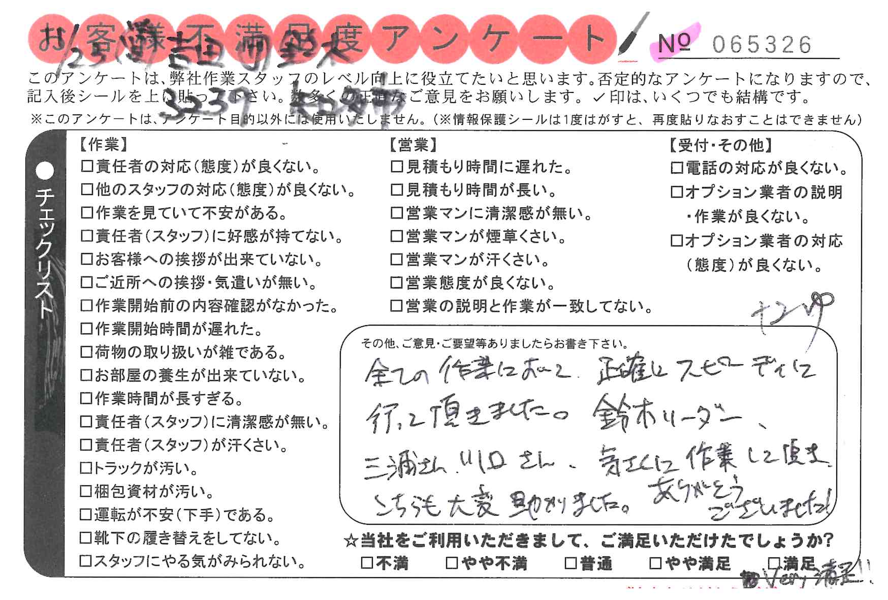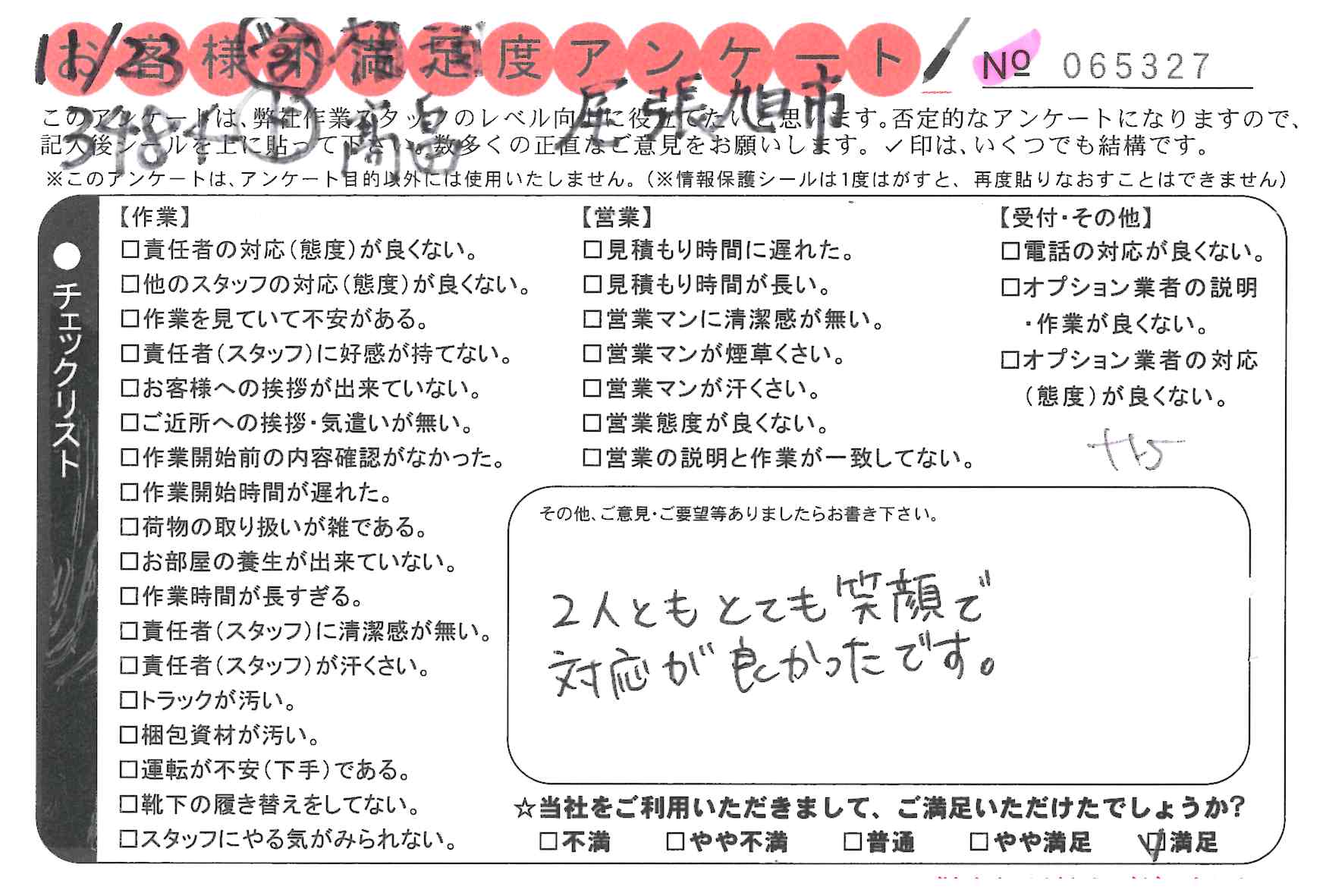 * 長い距離の引っ越しでしたが快良く作業して頂き