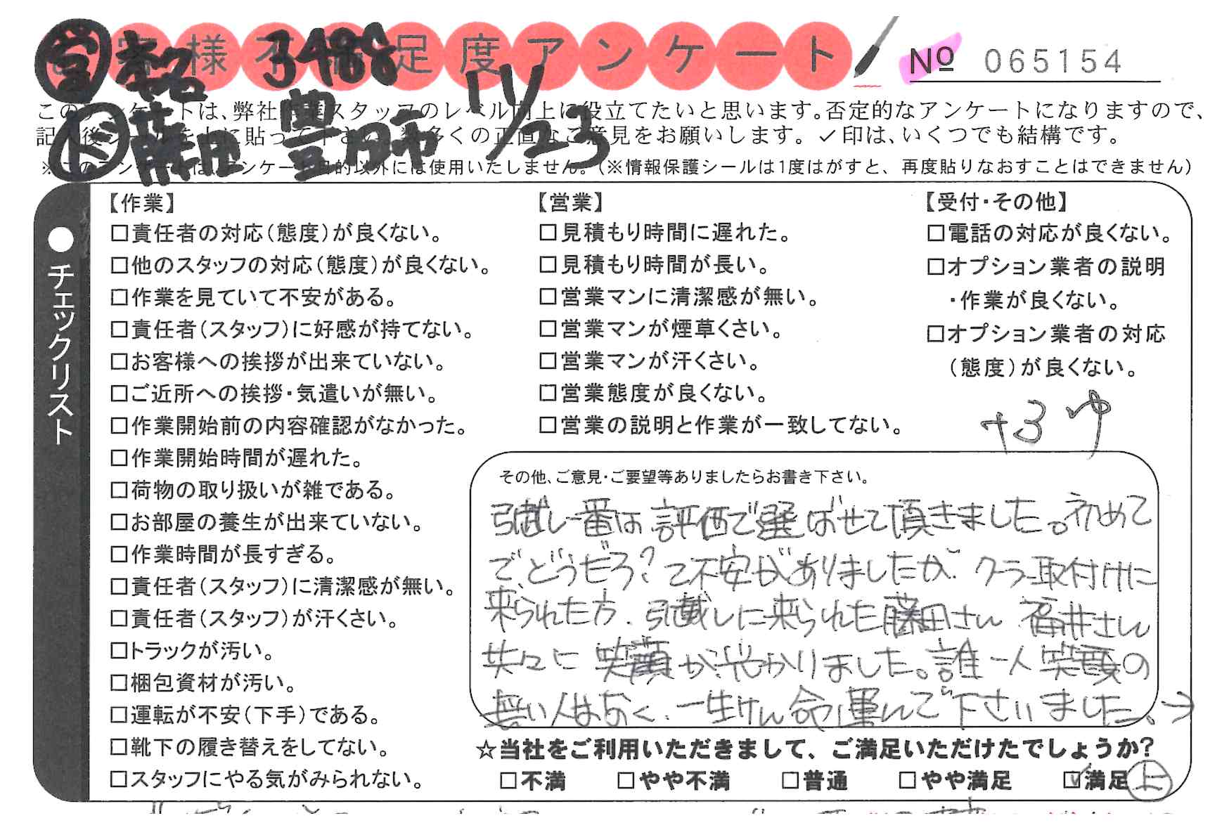不満足度アンケートを行っている引越一番では、不評なアンケートも、好評なアンケートも全て掲載しています。
