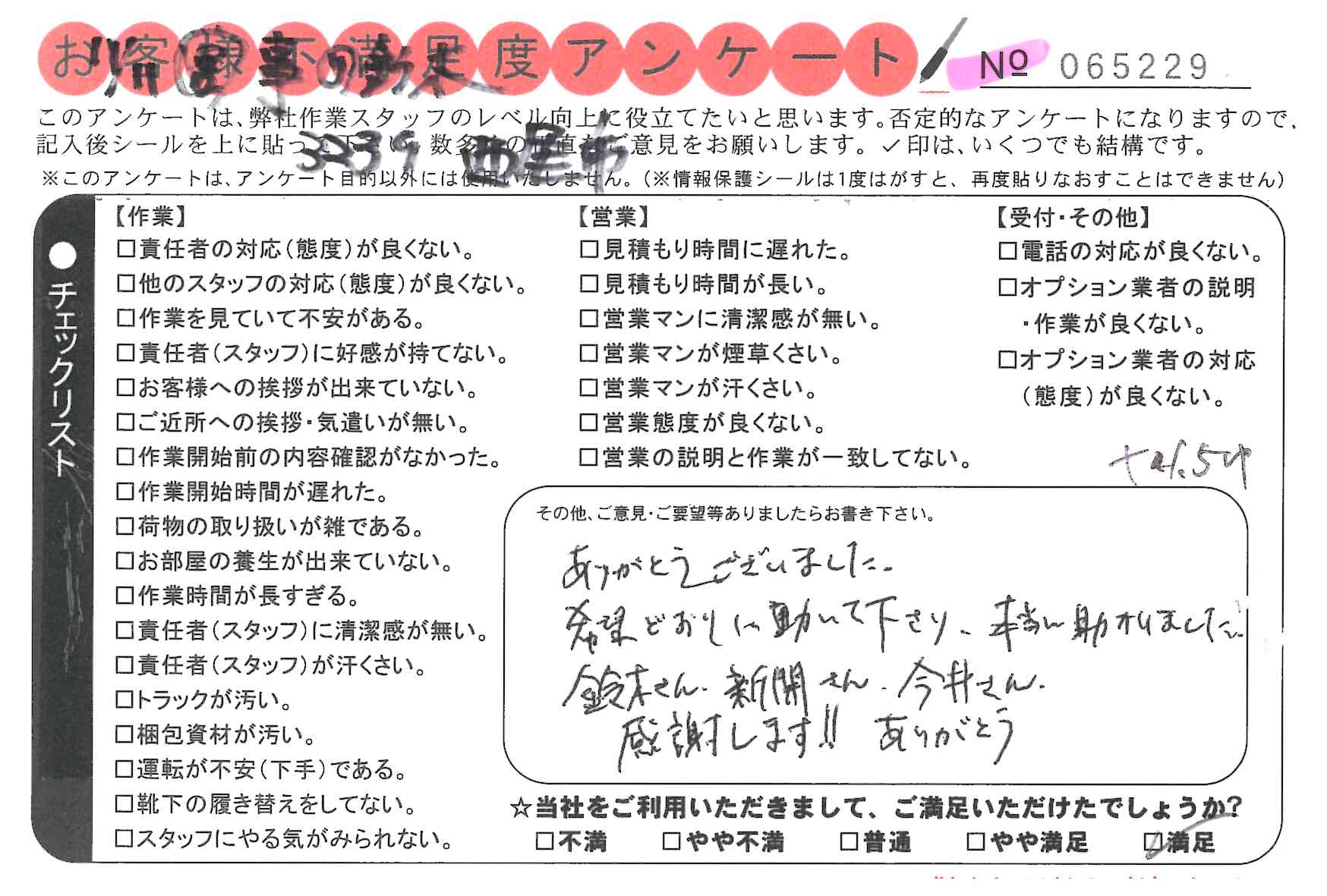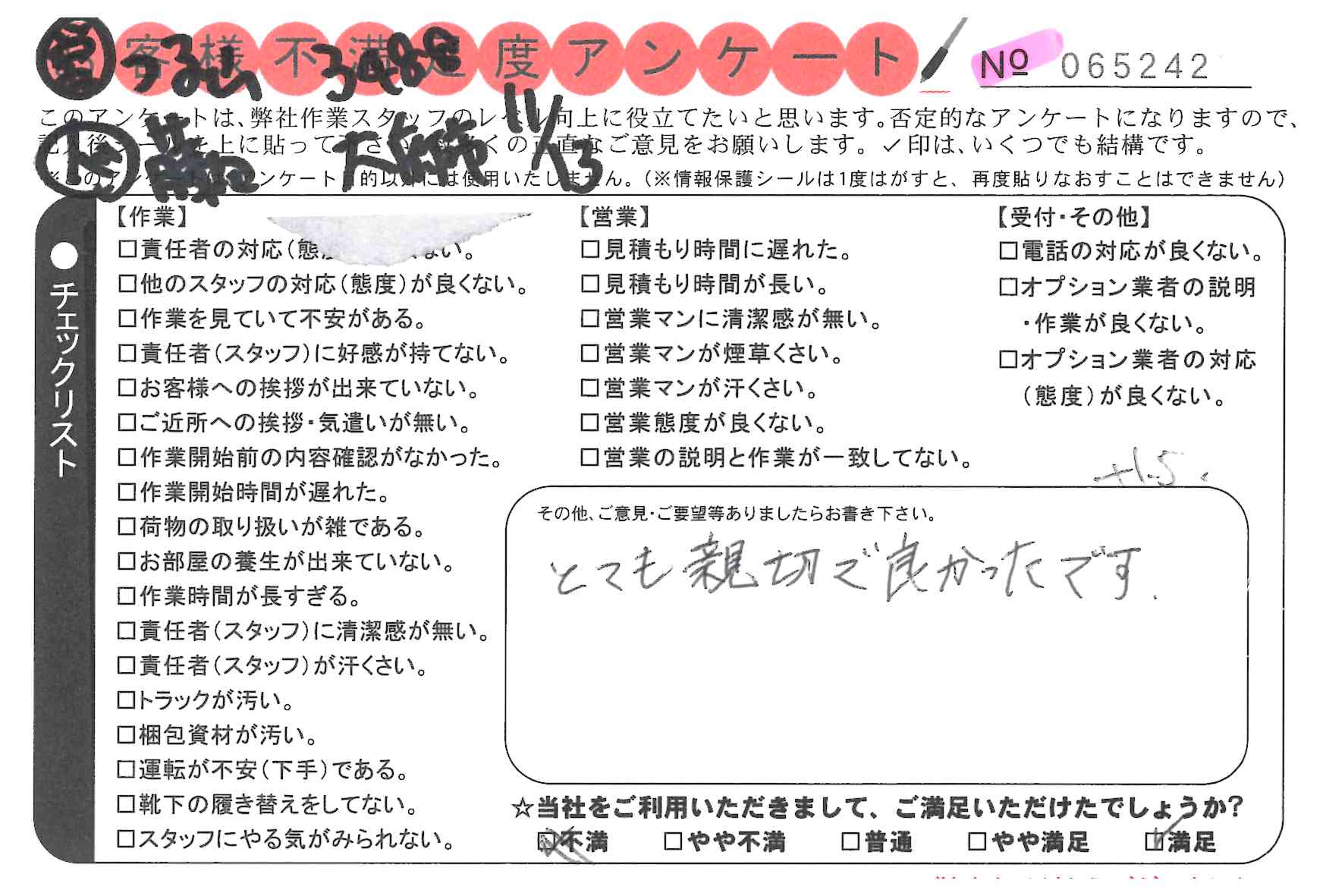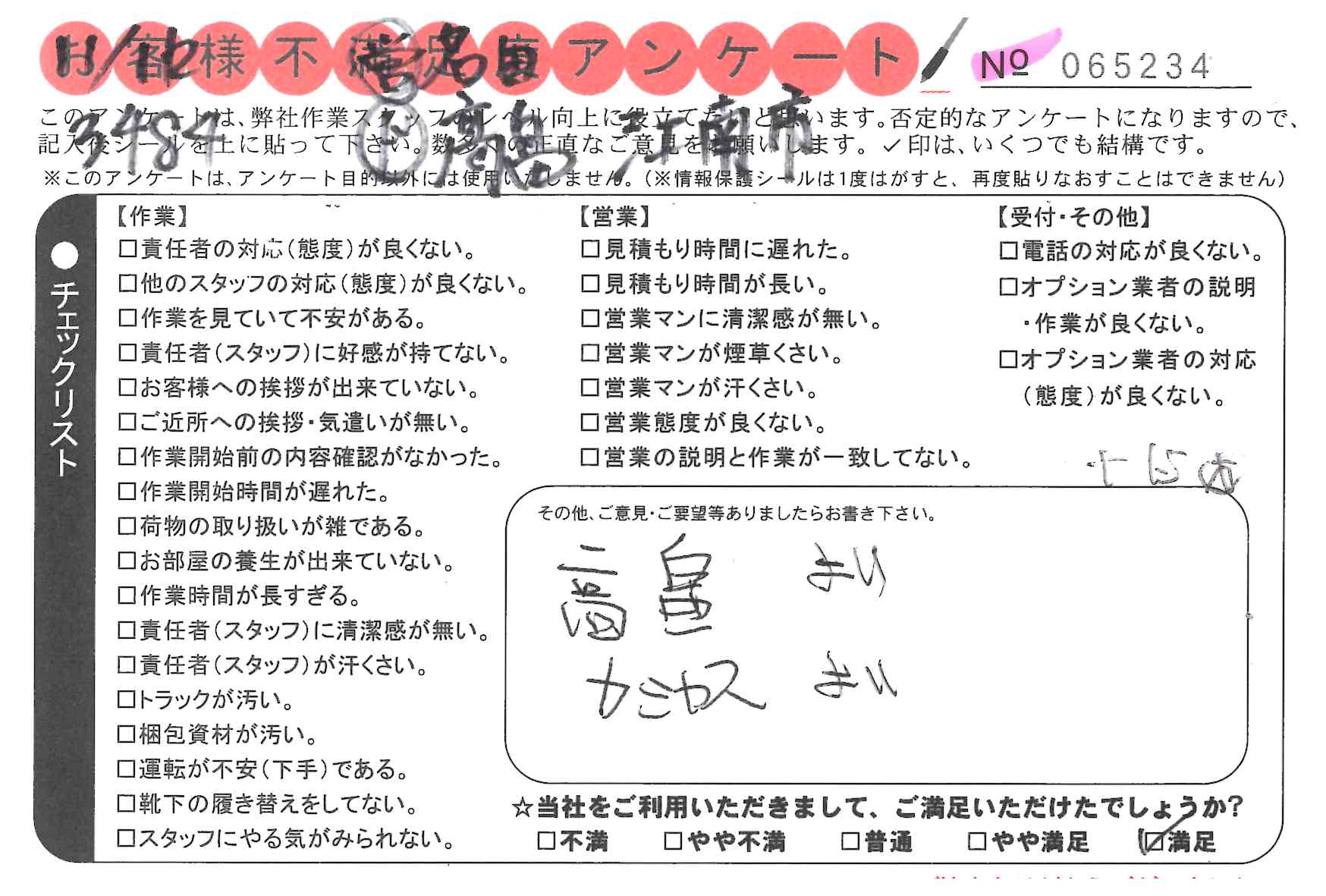 引越一番でお引越しをしていただいたお客様のうち、コメントいただいたアンケートを全て掲載しています。