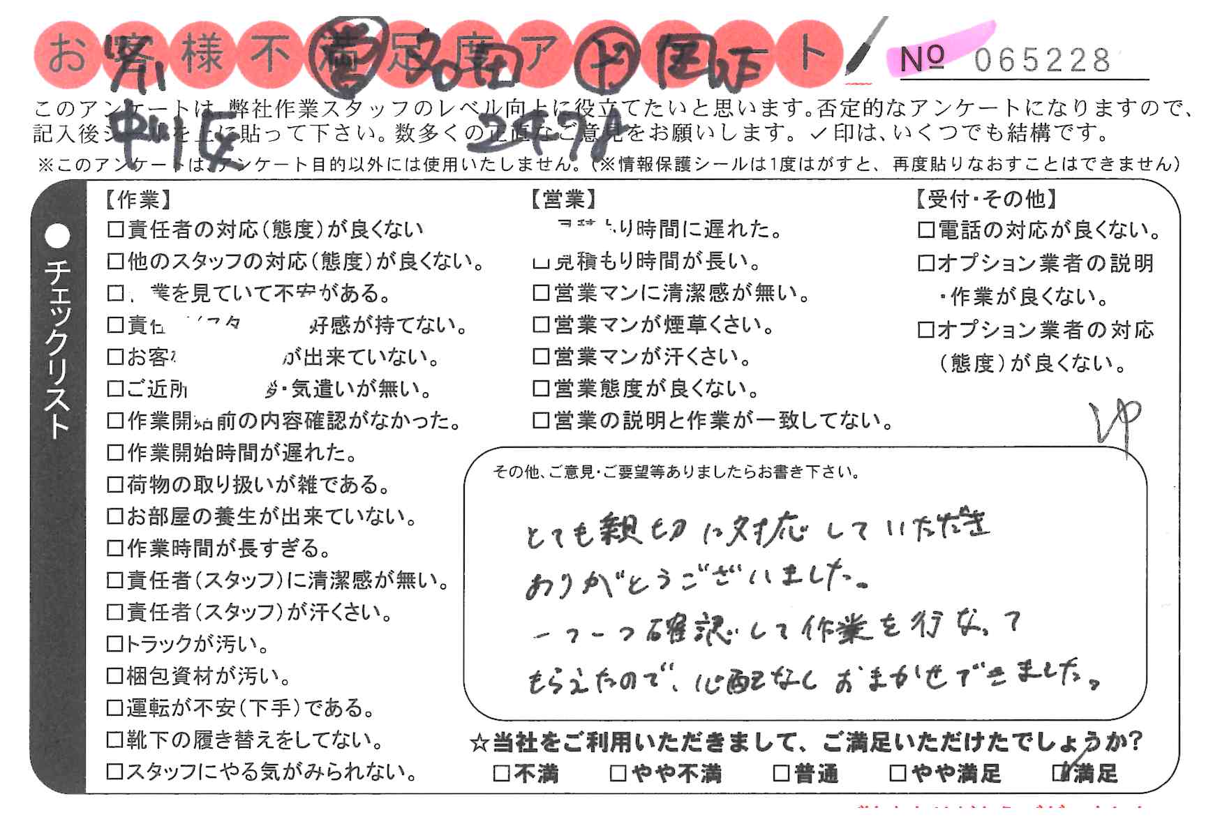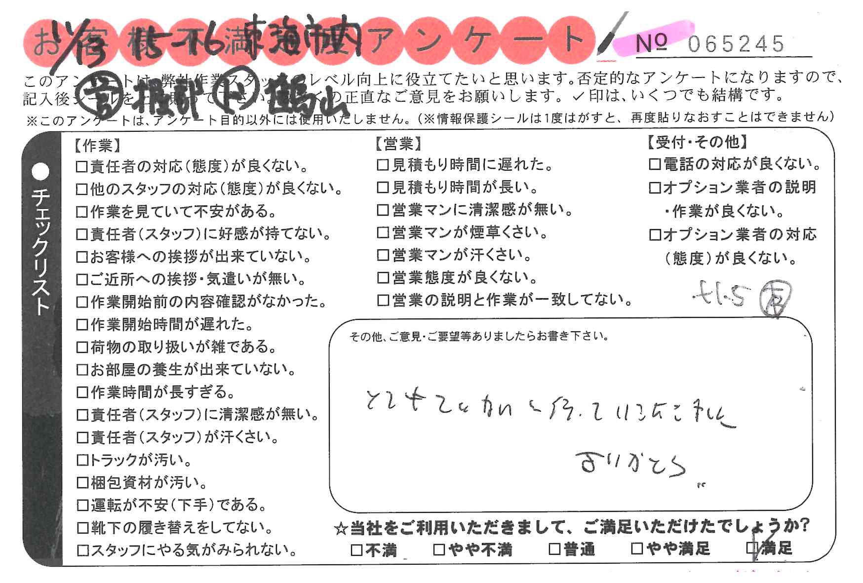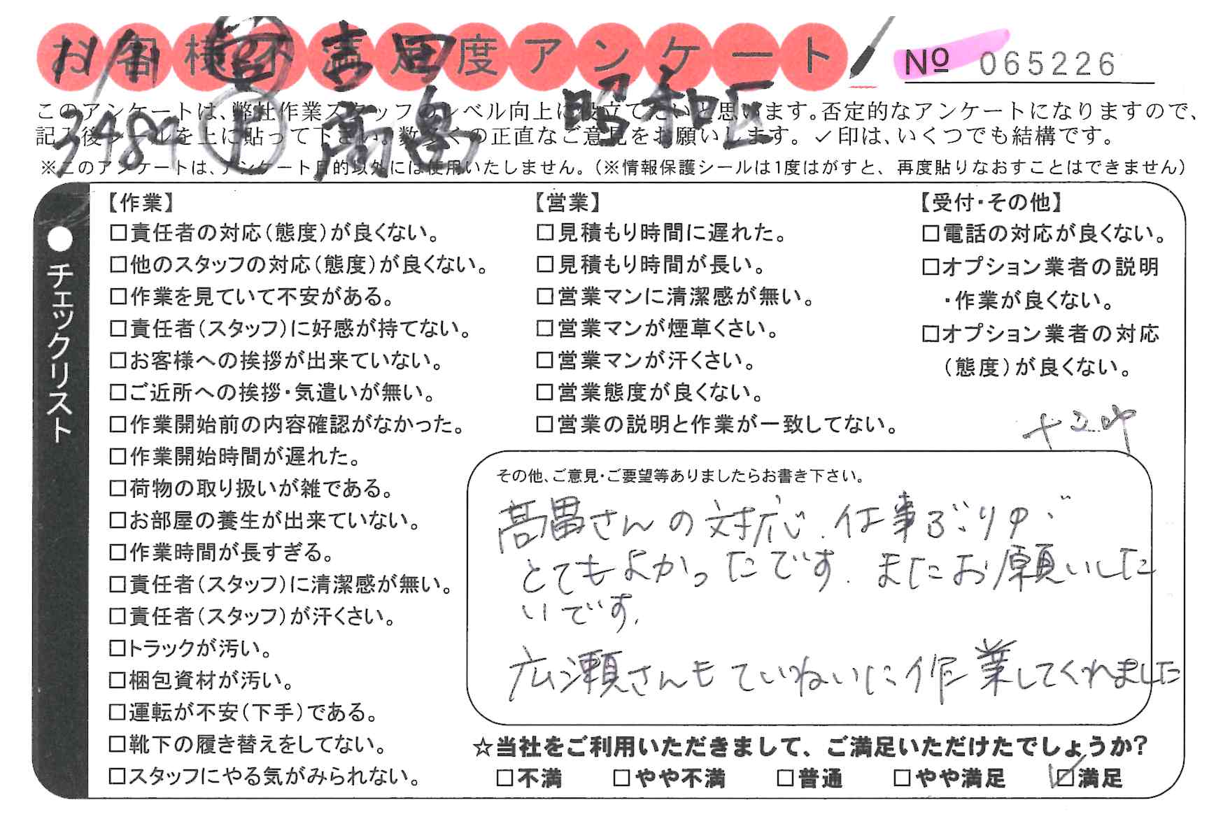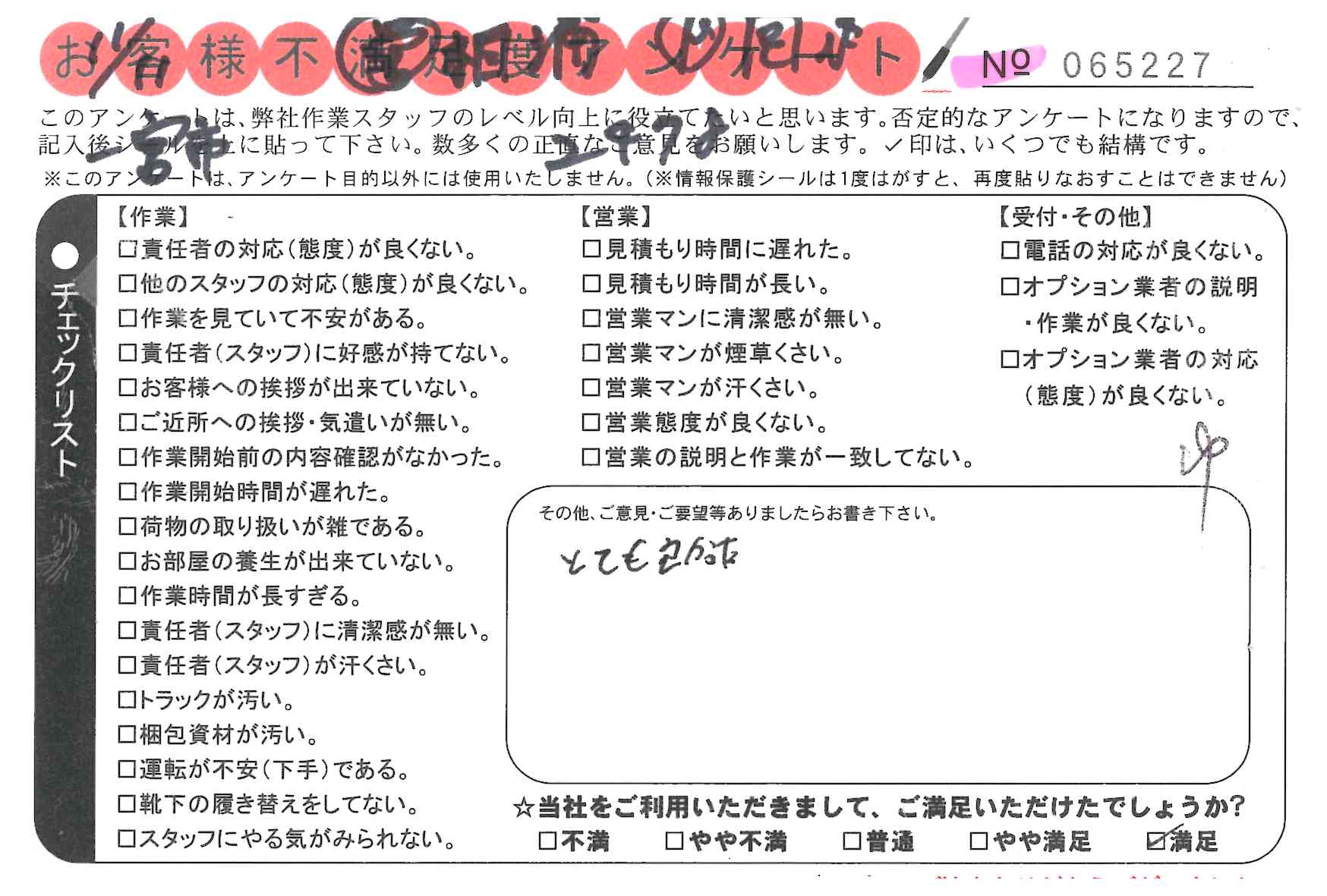 引越一番でお引越しをしていただいたお客様のうち、コメントいただいたアンケートを全て掲載しています。