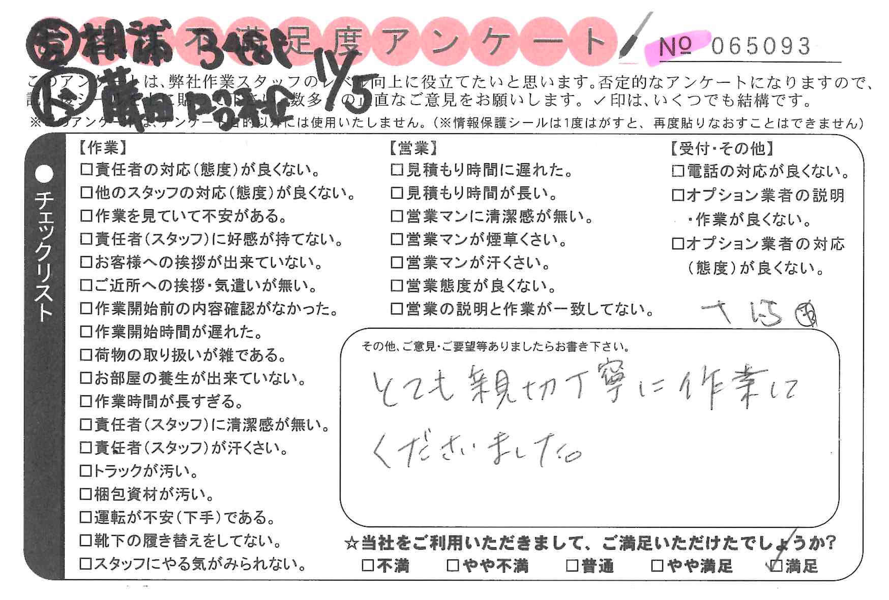 * ていねいでした。ありがとうございました‼