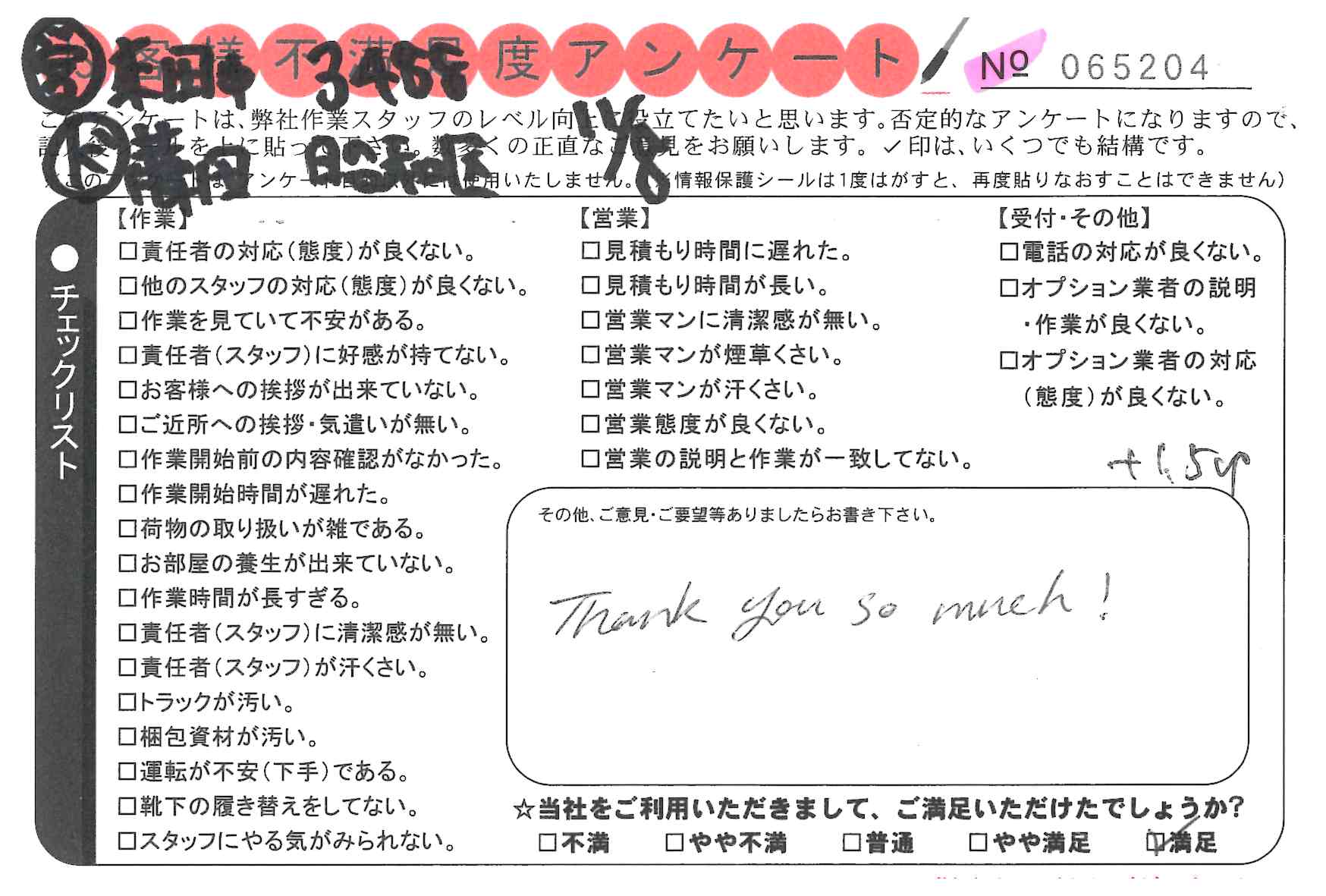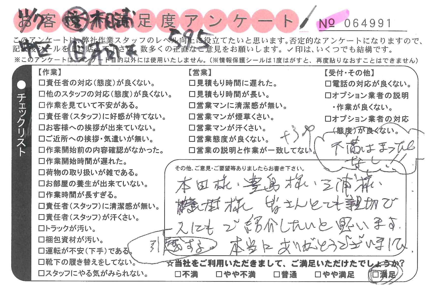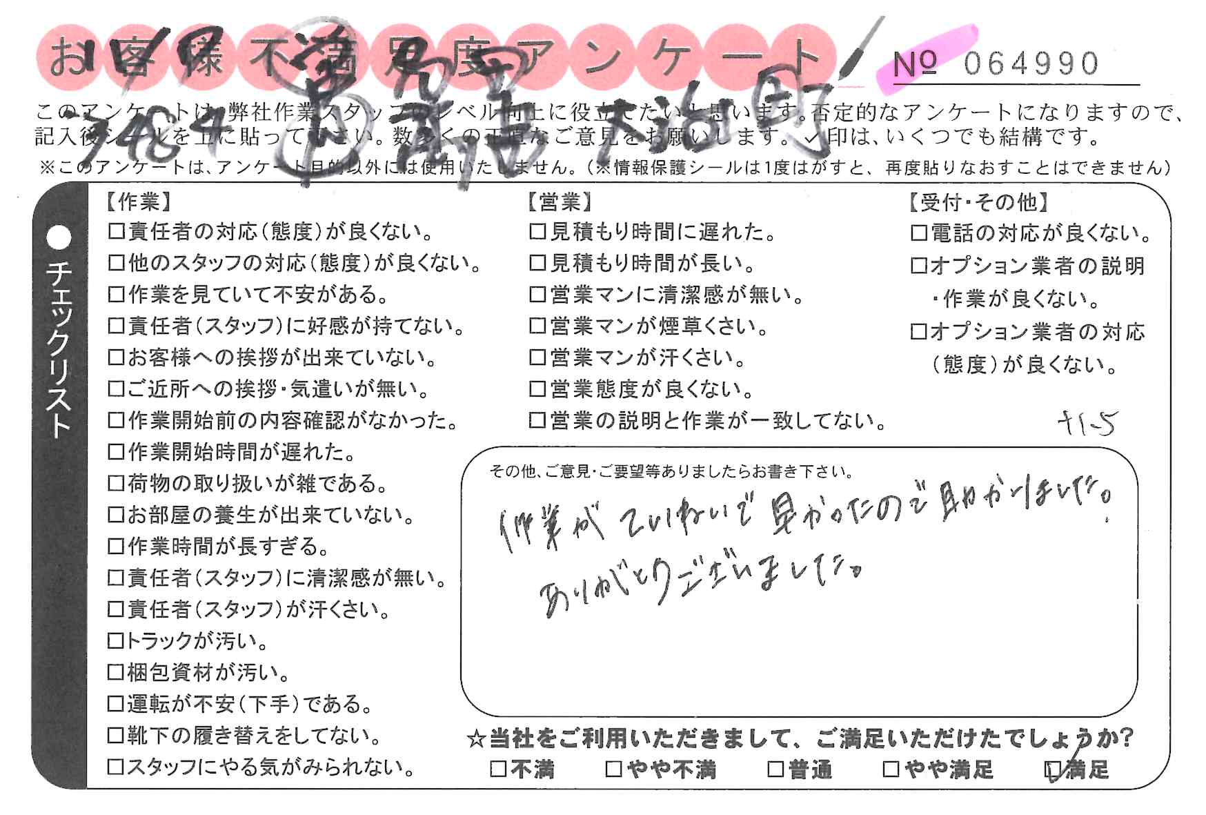 * 本日の引っ越しを御社にお願いしてよかったと思いました。