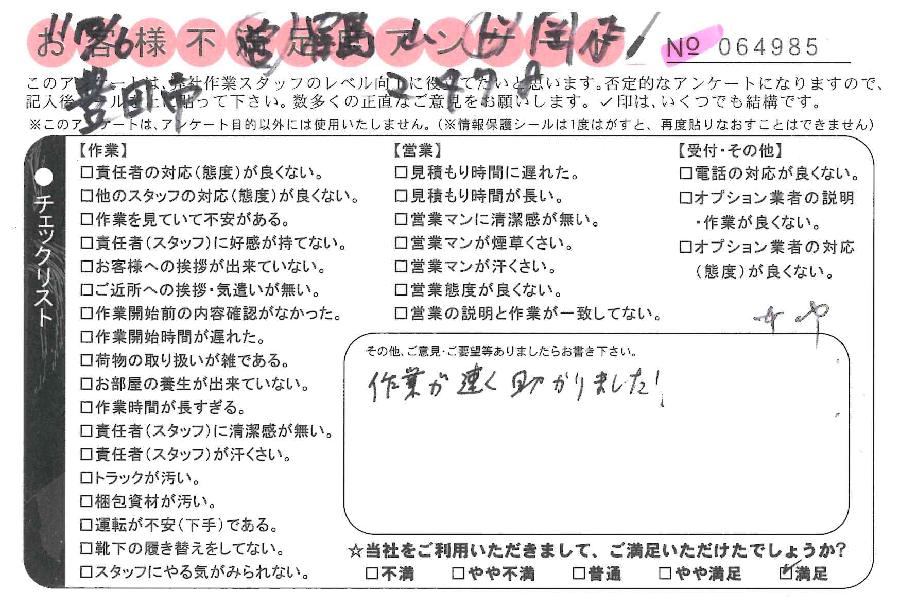 * 作業が速く助かりました!