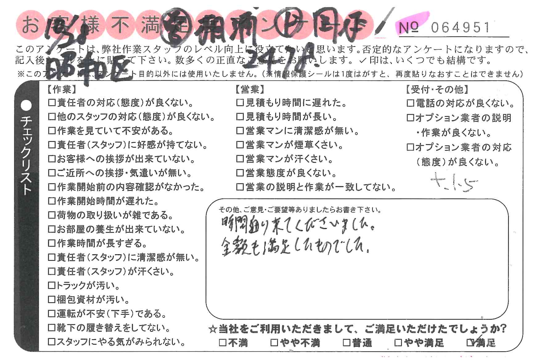 * 時間通り来てくださいました。金額も満足したものでした。