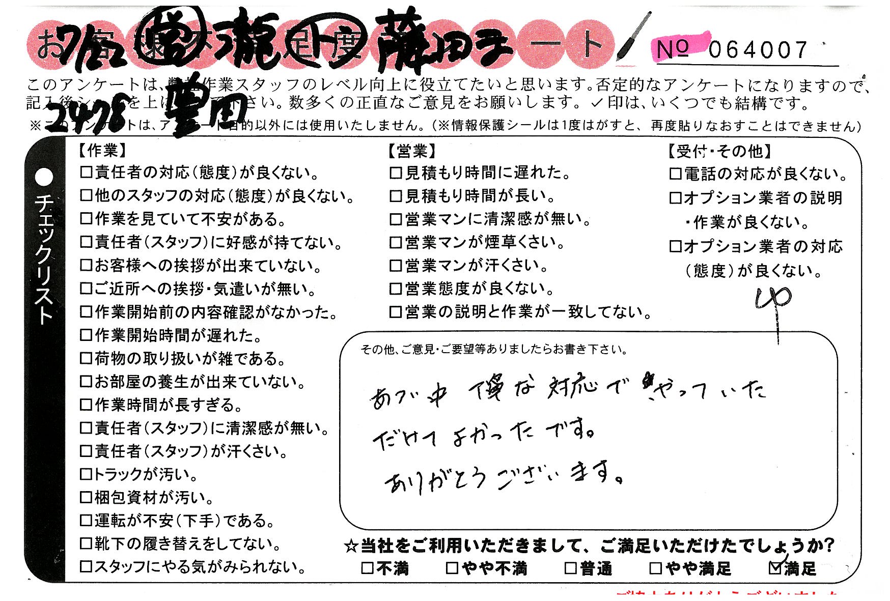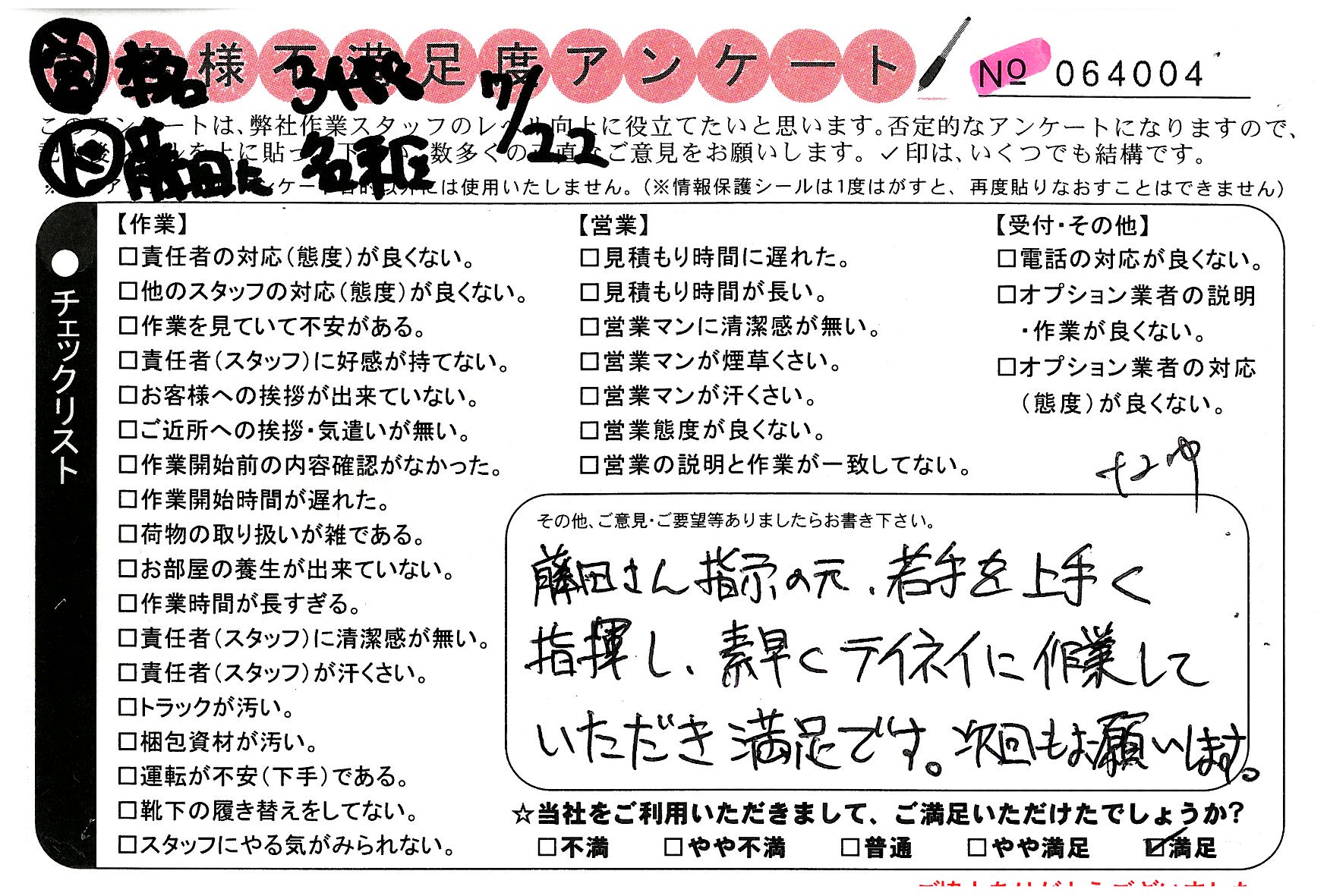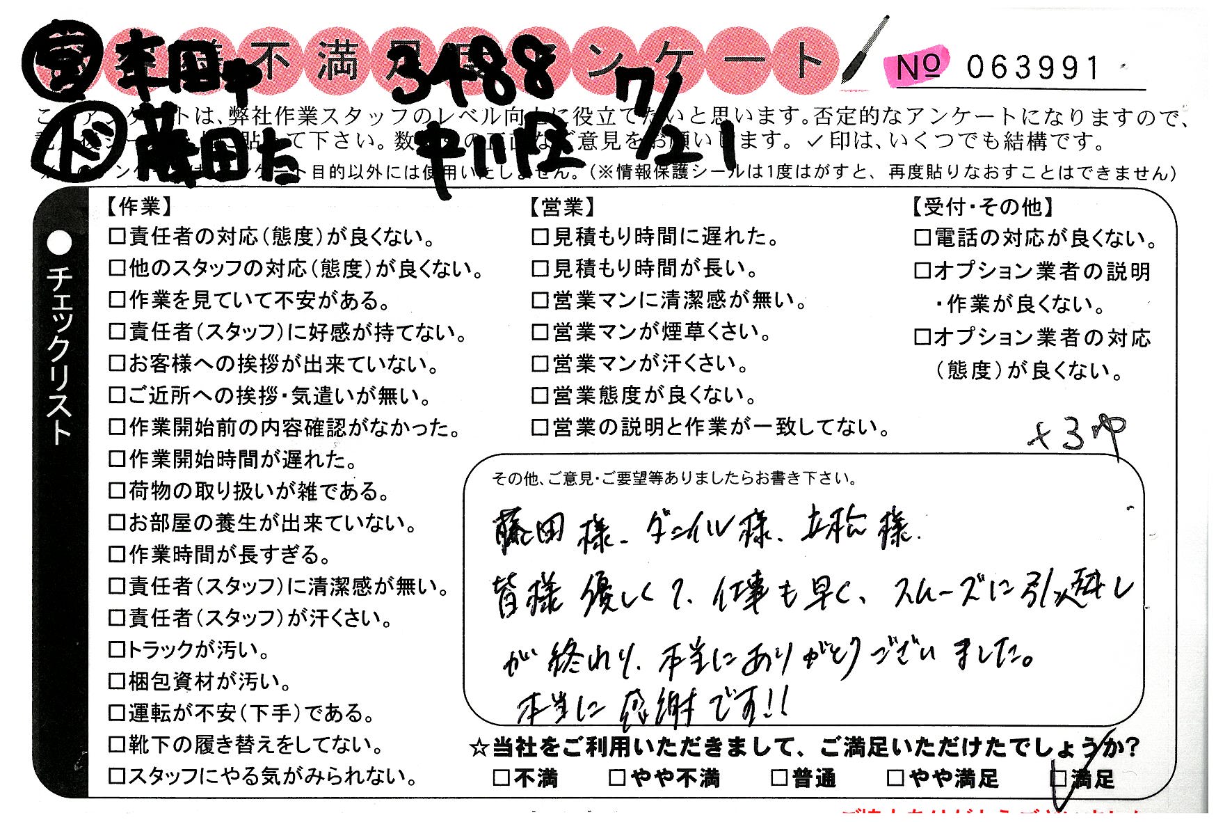 引越一番でお引越しをしていただいたお客様のうち、コメントいただいたアンケートを全て掲載しています。