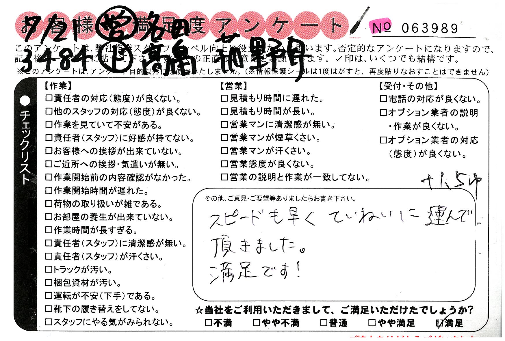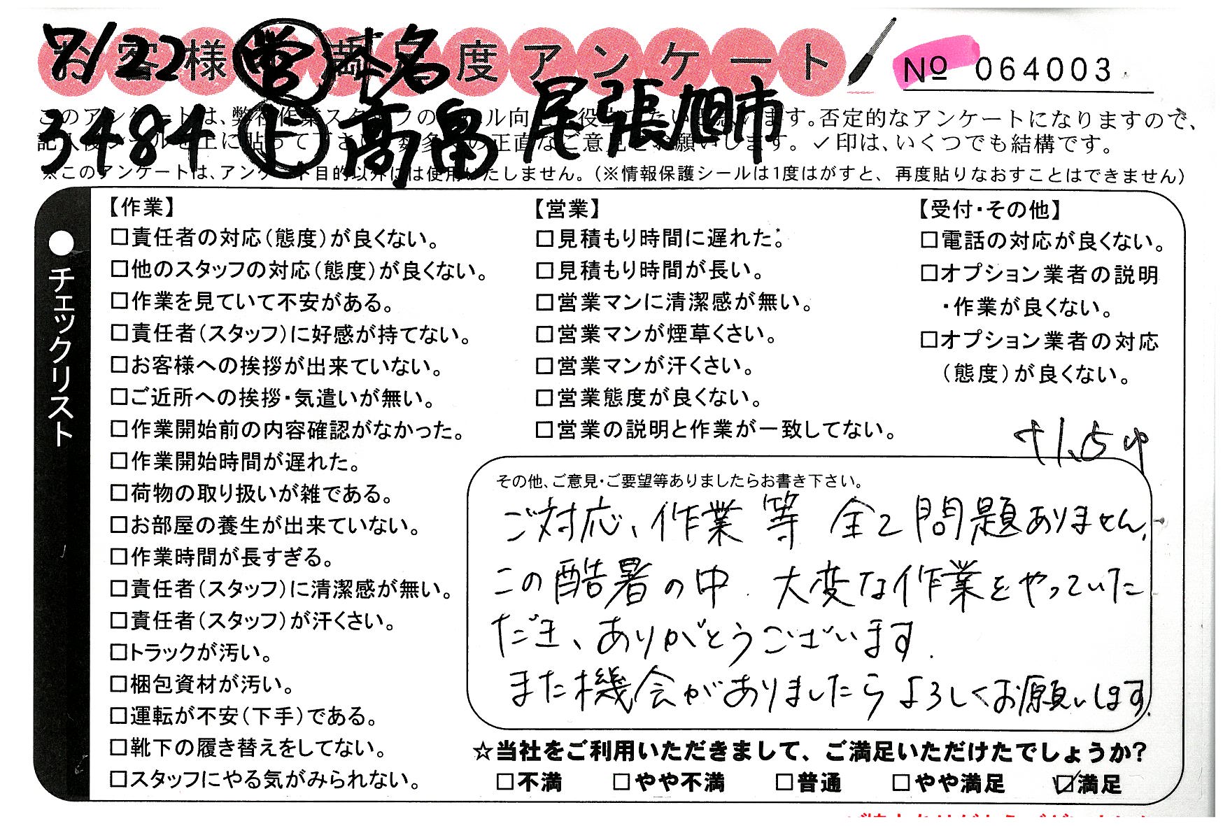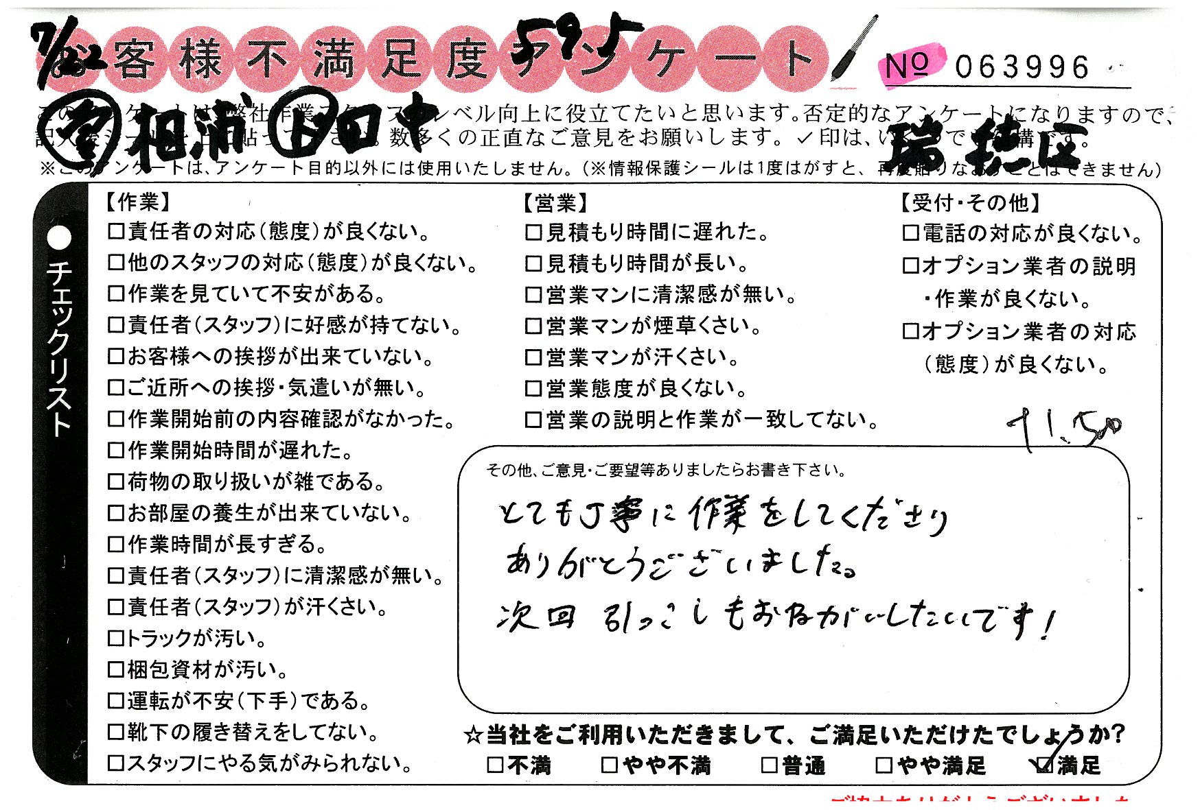 引越一番でお引越しをしていただいたお客様のうち、コメントいただいたアンケートを全て掲載しています。