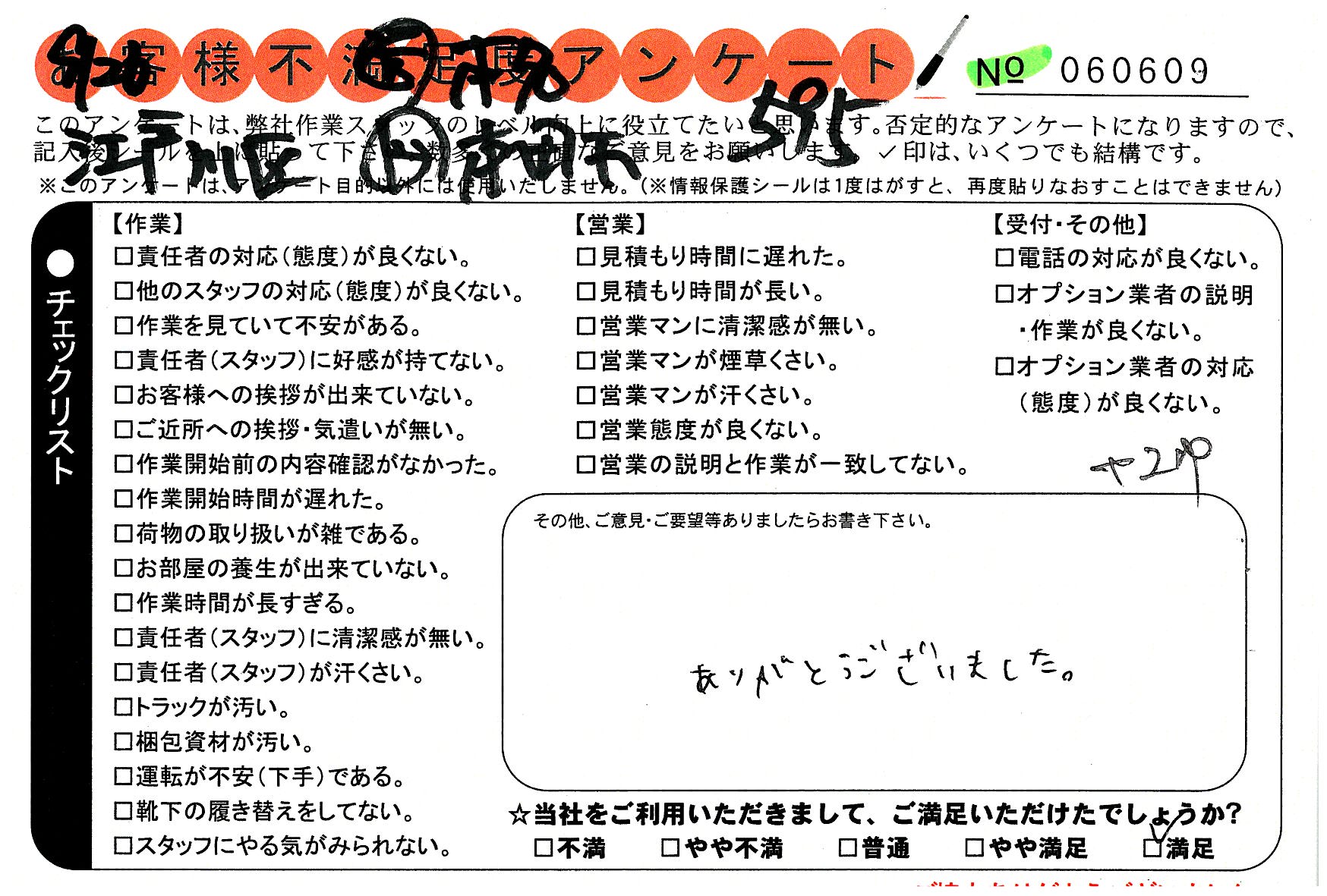 不満足度アンケートを行っている引越一番では、不評なアンケートも、好評なアンケートも全て掲載しています。