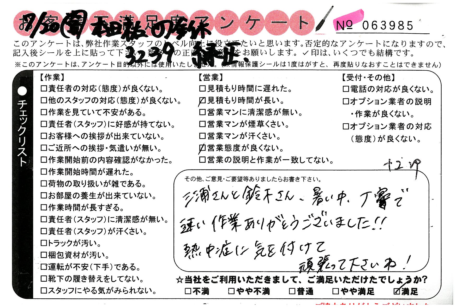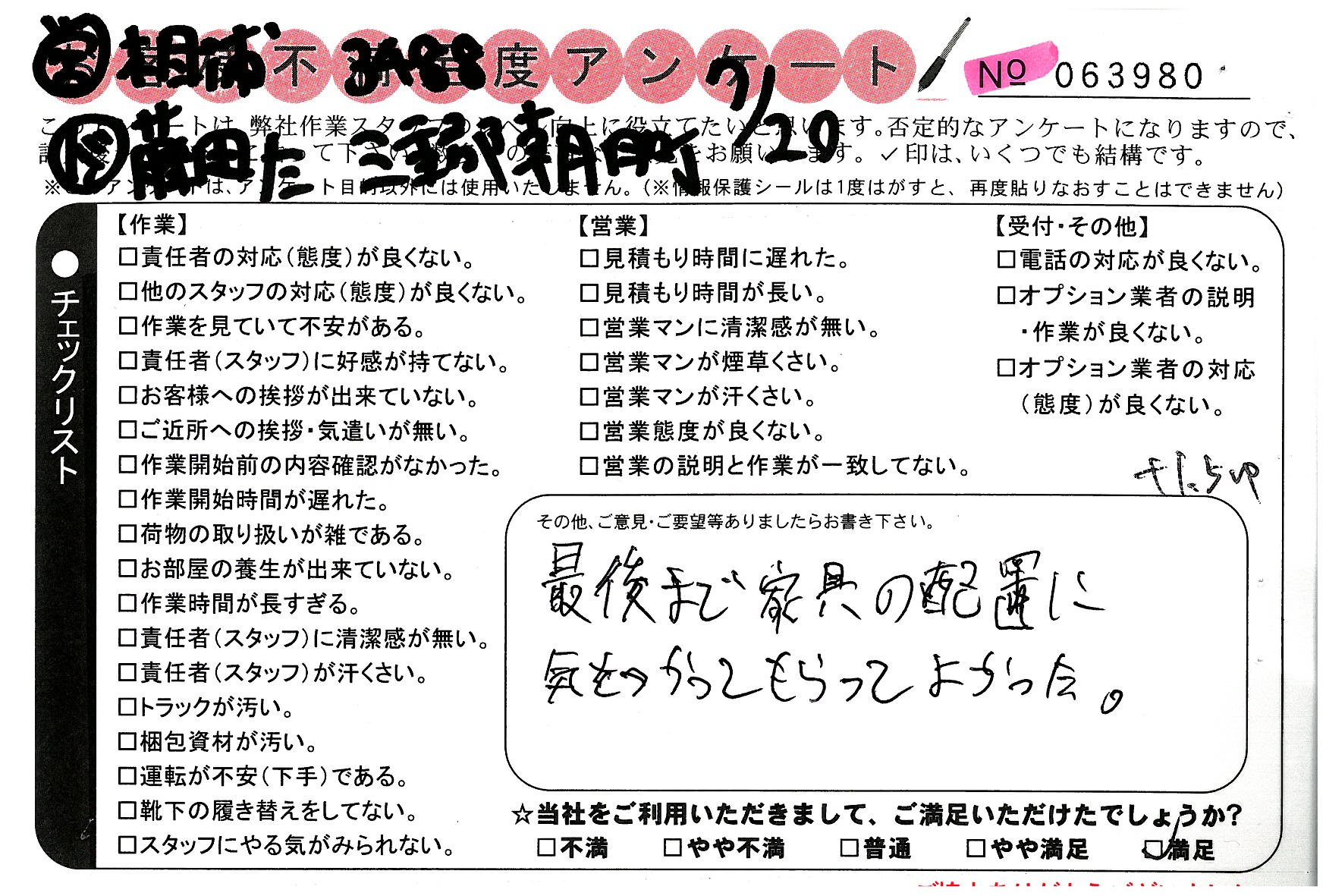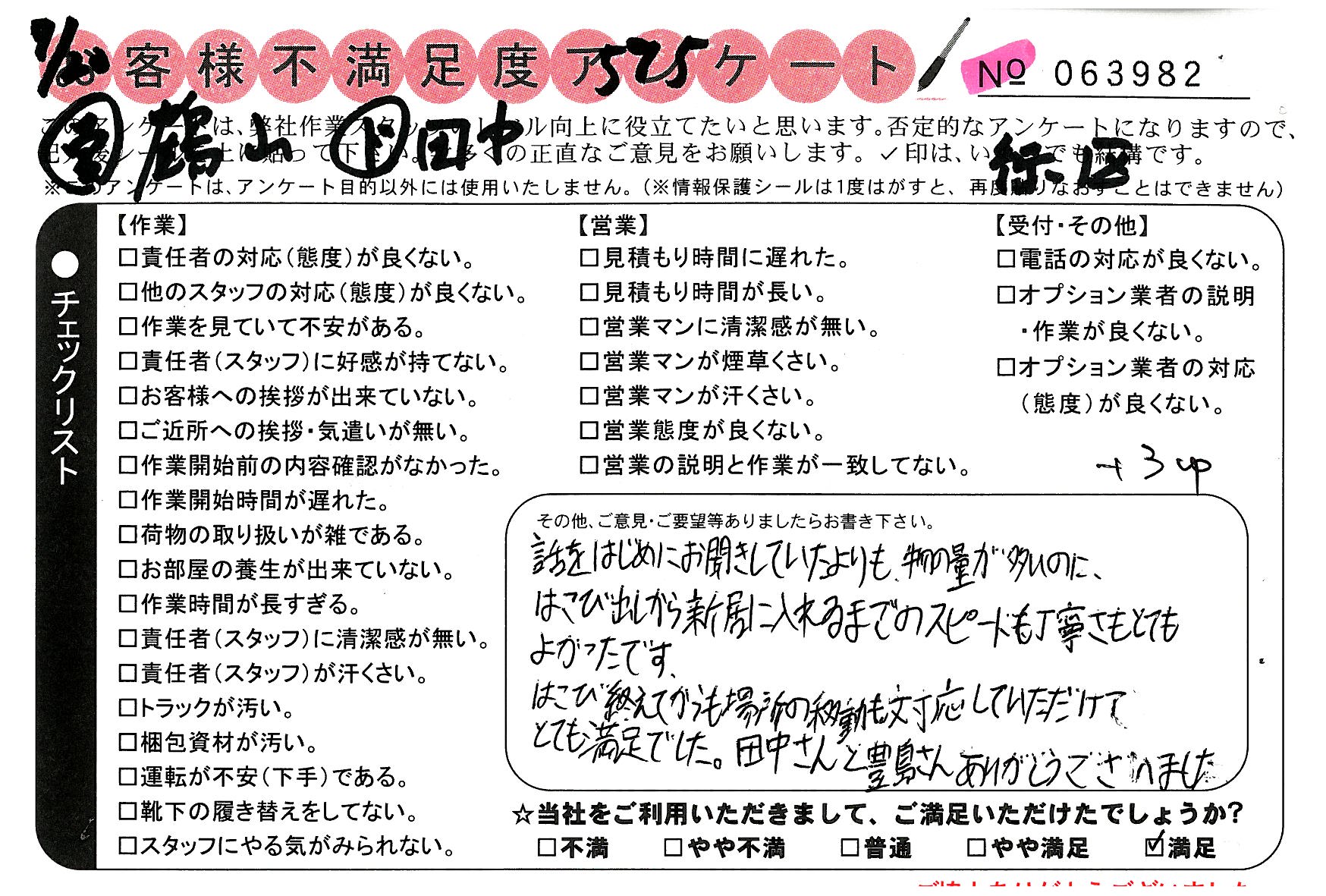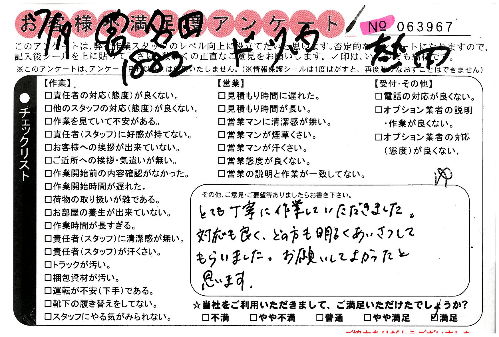 引越一番でお引越しをしていただいたお客様のうち、コメントいただいたアンケートを全て掲載しています。
