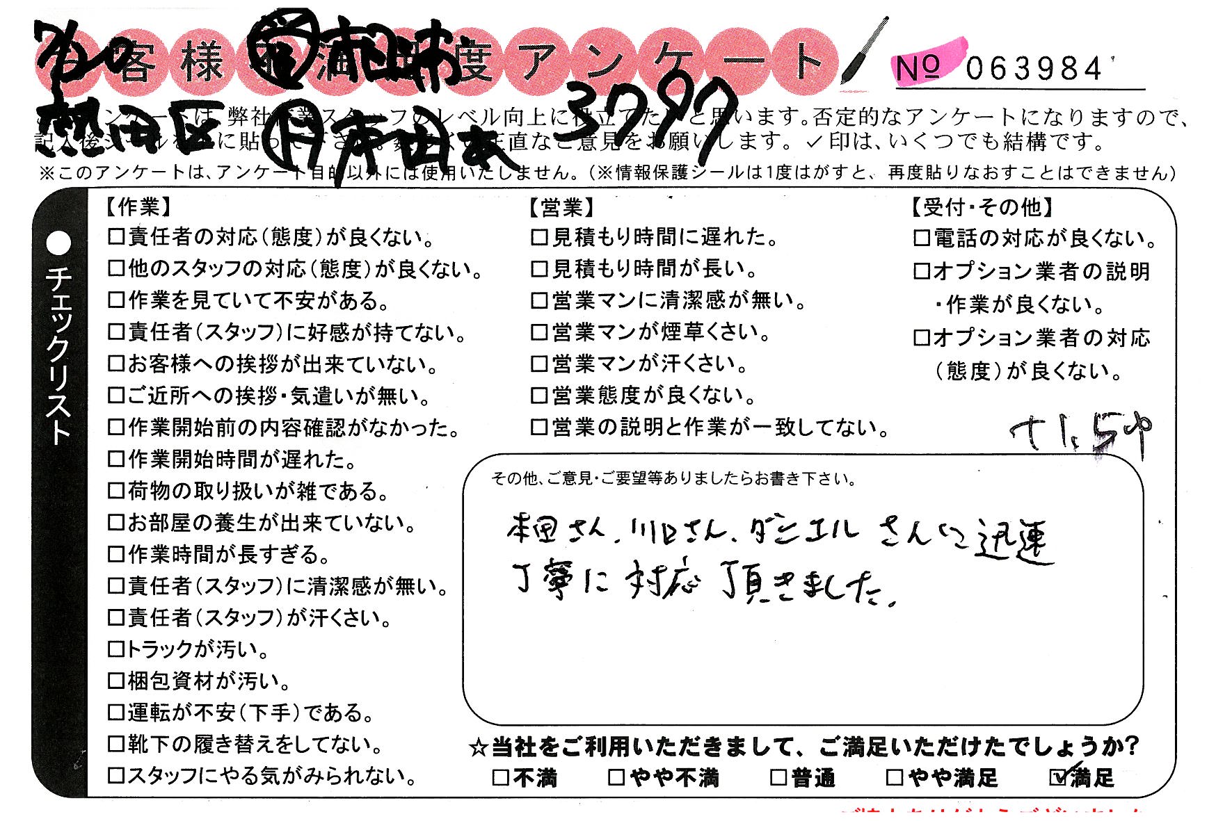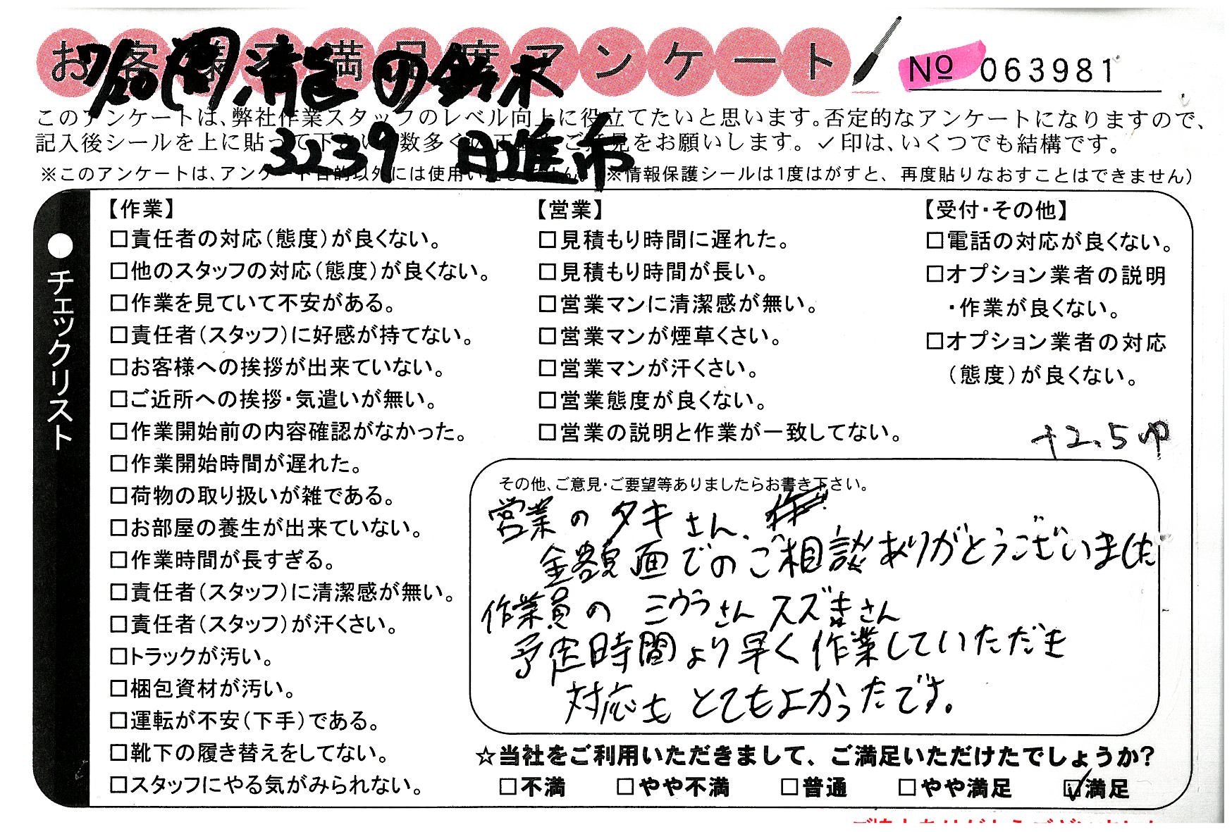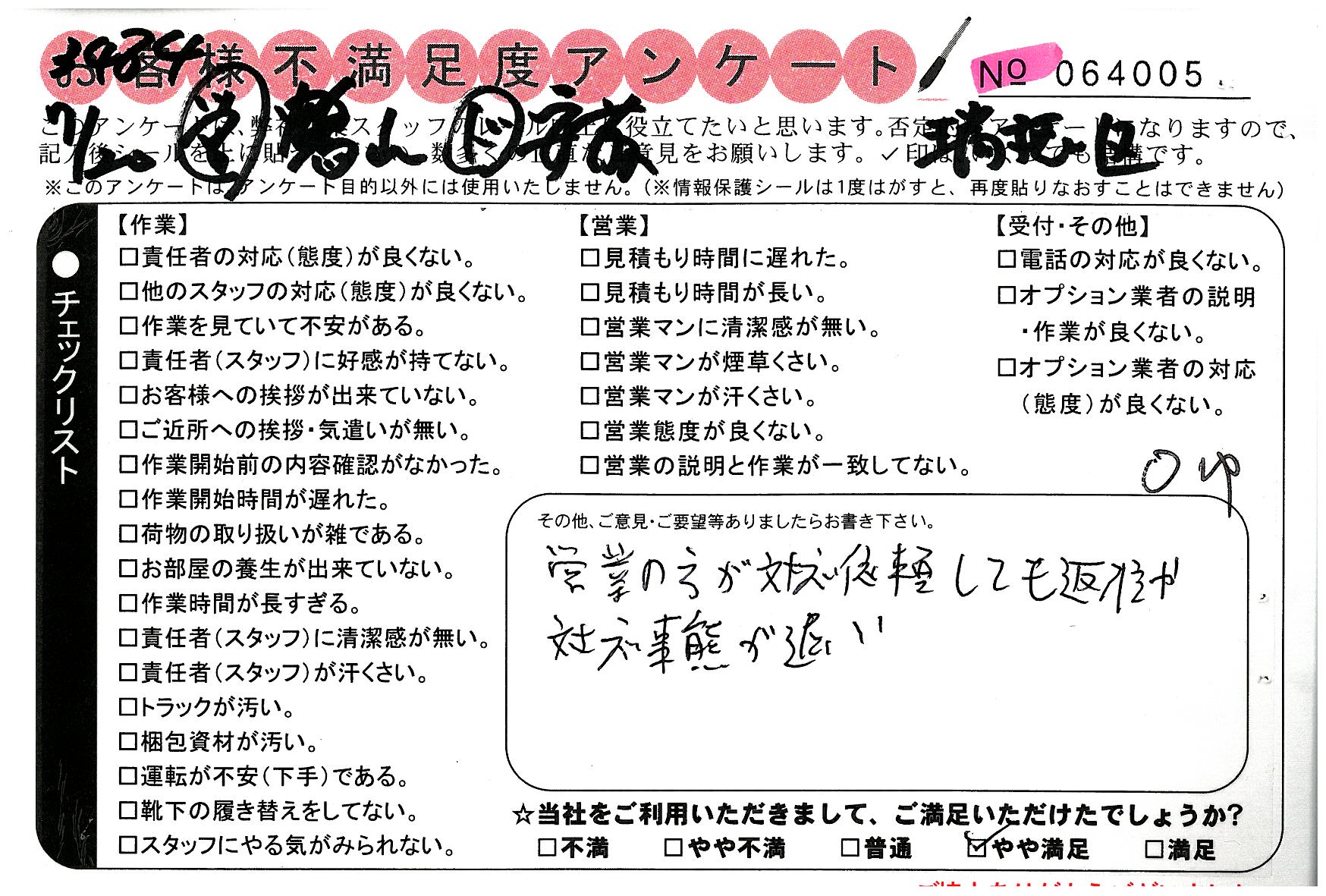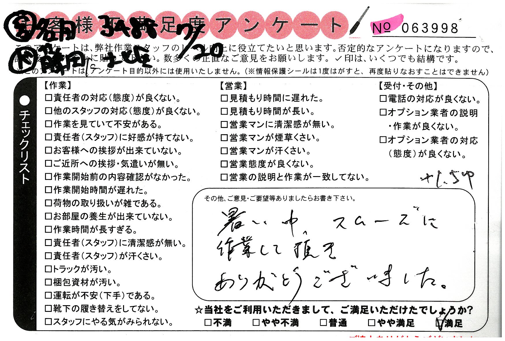 引越一番でお引越しをしていただいたお客様のうち、コメントいただいたアンケートを全て掲載しています。