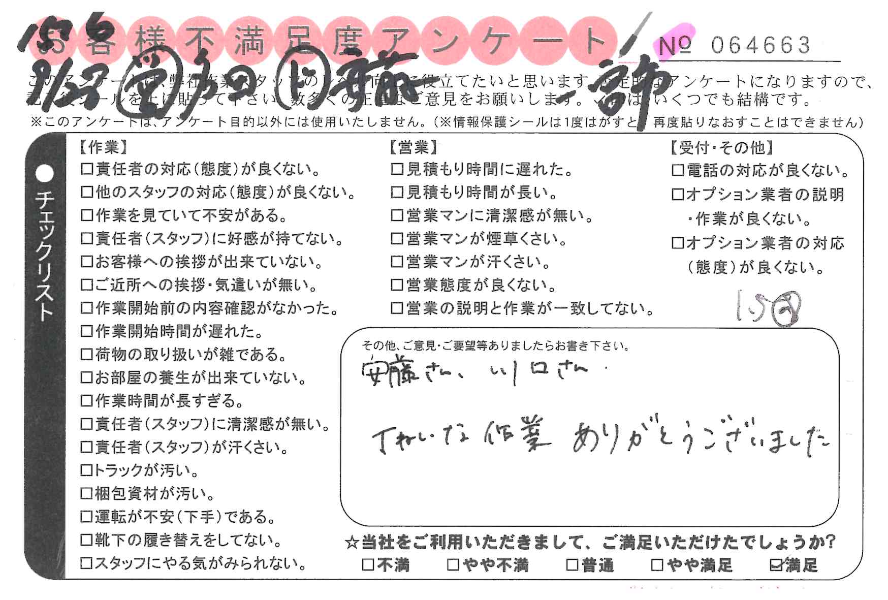 * 笑顔、スピード、正確な作業ありがとうございました。