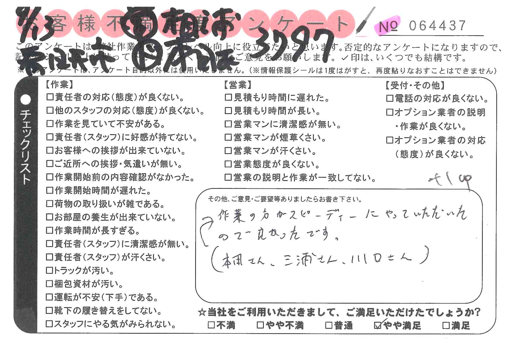 * 仕事が早くてまん足です