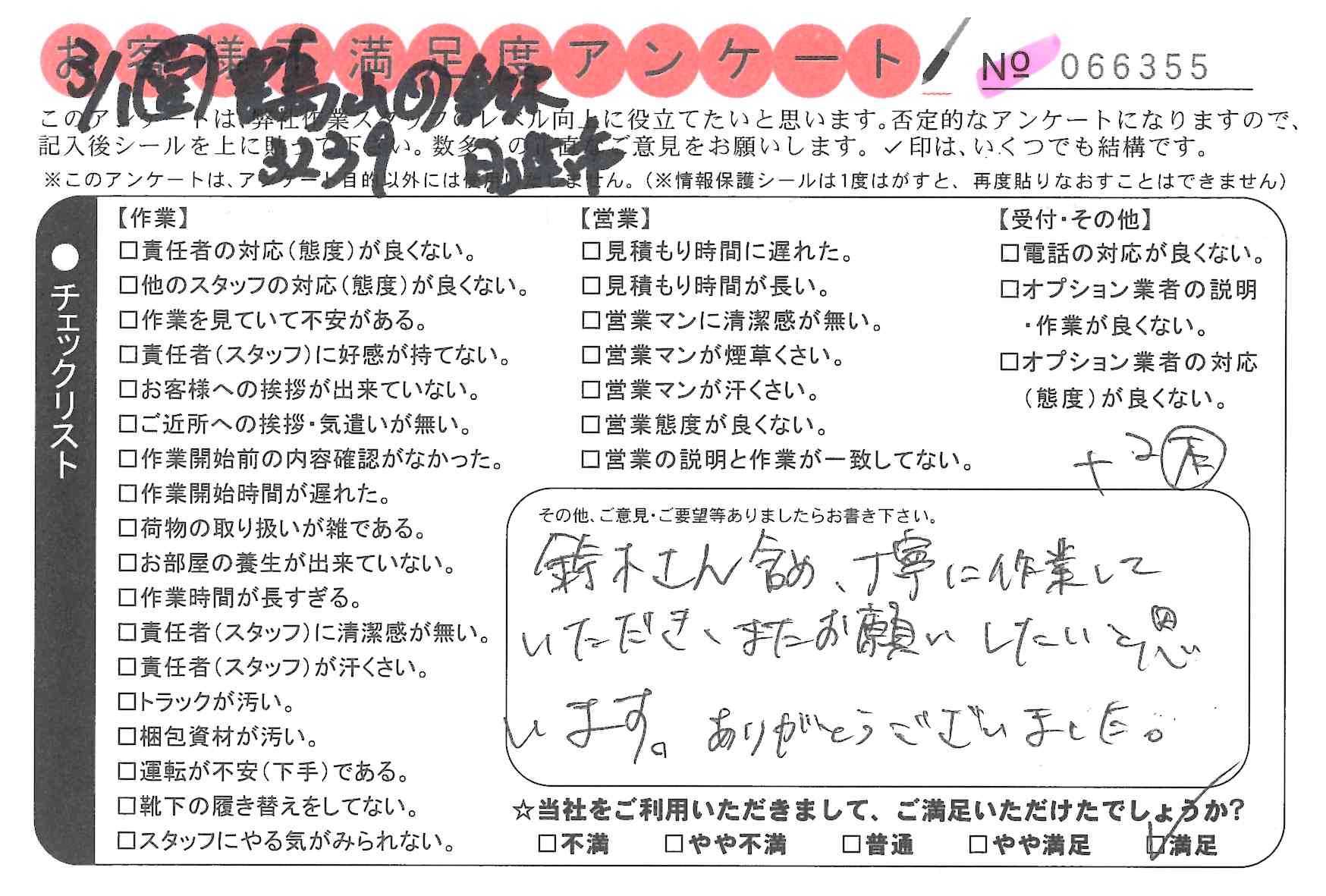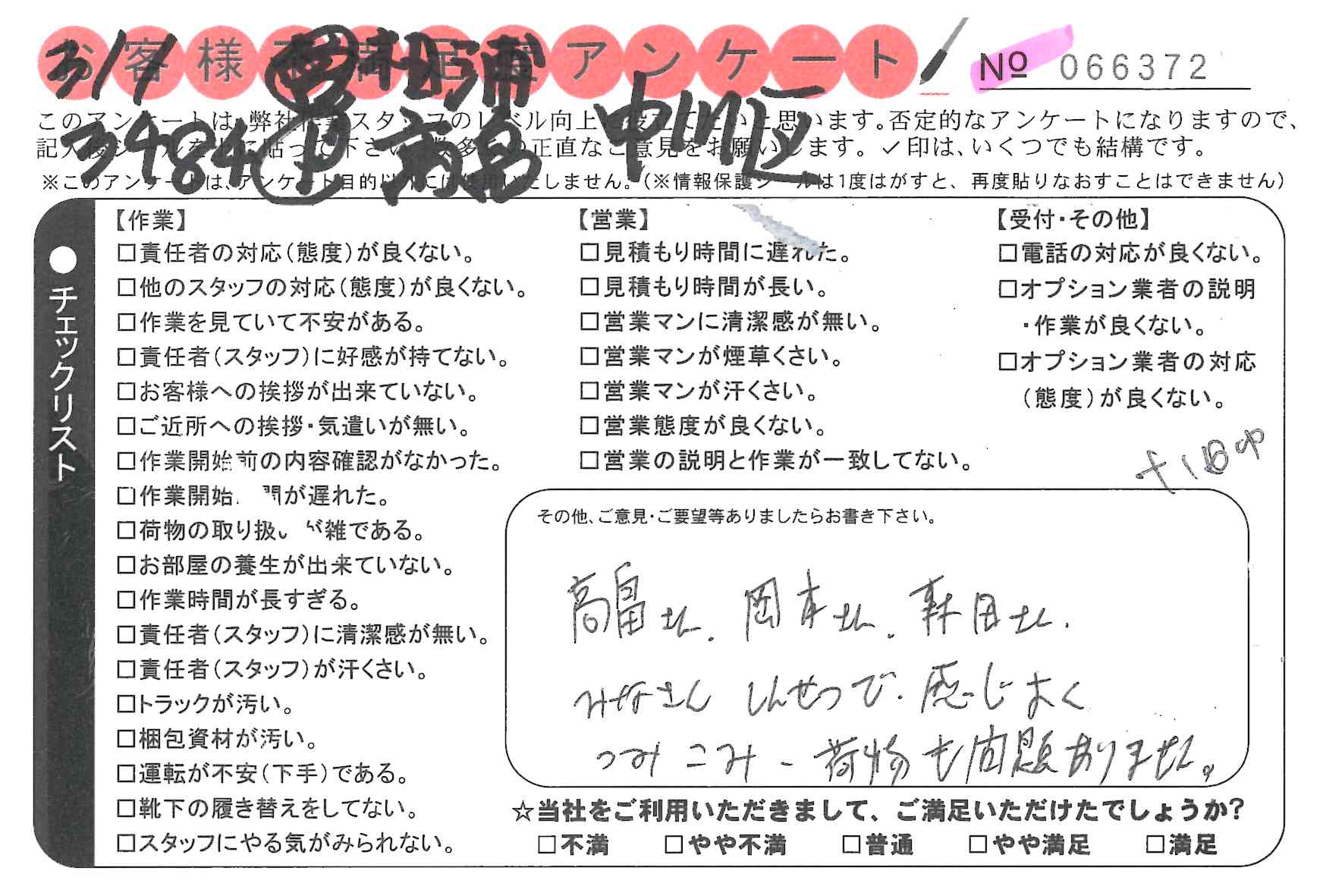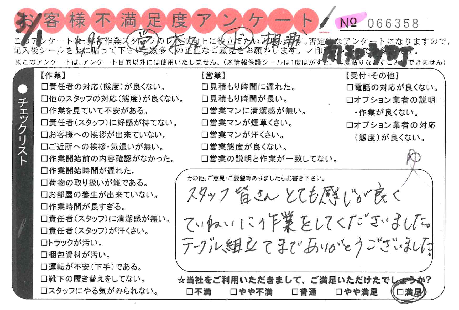 引越一番でお引越しをしていただいたお客様のうち、コメントいただいたアンケートを全て掲載しています。
