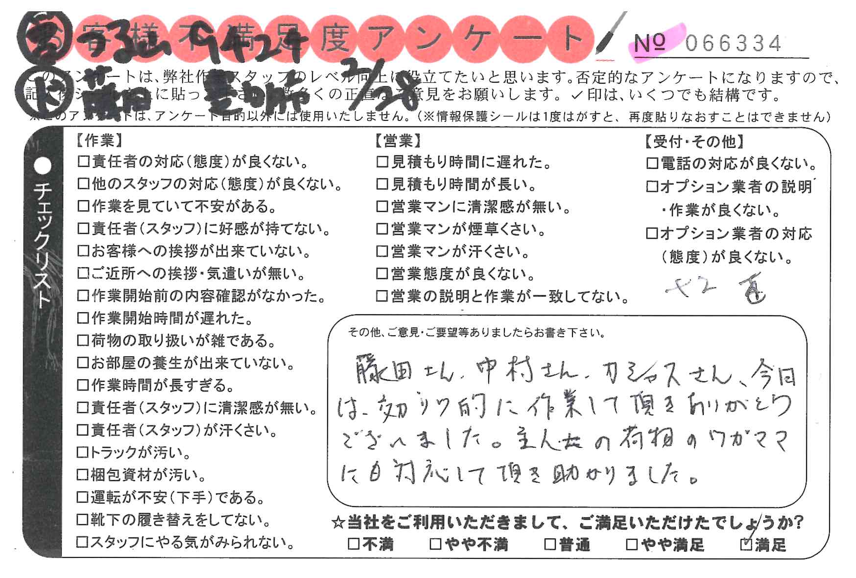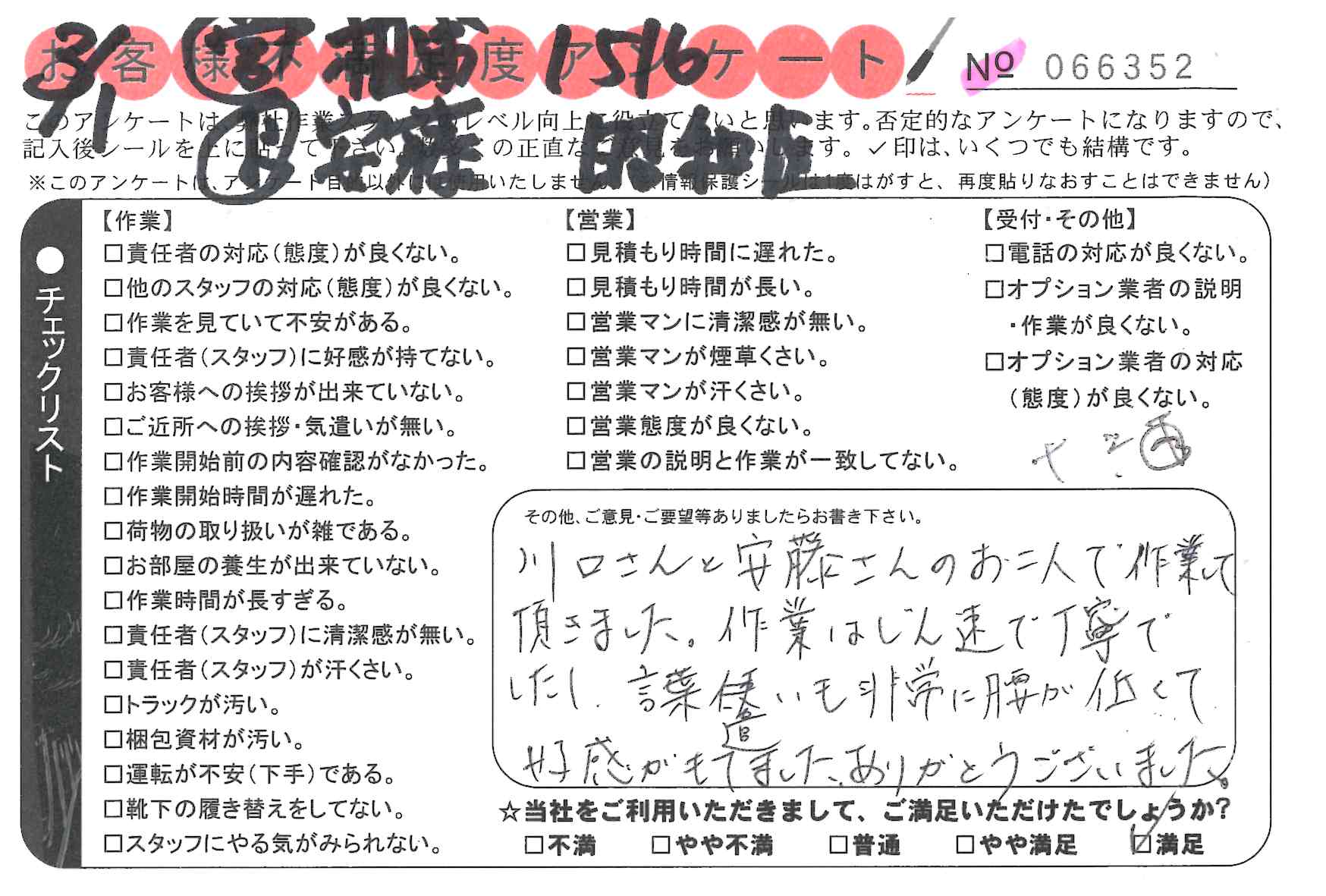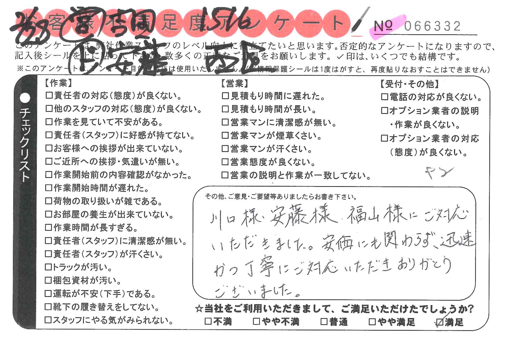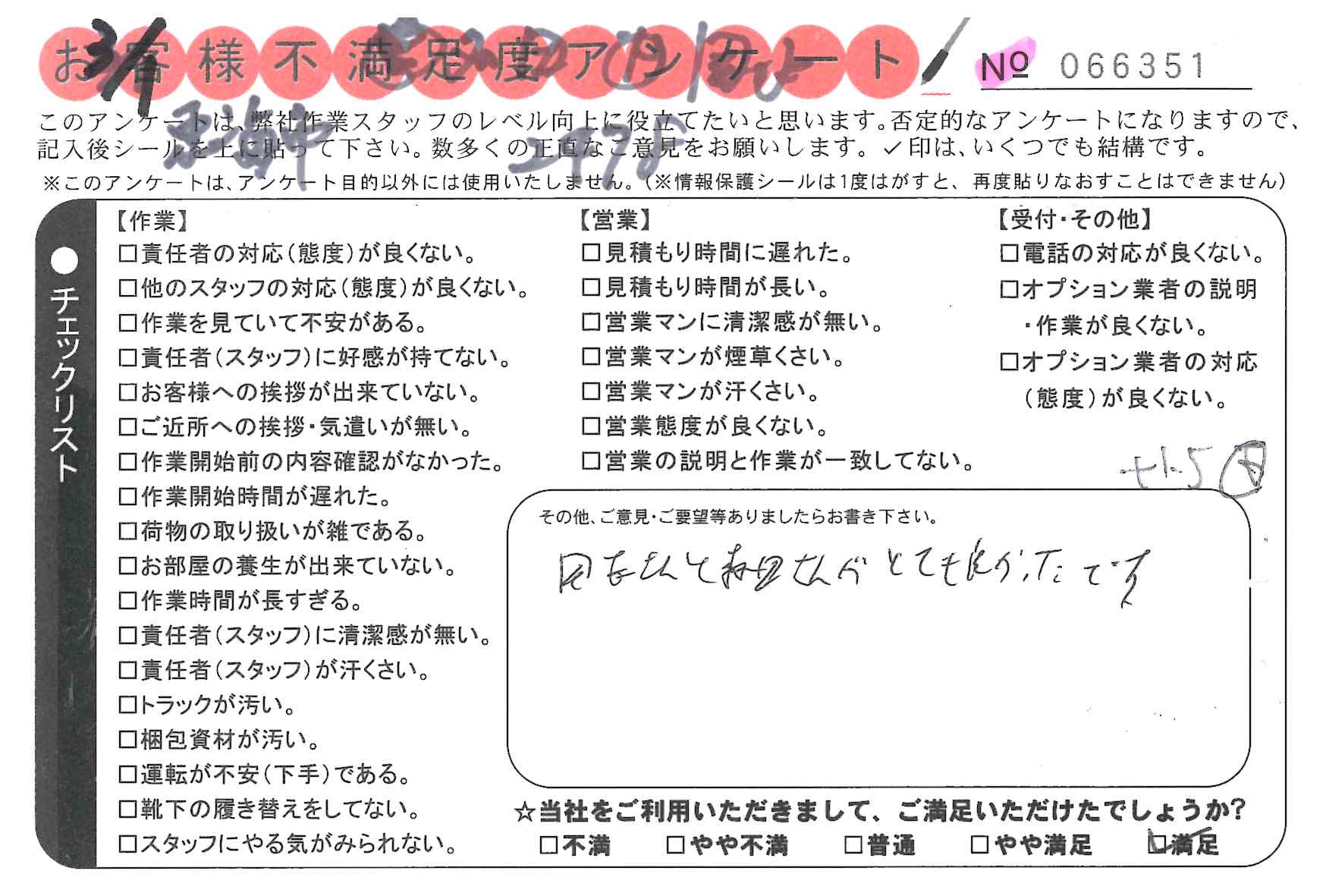 引越一番でお引越しをしていただいたお客様のうち、コメントいただいたアンケートを全て掲載しています。