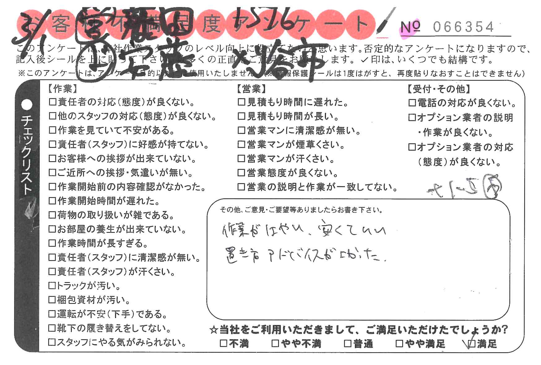 作業は迅速で丁寧でしたし、言葉遣いも非常に