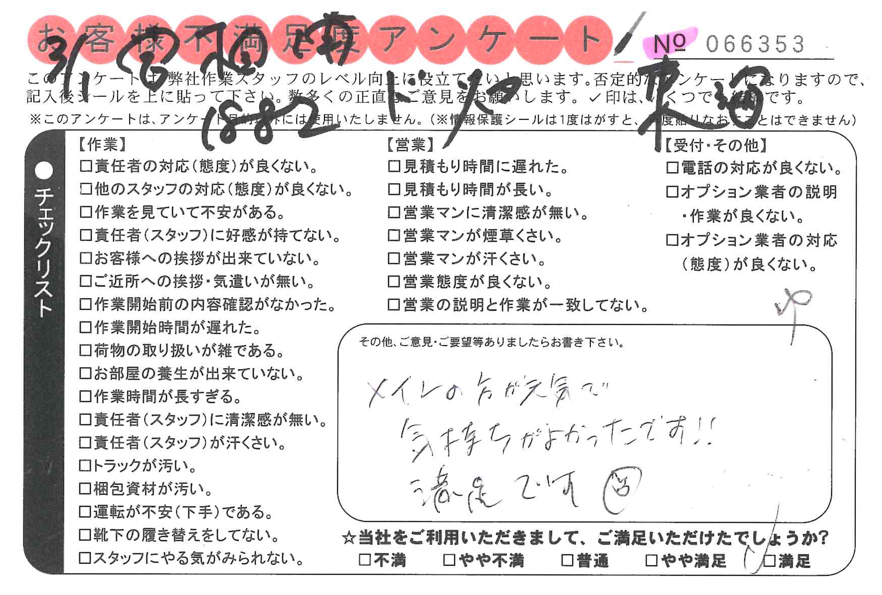 不満足度アンケートを行っている引越一番では、不評なアンケートも、好評なアンケートも全て掲載しています。